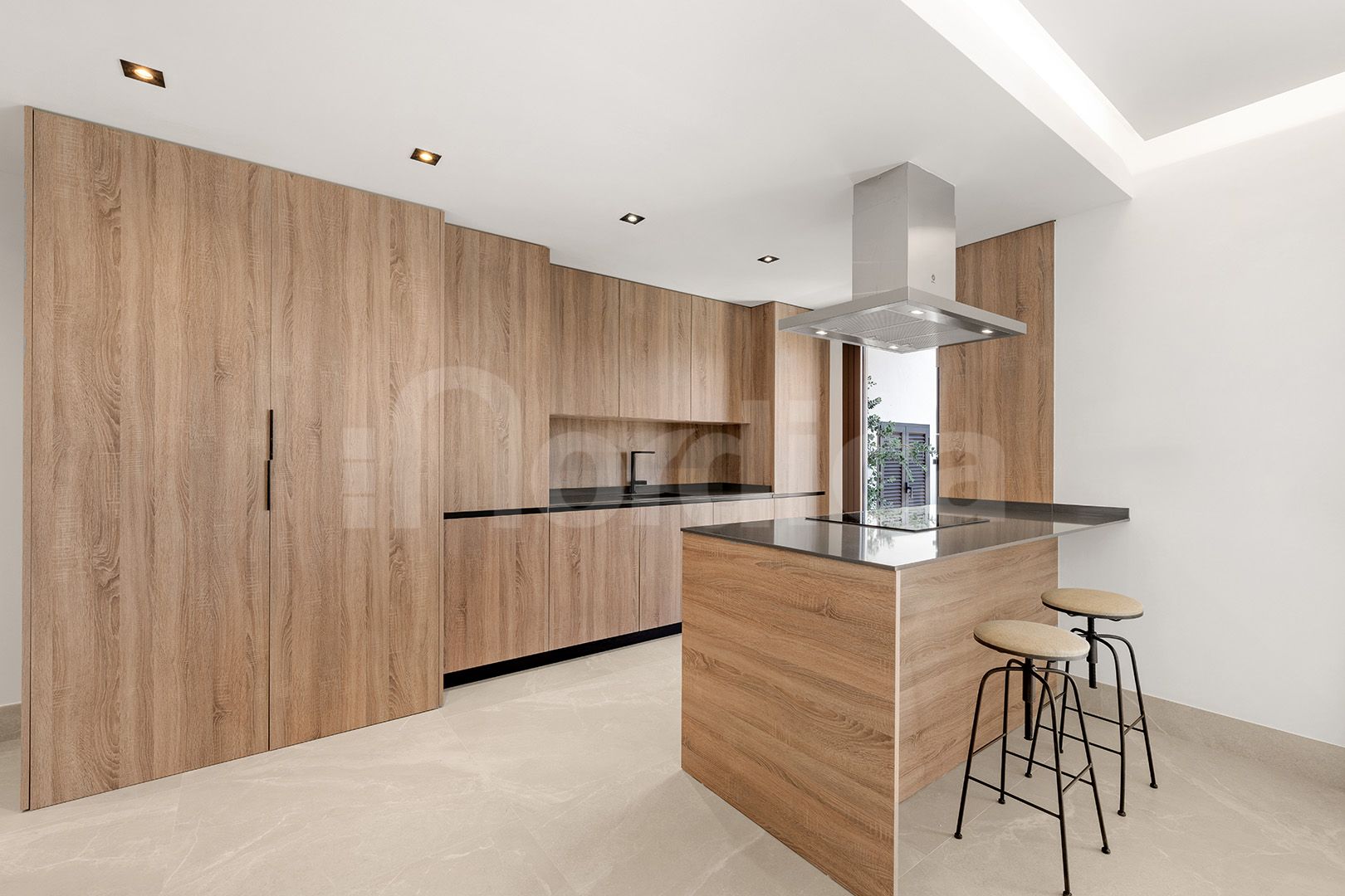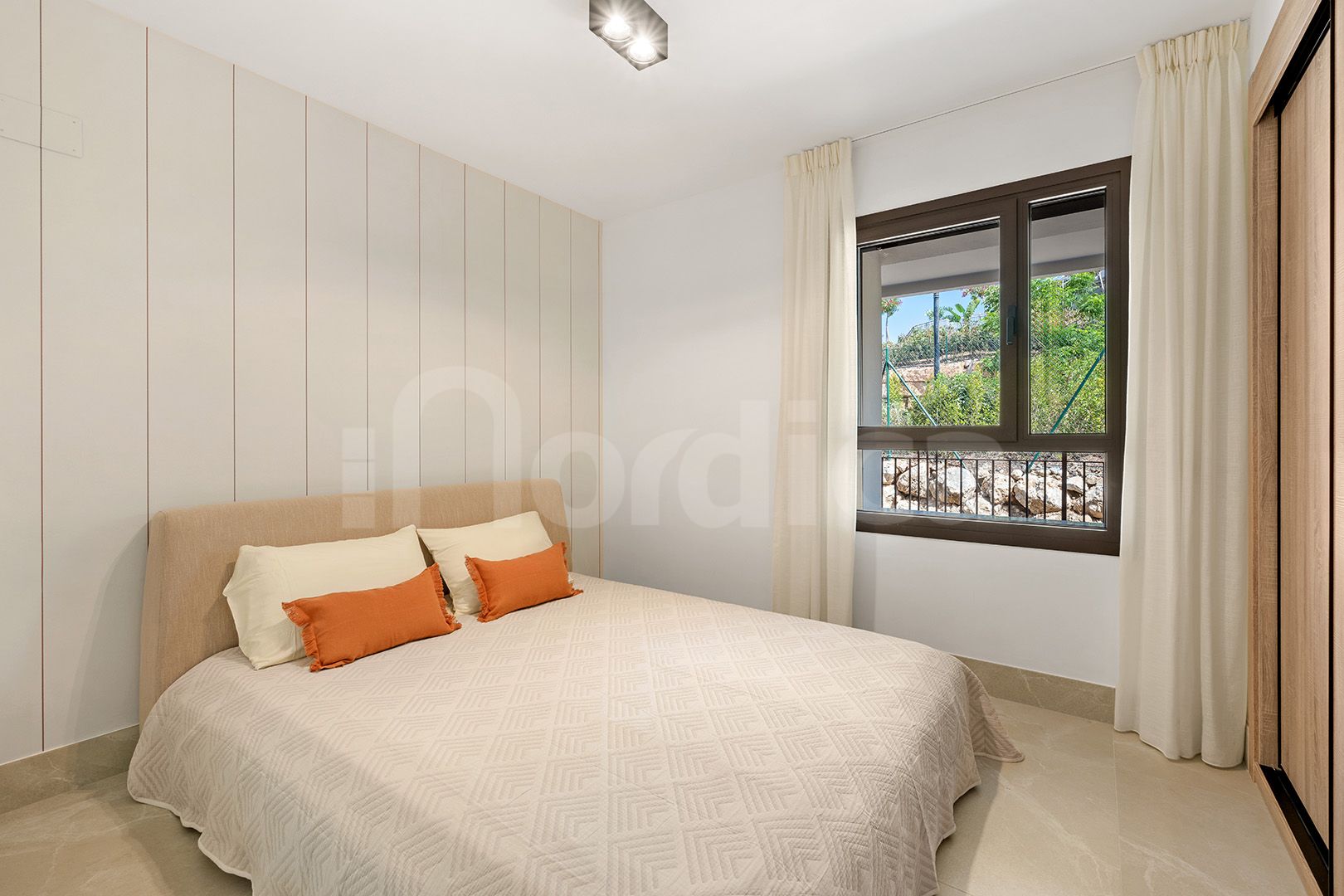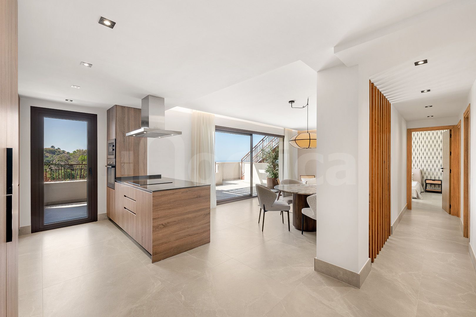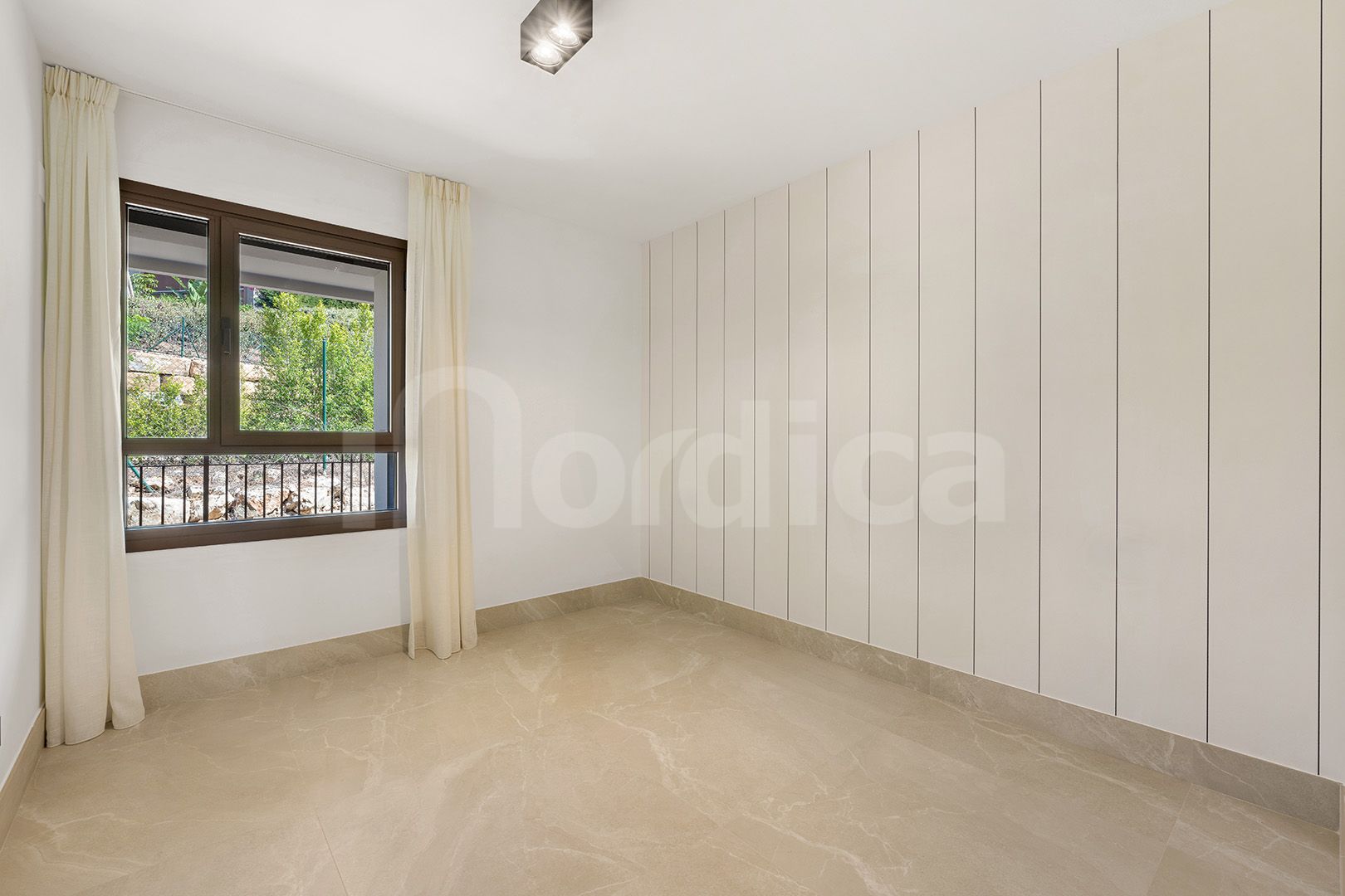 Bostaden är designad av den erkända inredningsarkitekten Marta del Ganso från Breathe Marbella och förenar modern sofistikation med en varm, organisk estetik. Naturliga material, mjuka toner och noggrant utvalda detaljer skapar en atmosfär av diskret lyx i det öppna vardagsrummet och matsalen, som smidigt övergår i ett fullt utrustat designkök. Utrymmet är perfekt för att underhålla gäster eller njuta av lugna stunder hemma.
