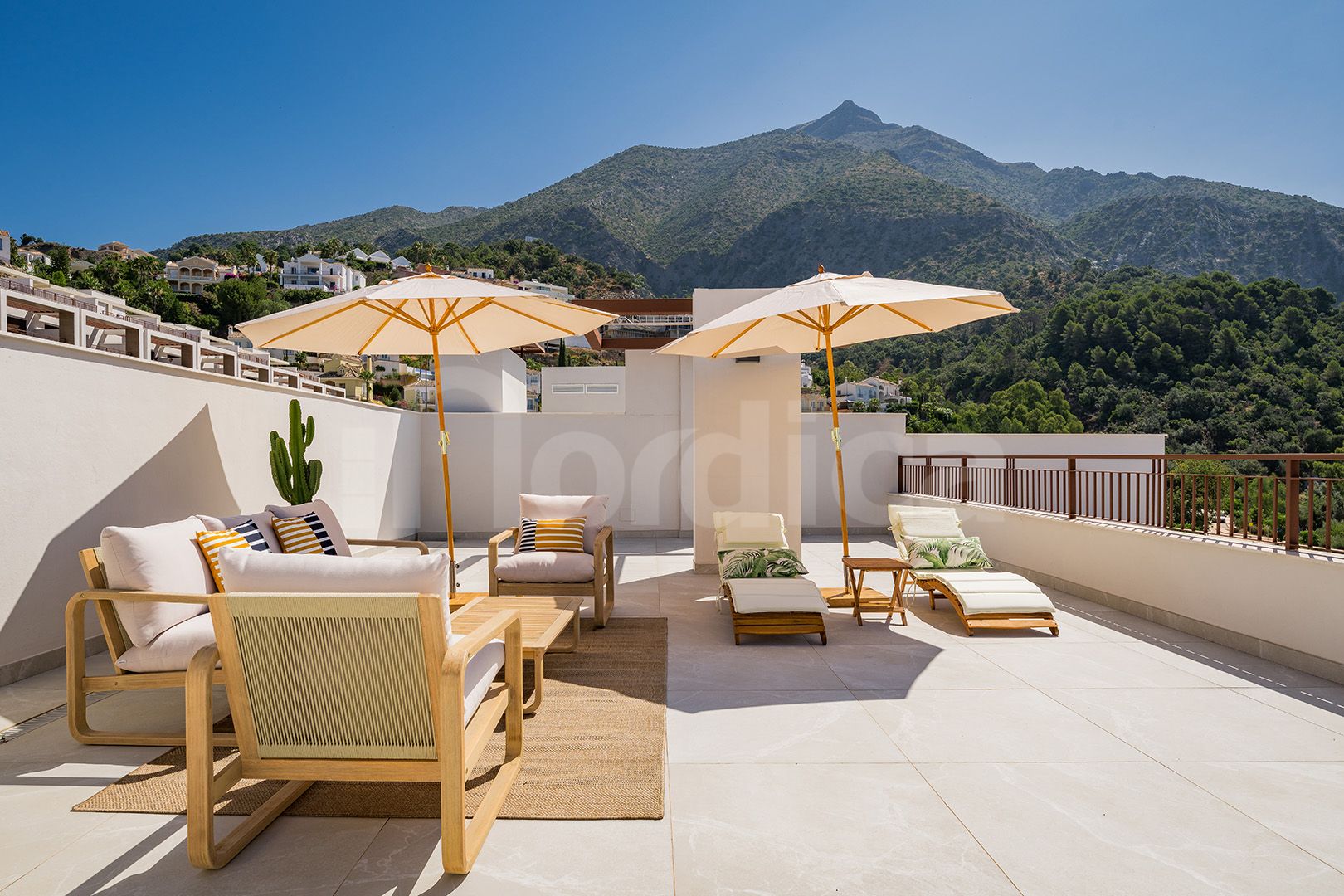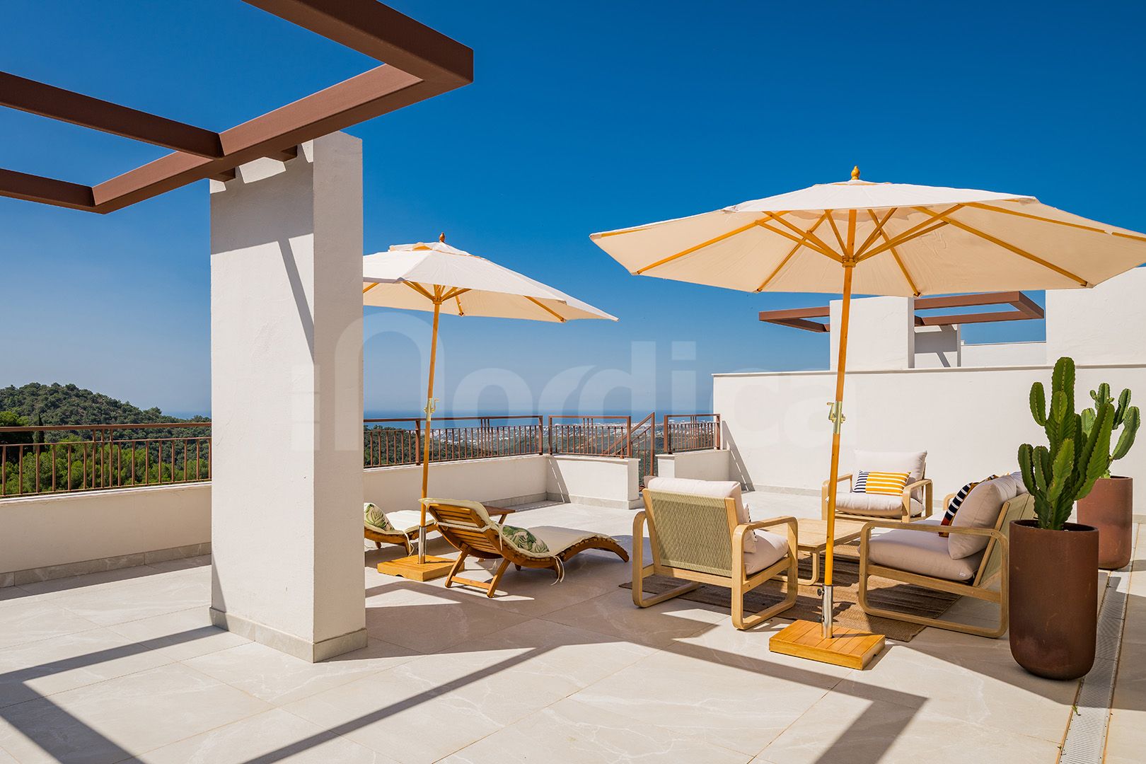 De generösa terrasserna förlänger bostadsytan utomhus och erbjuder den perfekta platsen att njuta av Marbellas exceptionella klimat samtidigt som man tar in den vidsträckta utsikten över hav och berg. Oavsett om du vill äta utomhus, sola eller bara beundra soluppgången och solnedgången, erbjuder de utvändiga ytorna en harmonisk kontakt med naturen.