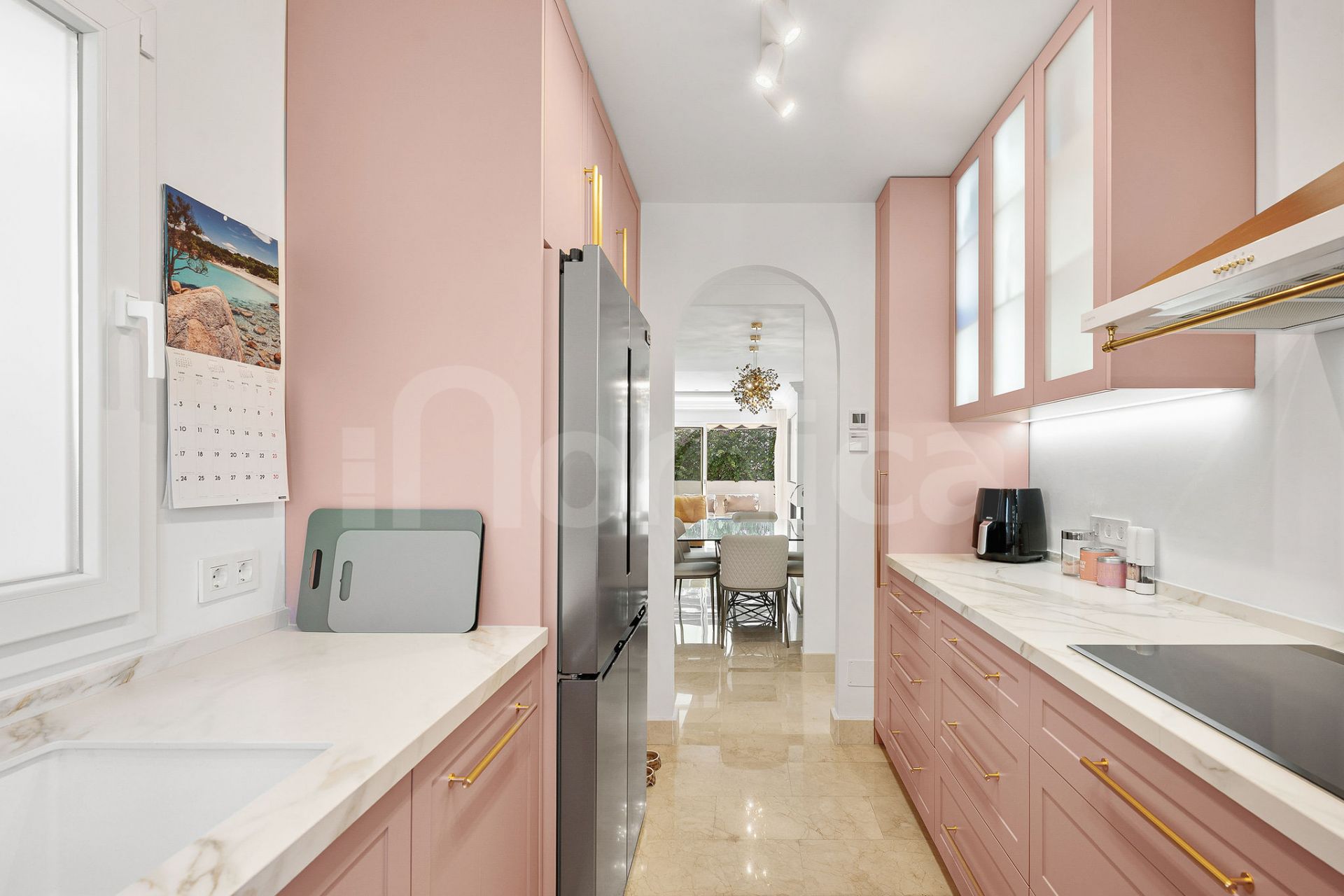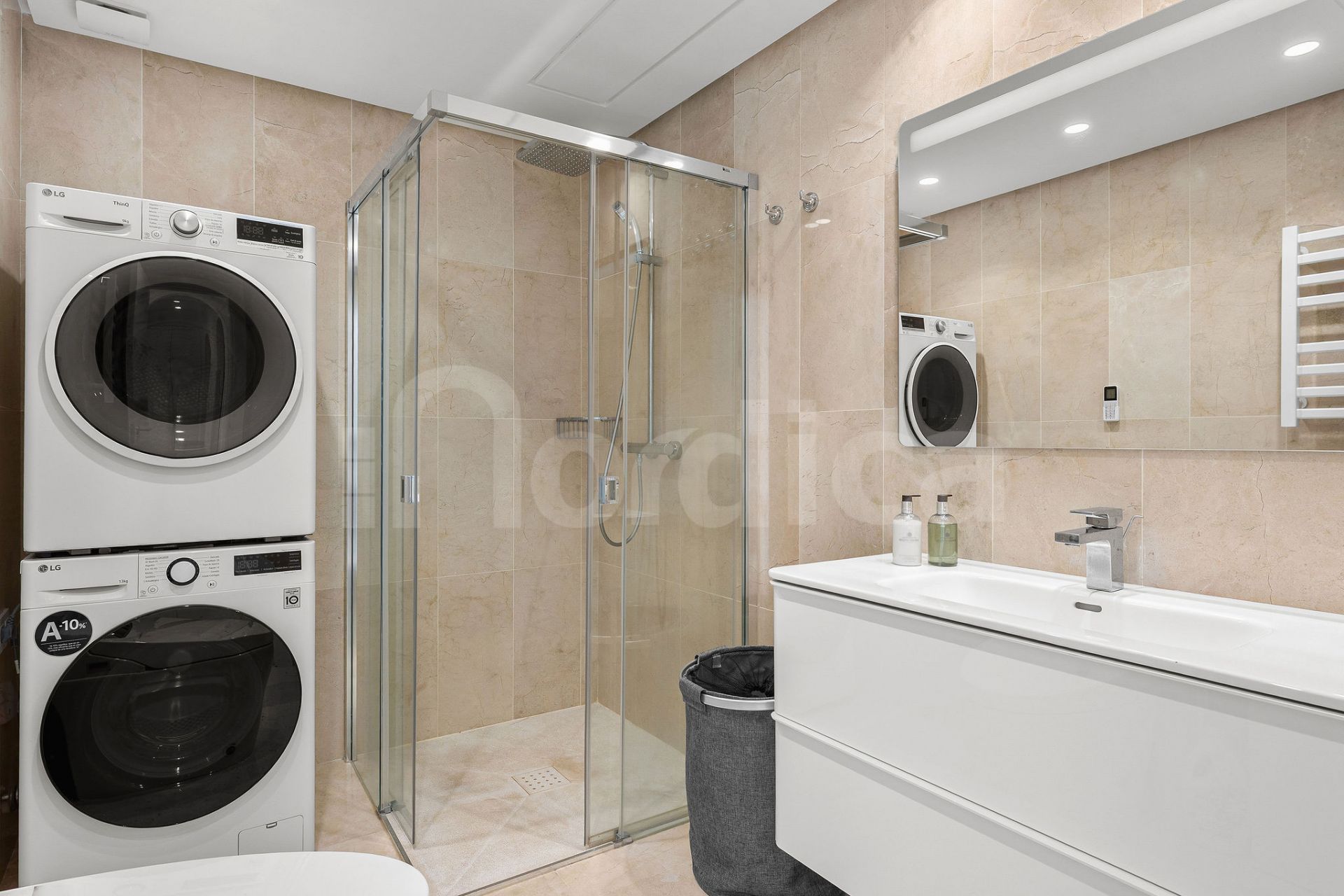 Denna eleganta takvåning med tre sovrum, byggd på ett plan, kombinerar stil, komfort och modern livsstil. Det rymliga och ljusa vardagsrummet och matsalen öppnar upp mot en härlig täckt uteplats och en stor öppen terrass, perfekt för avkoppling eller umgänge medan du njuter av den medelhavska atmosfären. Det separata, fullt utrustade köket är både stilrent och funktionellt, idealiskt för den som uppskattar både design och praktikalitet.