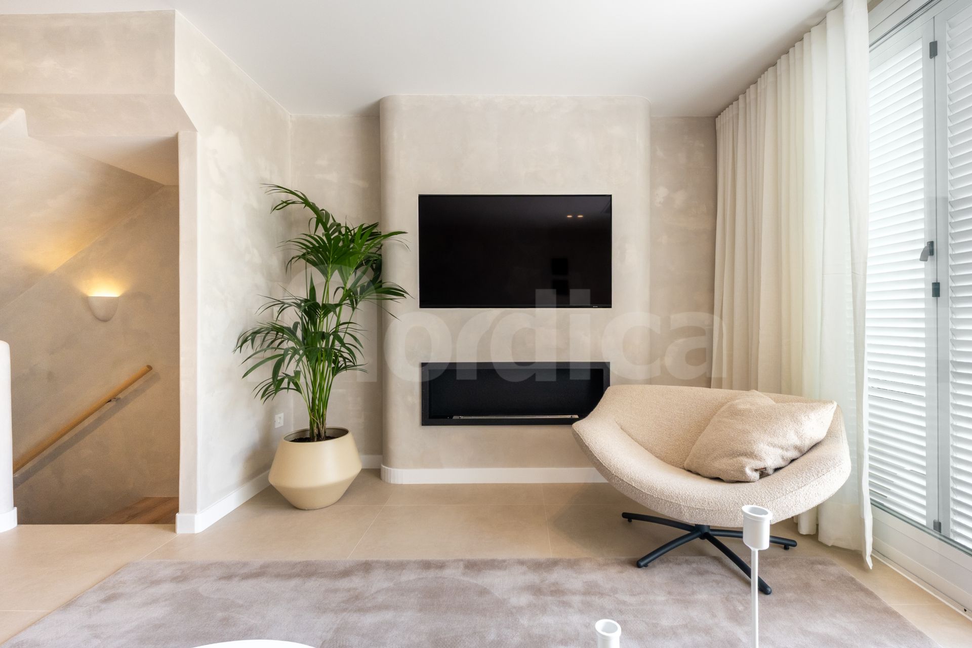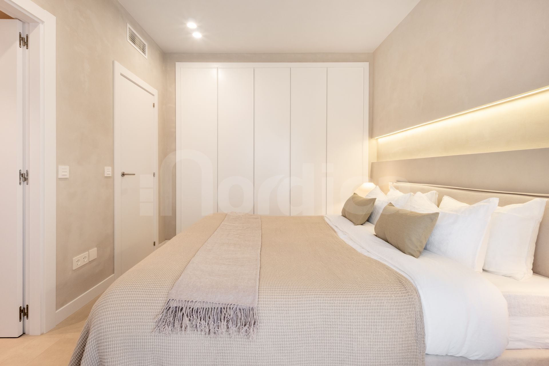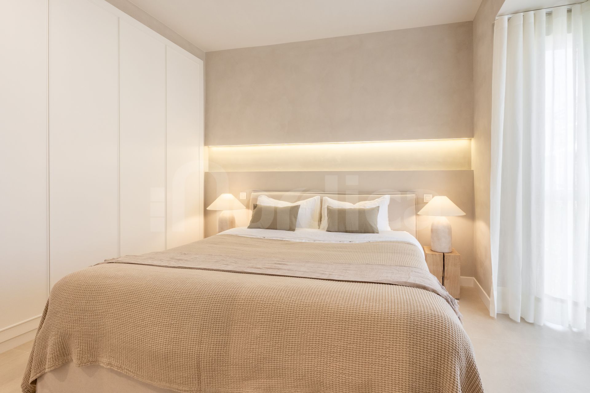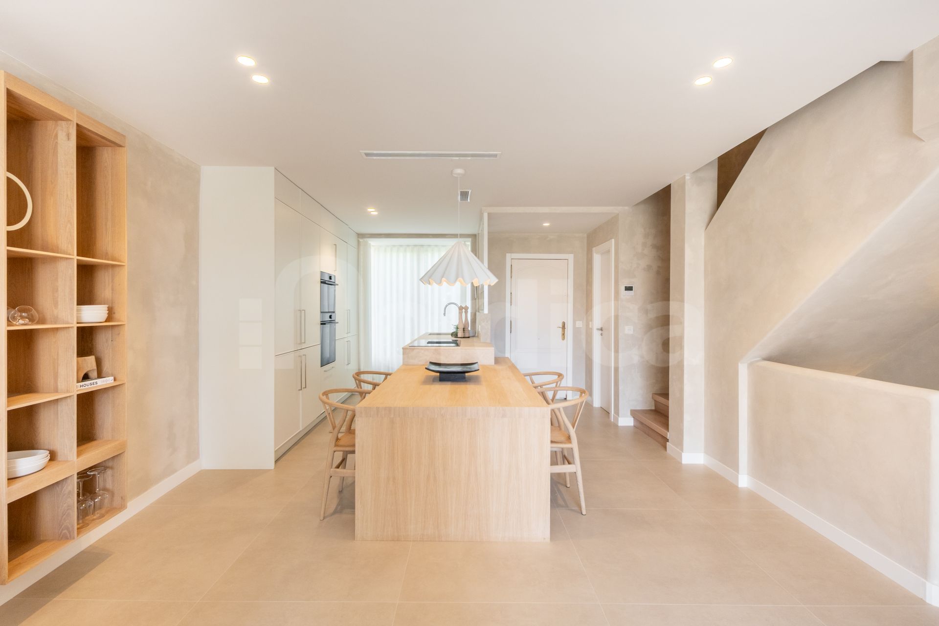 Bostaden har smakfullt designats om i varma, neutrala toner med förstklassiga materialval genomgående, vilket skapar en modern och inbjudande atmosfär. Den har ett rymligt, öppet kök som smidigt är integrerat med vardagsrum och matsal – idealiskt både för vardagsliv och för att umgås med gäster.