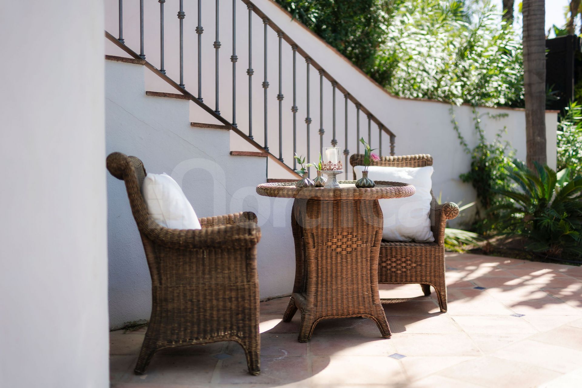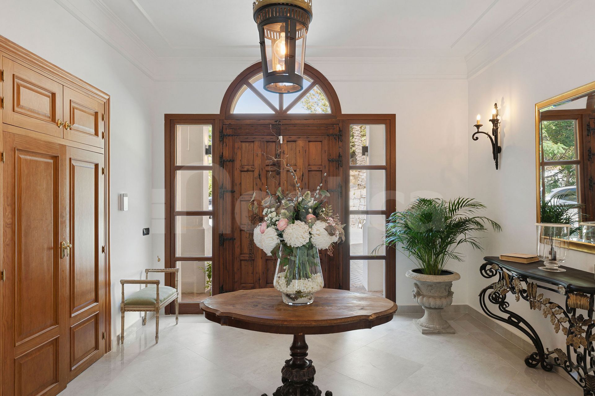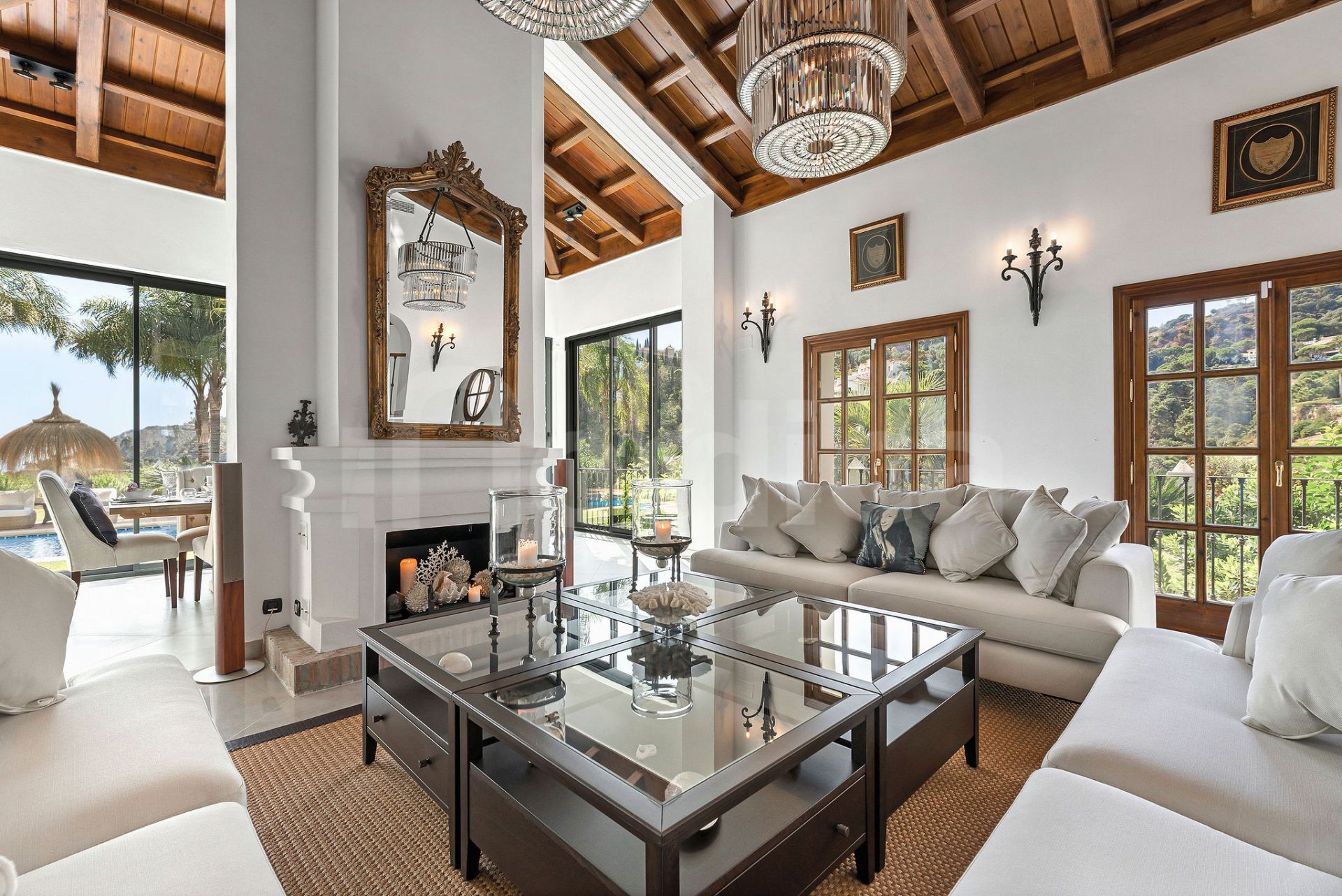 Villa Las Palmeras erbjuder en sällsynt möjlighet att förvärva en lyxbostad inom det exklusiva, inhägnade området El Madroñal i Benahavís. Här förenas tidlös andalusisk charm med modern sofistikation i en rymlig villa om 531 kvadratmeter, fördelad på två plan. Bostaden är noggrant planerad för den som värdesätter avskildhet, panoramautsikt och en harmonisk inomhus–utomhuslivsstil. Fastigheten genomgick en omfattande renovering 2024, vilket säkerställer en modern standard av komfort och elegans i ett av Costa del Sols mest prestigefyllda områden.
