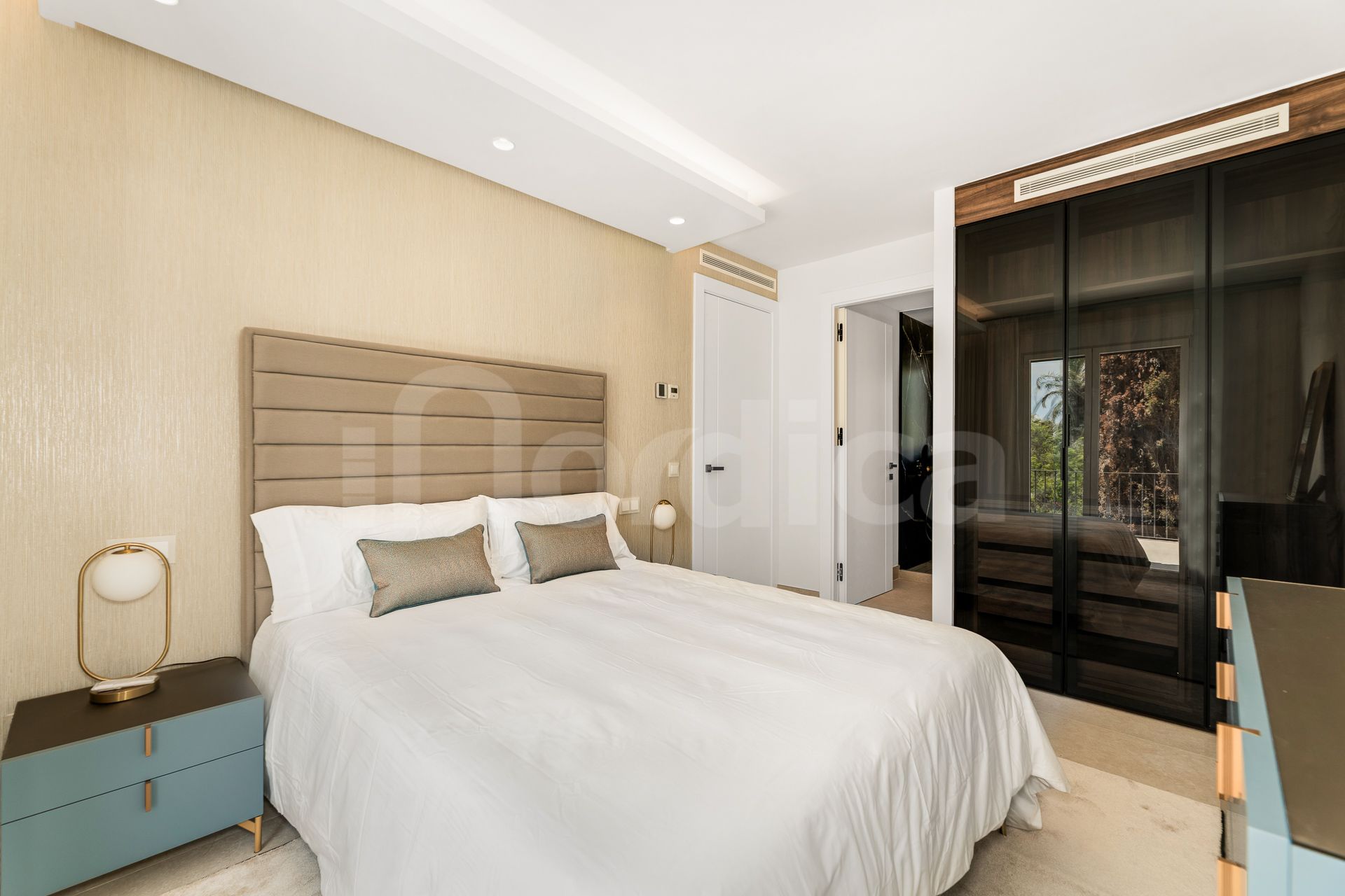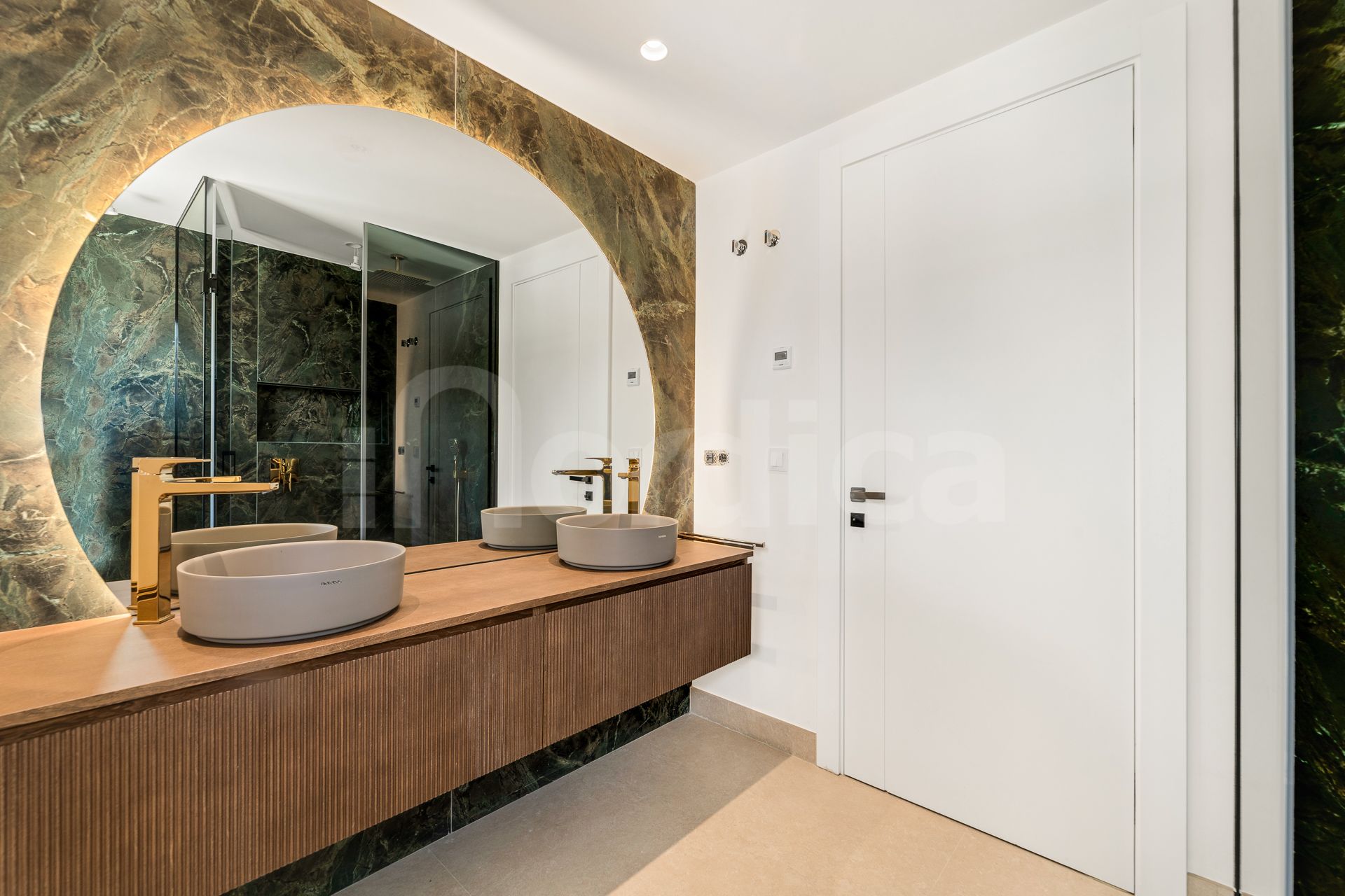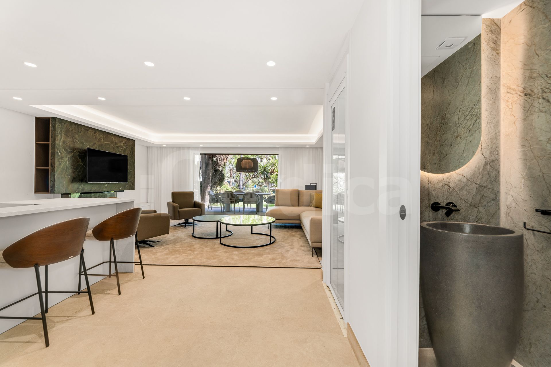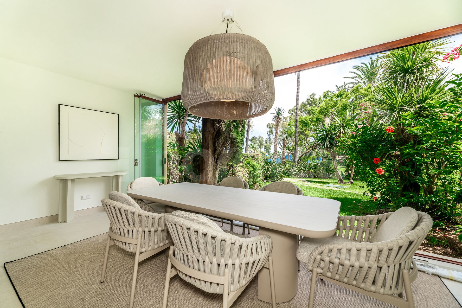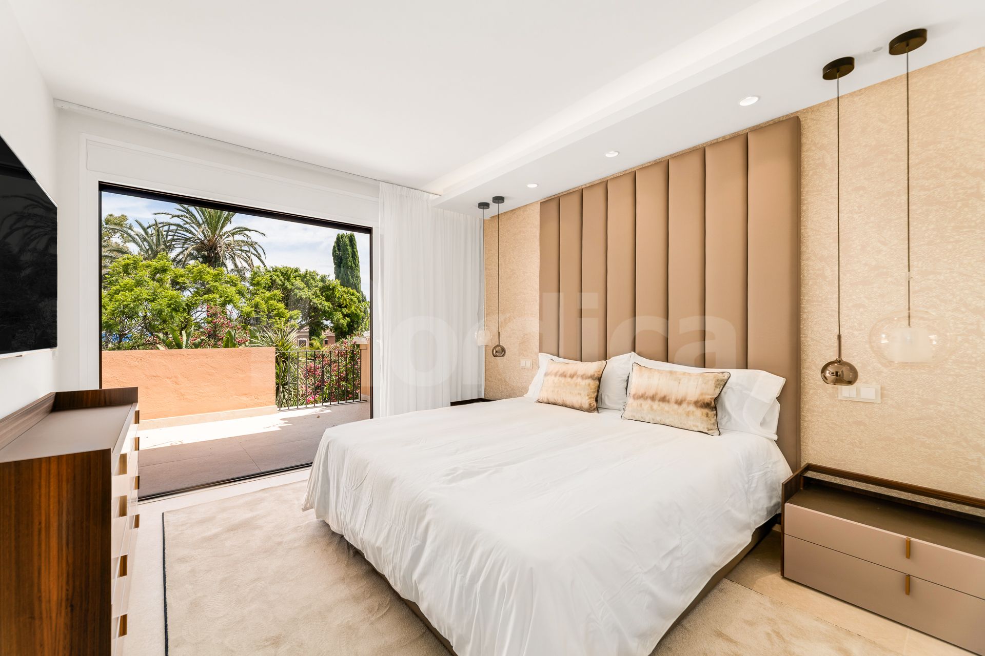 Ett exceptionellt radhus vid strandkanten, noggrant och fullständigt renoverat till högsta standard, beläget i ett av de mest prestigefyllda och eftertraktade områdena på New Golden Mile, med direkt tillgång till havet.