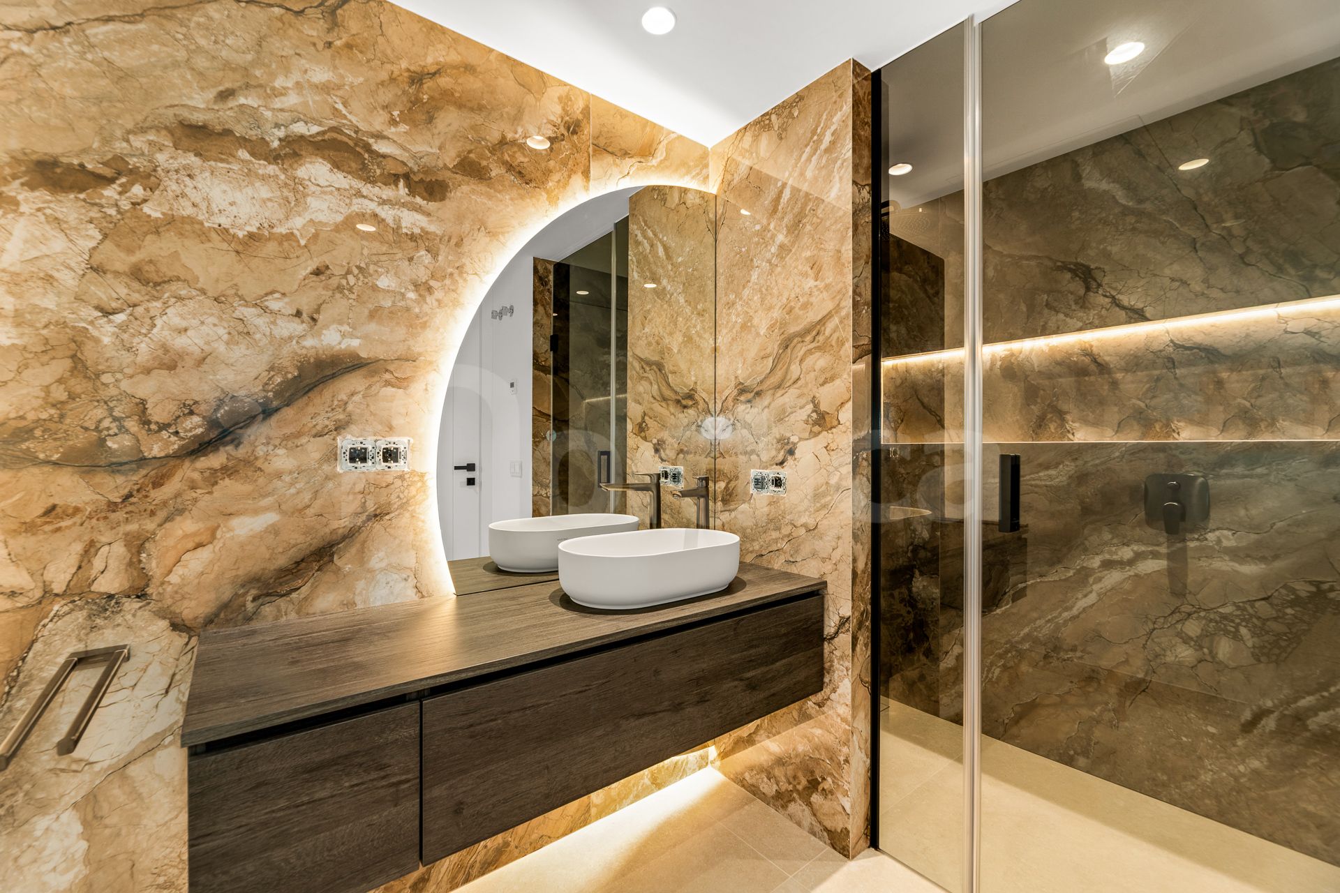Utomhuslivet är en av höjdpunkterna, med tre rymliga terrasser i söderläge som bjuder på hisnande panoramautsikt över havet och utgör den perfekta platsen för avkoppling, umgänge och att njuta av den medelhavska livsstilen året runt.