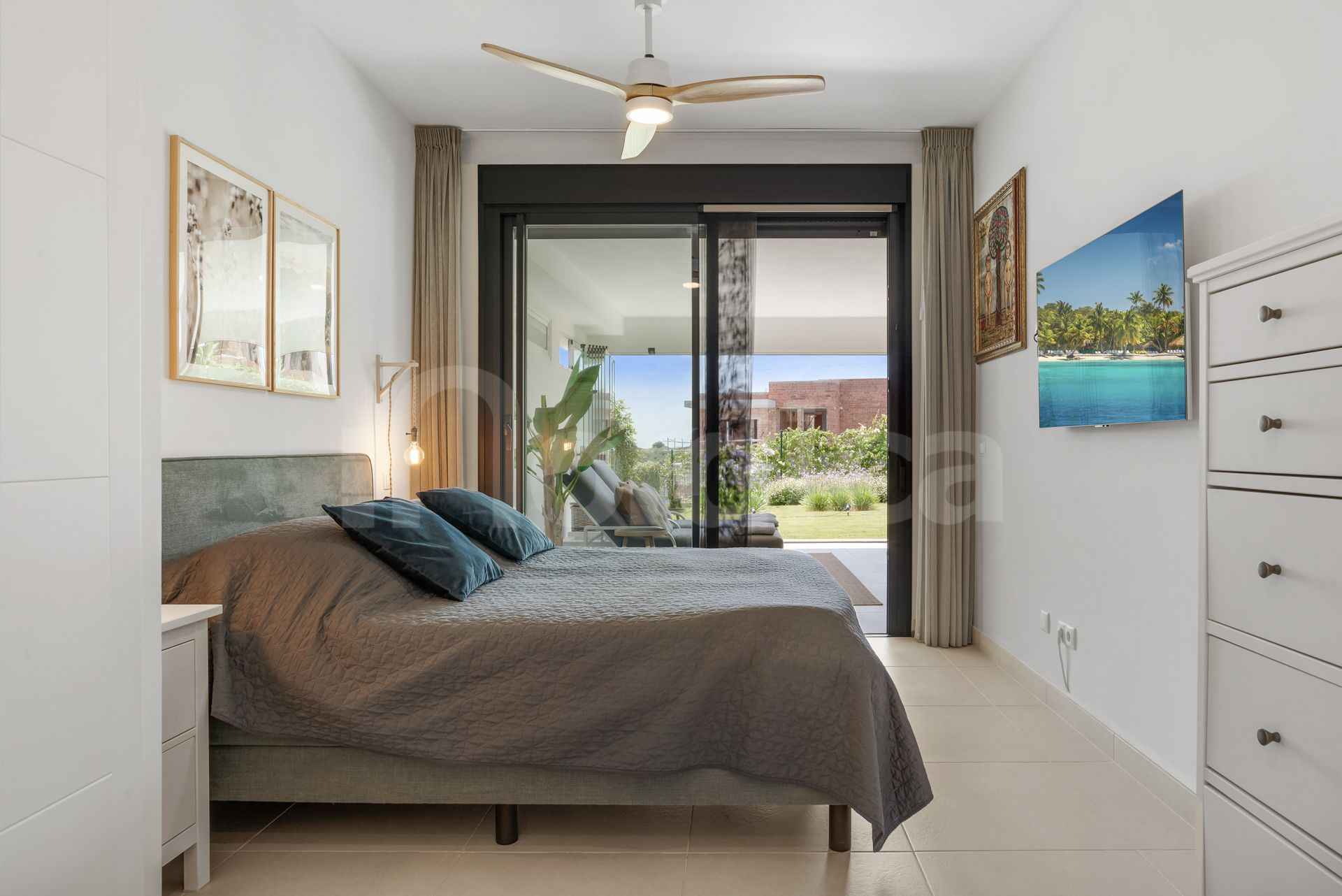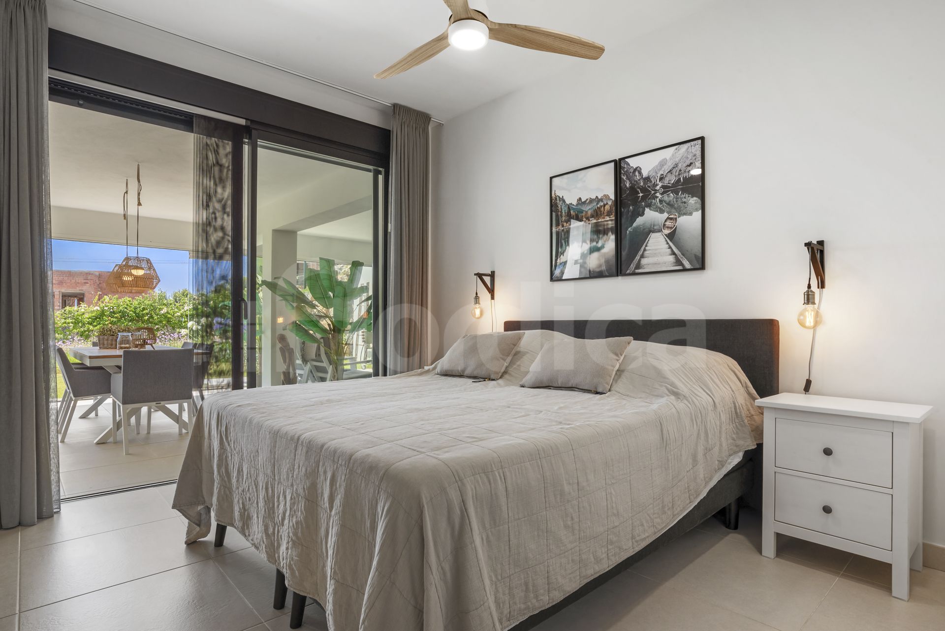 Vacker och modern markplanslägenhet med två sovrum till salu i det eftertraktade området Mirador del Golf, intill Estepona Golfklubb. Byggd 2021, kombinerar denna bostad modern design, komfort och avskildhet i en lugn miljö, endast några minuter från Estepona stad, stranden och alla bekvämligheter.