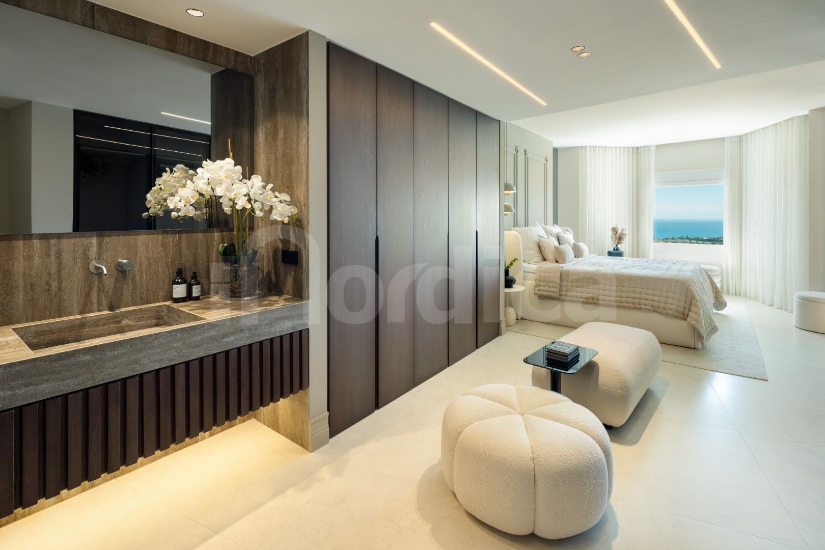 Mastersviten erbjuder en lugn och ljusfylld tillflyktsort där stora fönster ramar in en panoramautsikt över Medelhavet och Marbellas ikoniska berg La Concha. Ytterligare sovrum bjuder på lika stilfullt och bekvämt boende för familj eller gäster. Ett gästbadrum samt dedikerat förvaringsutrymme förstärker ytterligare bostadens praktiska egenskaper.