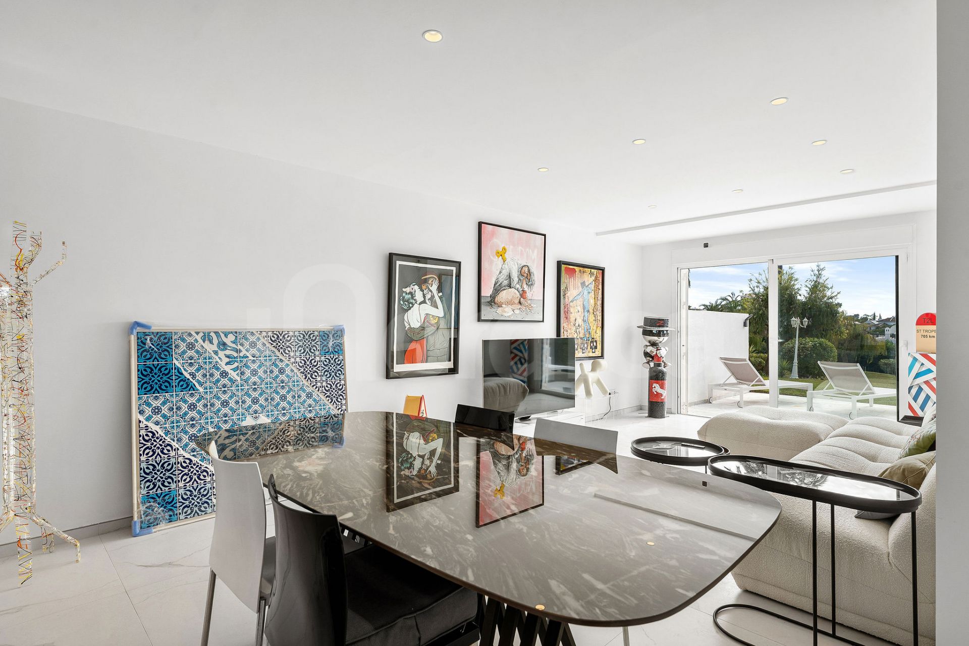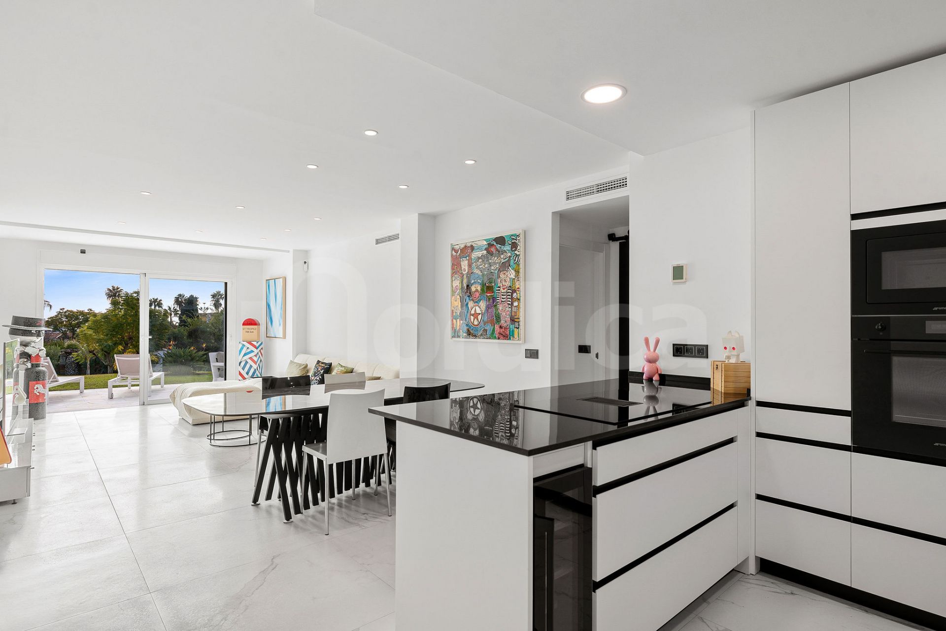 Med sitt hörnläge, tillgång på bottenvåningen, högkvalitativa renovering och förstklassiga läge i La Rinconada utgör denna bostad en utmärkt möjlighet som permanentbostad, semesterbostad eller investering i Nueva Andalucía.