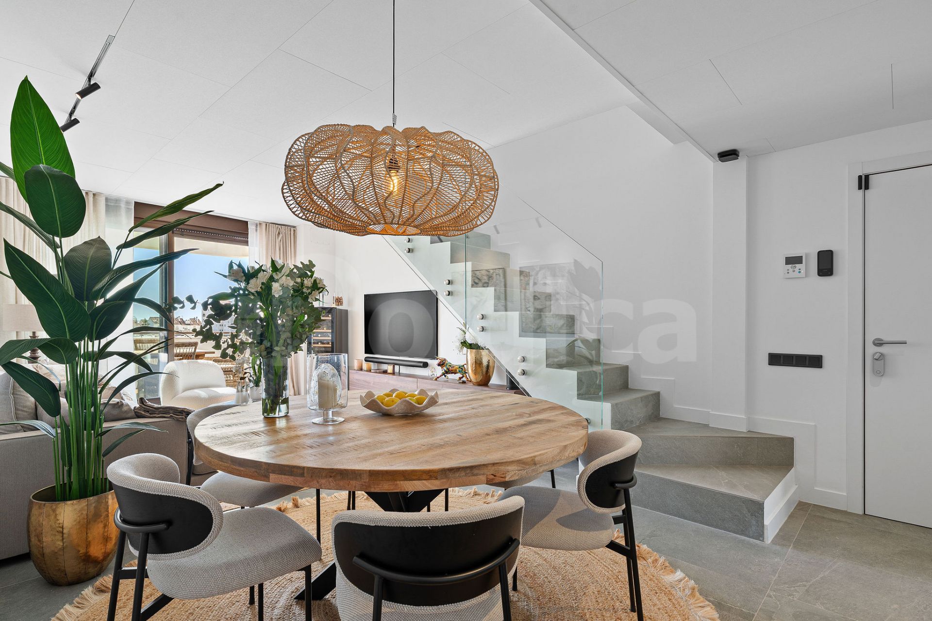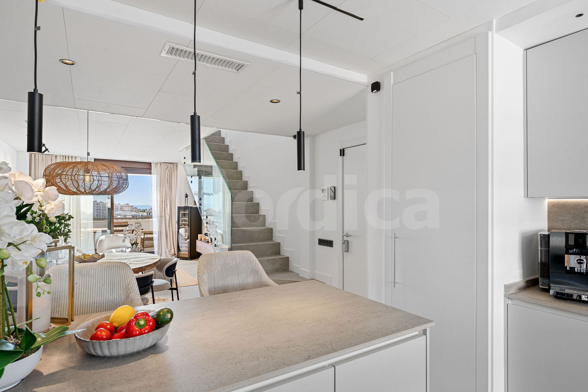 Takvåningen är fullt möblerad i en sofistikerad skandinavisk stil och har uppgraderats till en mycket hög standard. Bland egenskaperna märks ljudisolerade tak och avancerad smart hem-teknik, som ger dig möjlighet att kontrollera persienner, värme och belysning på distans via din mobiltelefon – vilket säkerställer att ditt hem alltid är perfekt förberett, oavsett var du befinner dig.