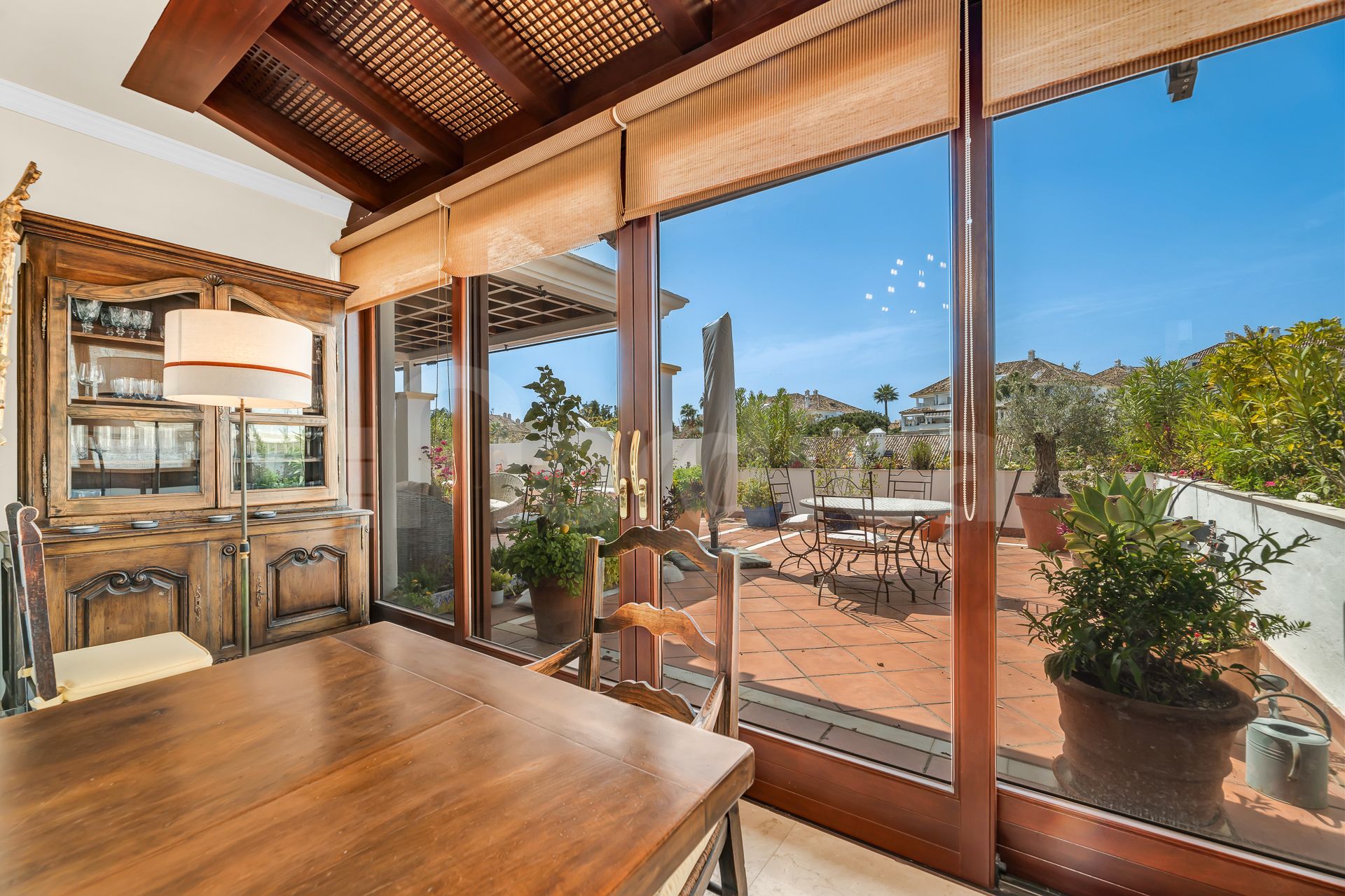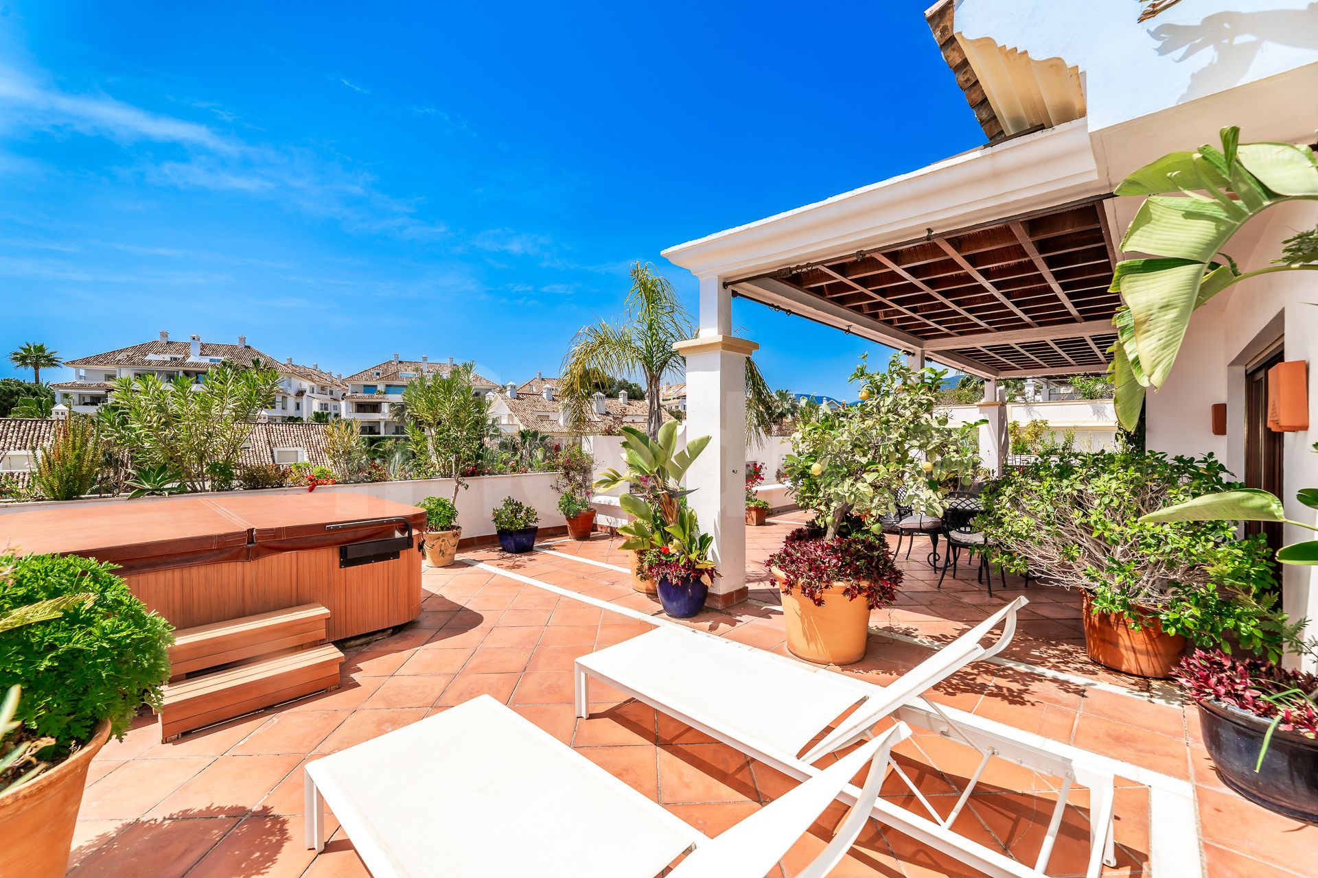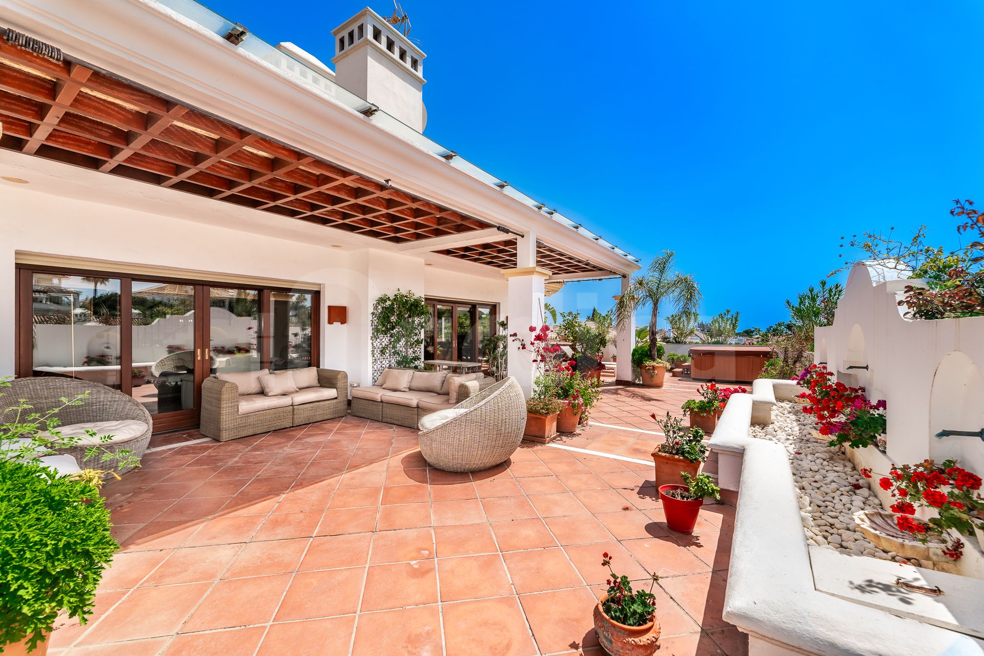 Belägen i hjärtat av Marbellas prestigefyllda Golden Mile är denna exceptionella duplex-penthouse ett verkligt mästerverk. Här förenas sofistikerad design, ultimat komfort och ett avundsvärt läge, endast en kort promenad från det ikoniska Puente Romano Resort och stranden – en av de mest eftertraktade adresserna på Costa del Sol.