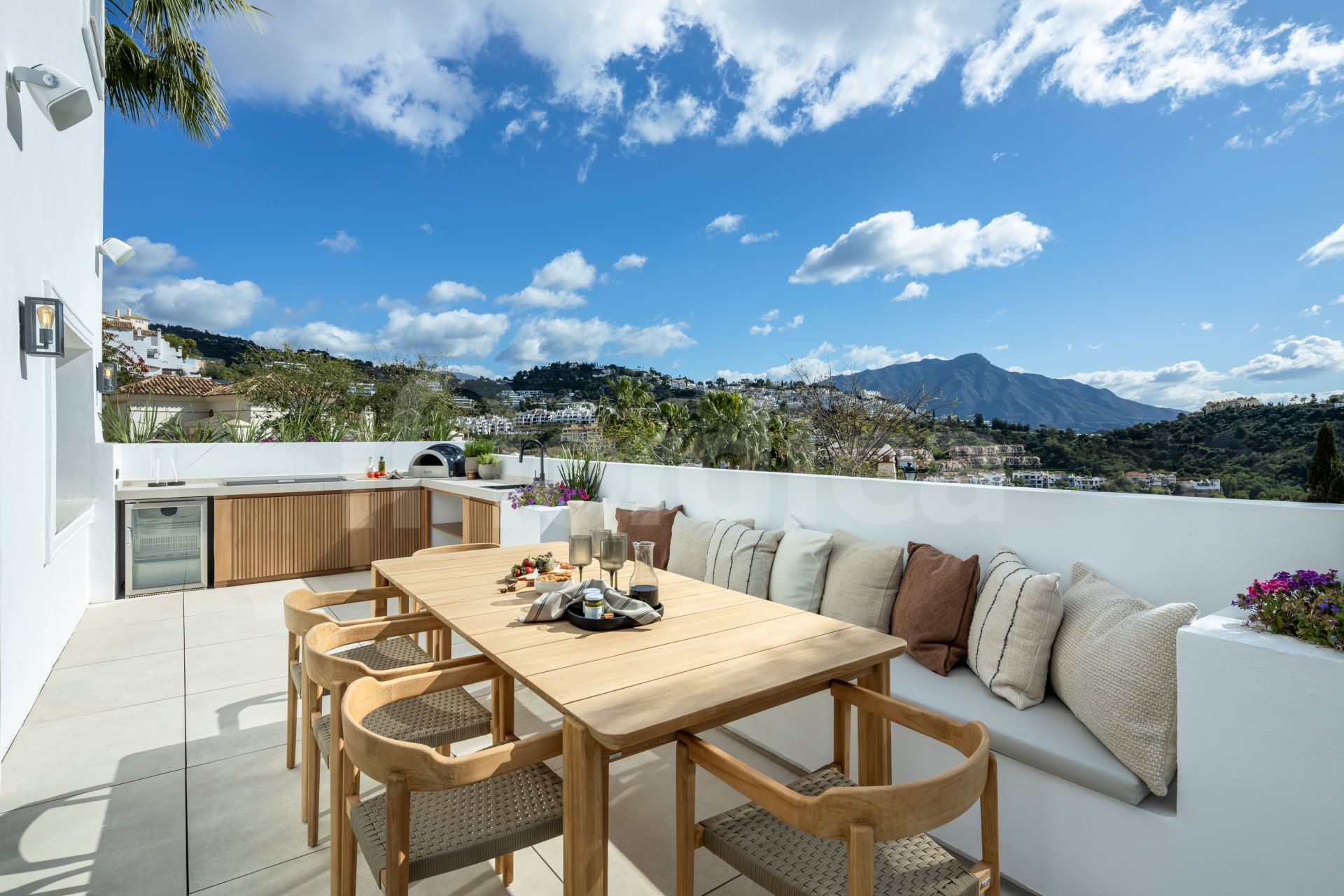 Upptäck Villa Fortuna, en fantastiskt renoverad villa med fem sovrum belägen i det prestigefyllda, inhägnade området Los Arqueros, med spektakulär utsikt över Los Arqueros Golfbana. Denna villa kombinerar modern elegans med tidlös design och ligger bara en kort bilresa från bekvämligheter såsom lyxshopping, gourmetrestauranger och stränder.