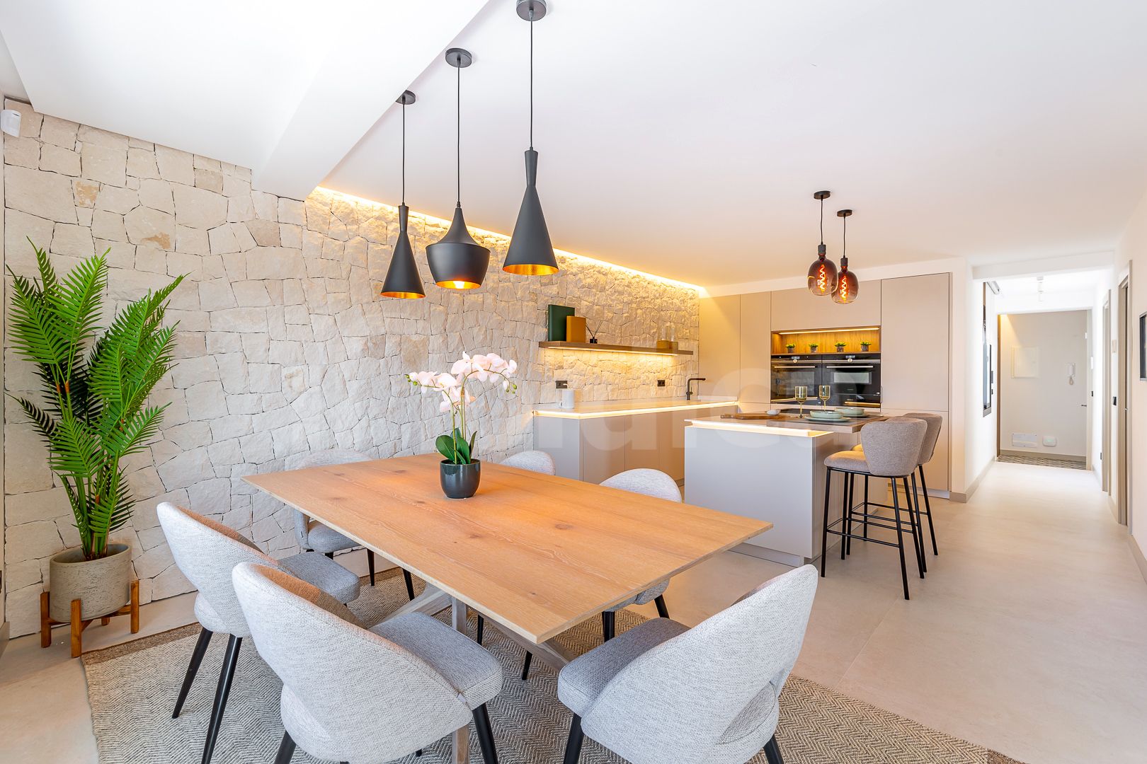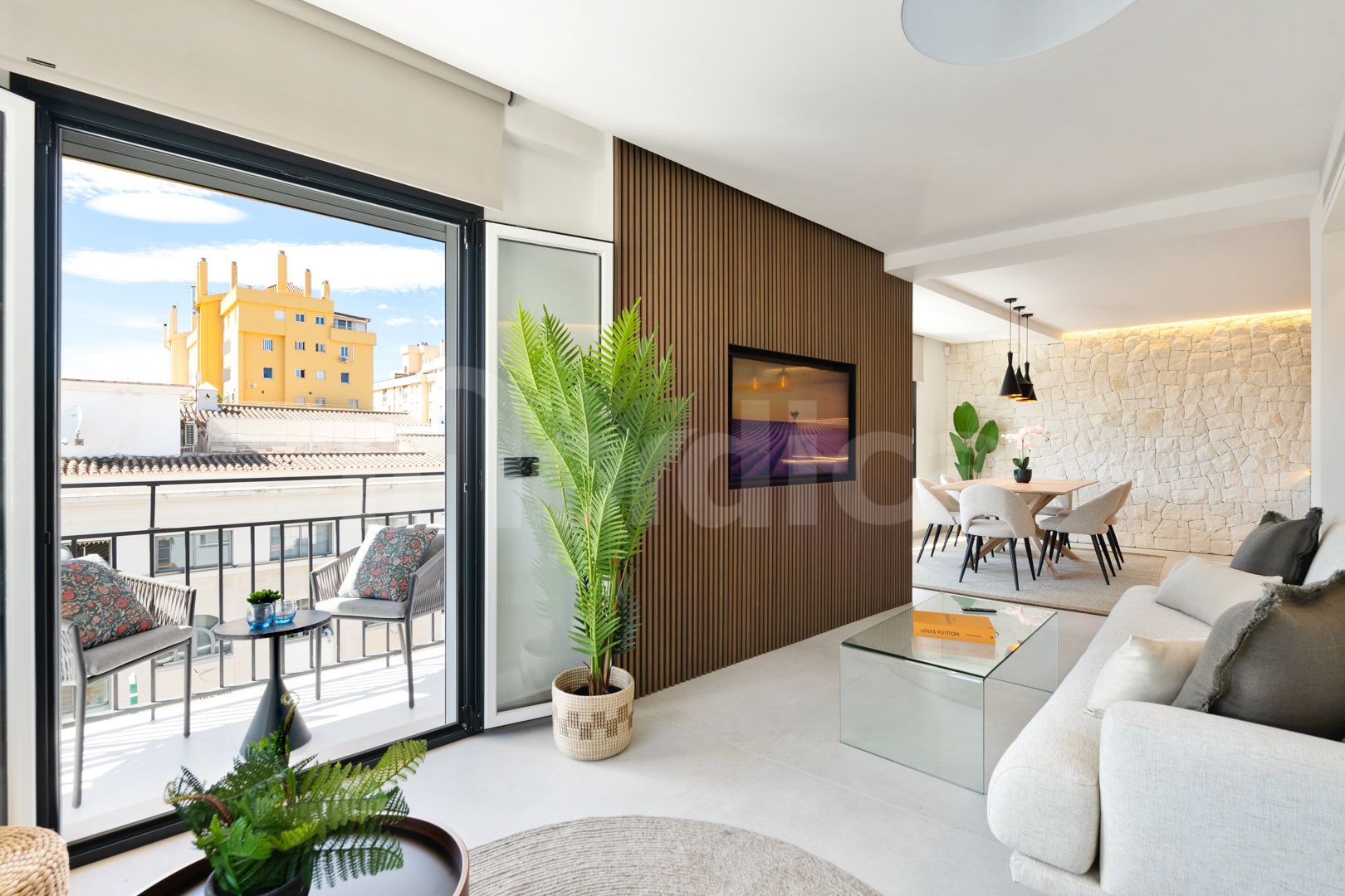 Denna nyrenoverade takvåning i hjärtat av San Pedro de Alcántara kombinerar modern lyx med ett oslagbart läge. Belägen på stadens livliga huvudgata för fotgängare erbjuder bostaden den ultimata kombinationen av urban livsstil och kustnära charm. Endast några minuter från Marbella och det berömda Puerto Banús, ligger lägenheten även på gångavstånd till stranden och San Pedros strandpromenad, vilket gör den till ett perfekt val för den som söker bekvämlighet och ett medelhavsliv. Från den privata terrassen kan de boende njuta av enastående panoramautsikt över havet.