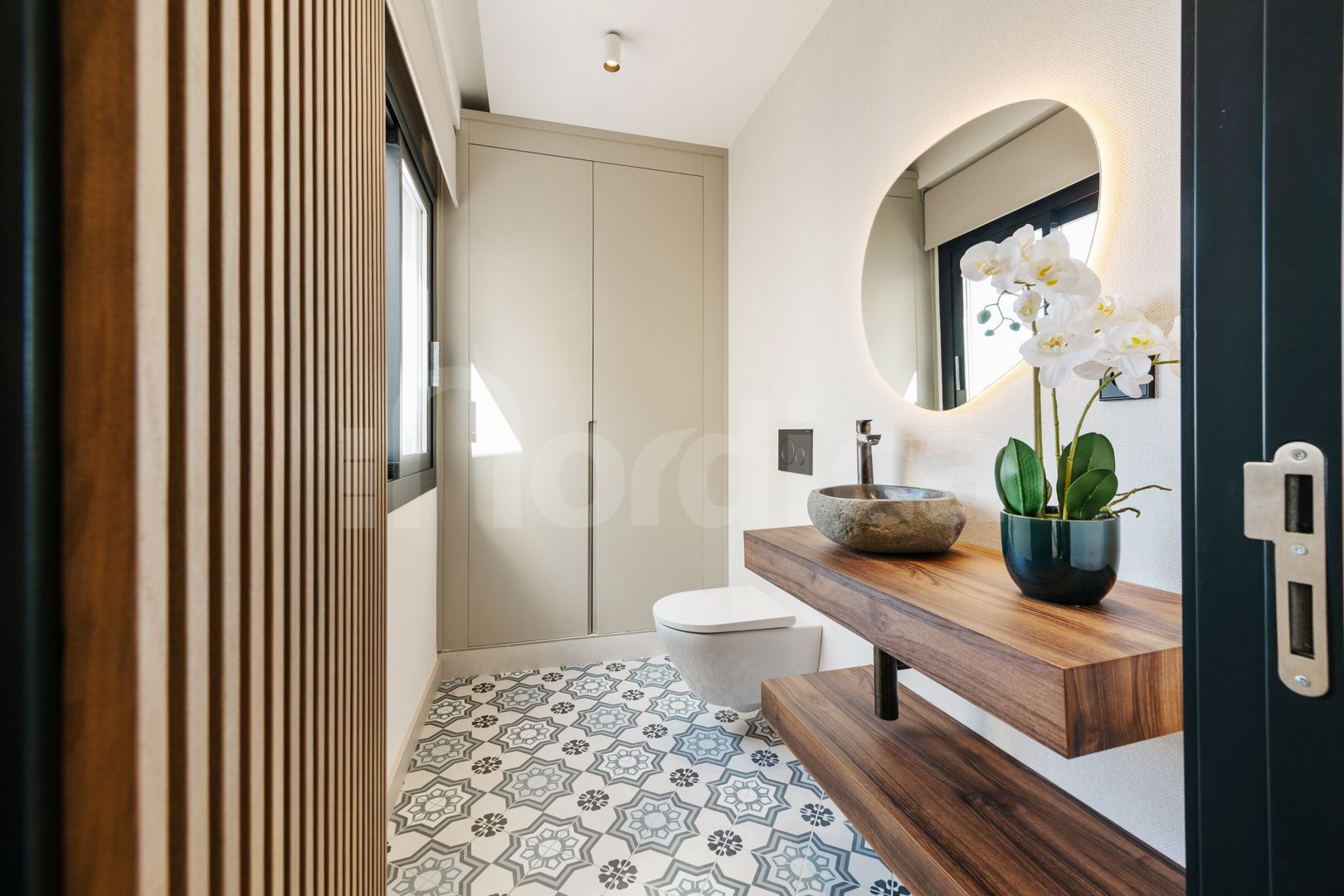 Med två rymliga sovrum, vardera med eget badrum, garanterar lägenheten både komfort och avskildhet. Varje detalj återspeglar högsta kvalitet, från det fullt utrustade köket med Siemens StudioLine-vitvaror och silestonebänkskivor till Gessi-armaturer, Hansgrohe- och Duravit-badrum samt kanaliserad Daikin-luftkonditionering och uppvärmning. Ytterligare funktioner såsom Sonos-ljudsystem och AJAX-larm ger både underhållning och säkerhet, medan garageplats under marken tillför ytterligare bekvämlighet.