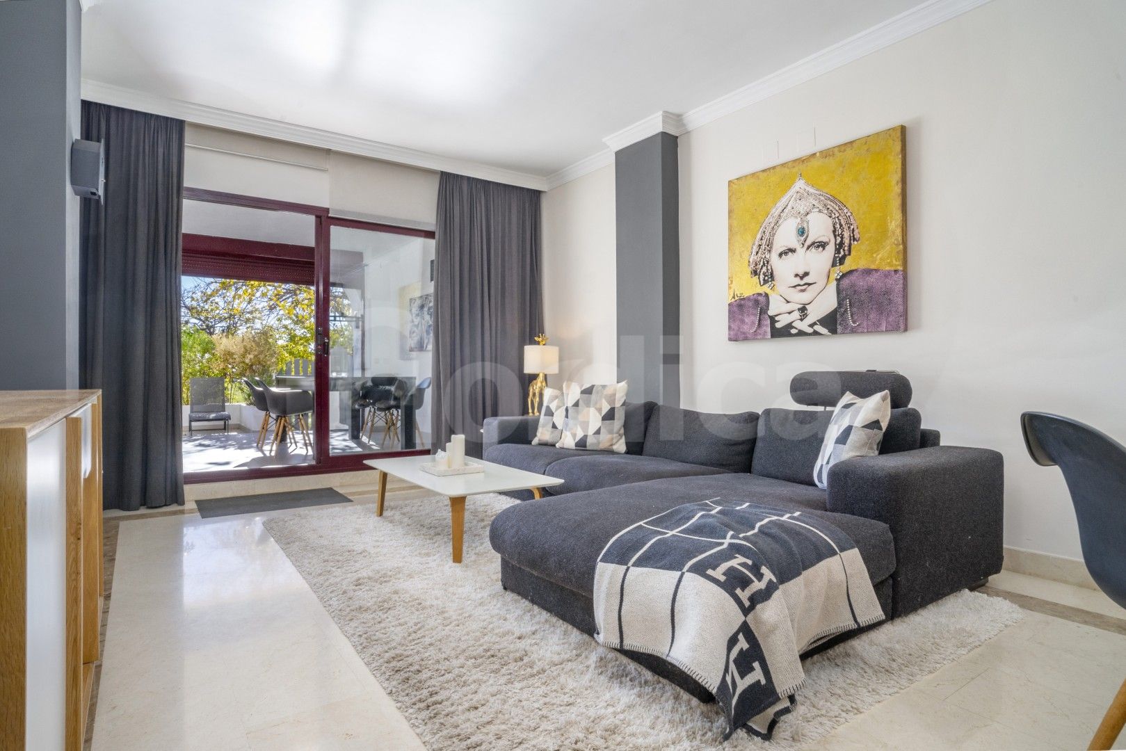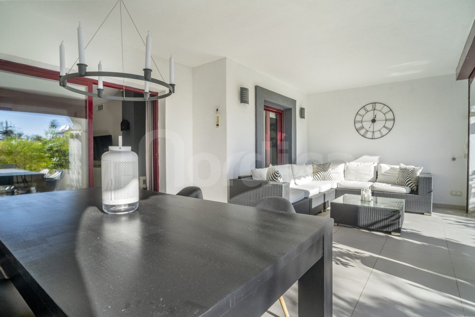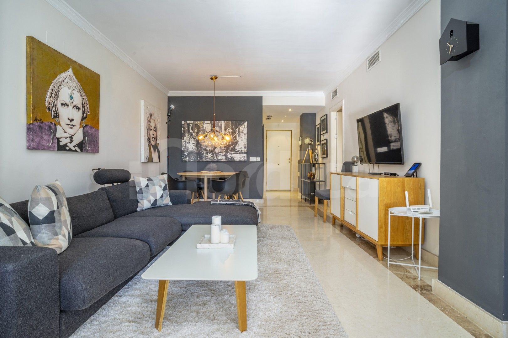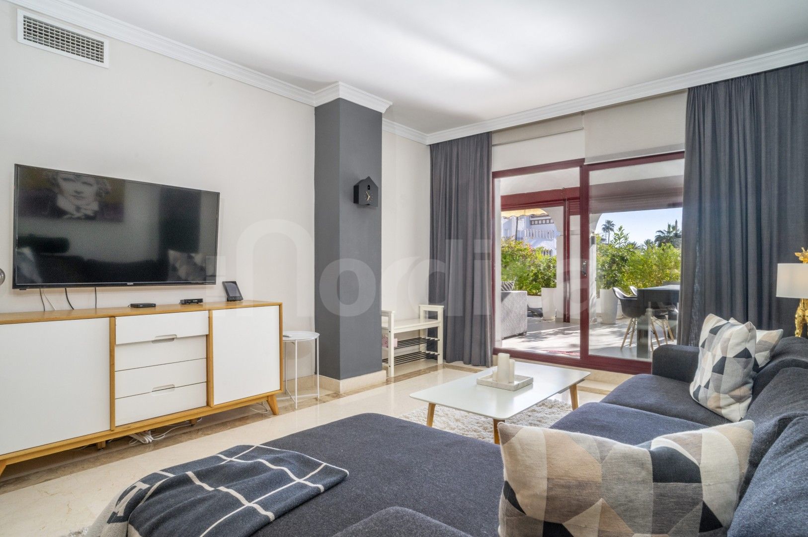 Denna attraktiva lägenhet med två sovrum på bottenvåningen till salu i Edificio Noray är idealiskt belägen i det mycket eftertraktade området San Pedro strand, bara en kort promenad från strandpromenaden, stranden och alla lokala bekvämligheter. Edificio Noray är en väletablerad och välskött urbanisation, känd för sin lugna bostadsmiljö, mogna gemensamma områden och utmärkta närhet till havet, vilket gör den idealisk både som permanentbostad och som semesterbostad eller investeringsobjekt.