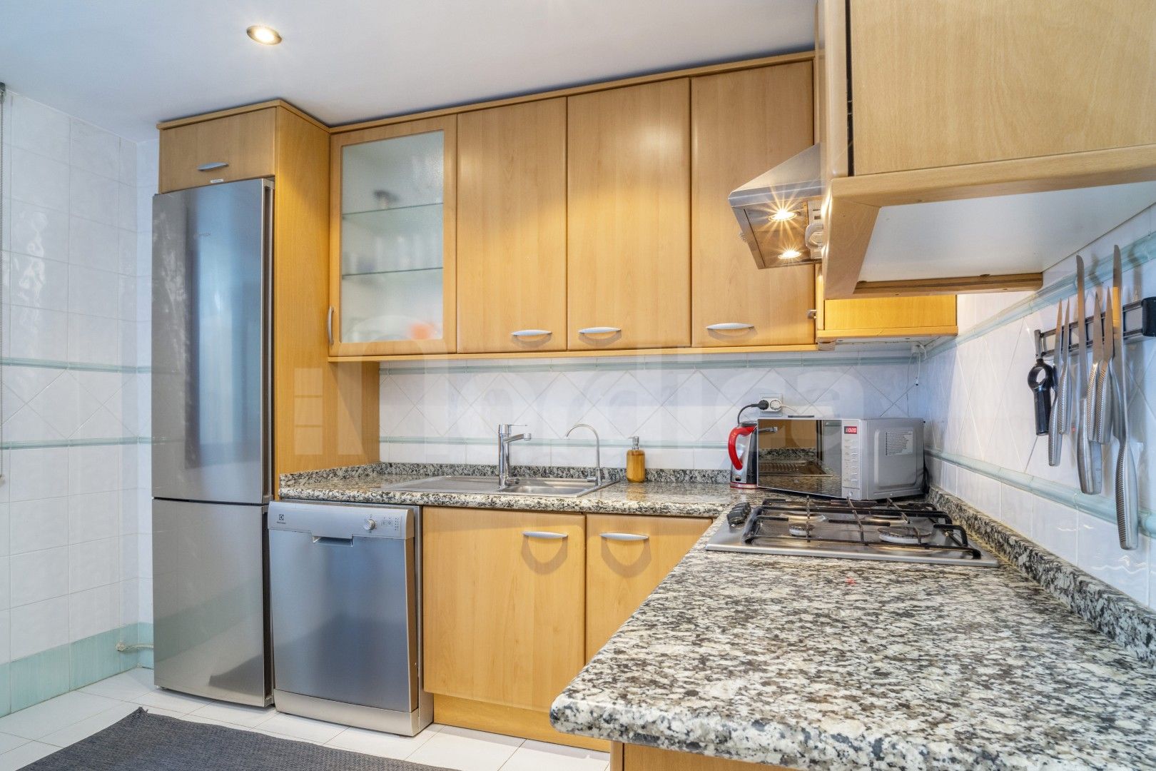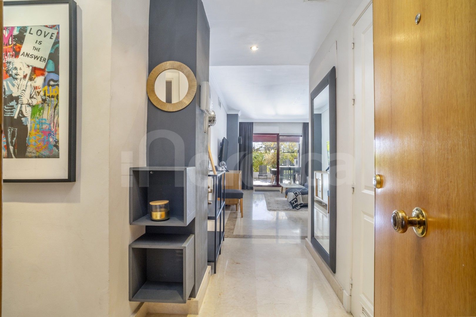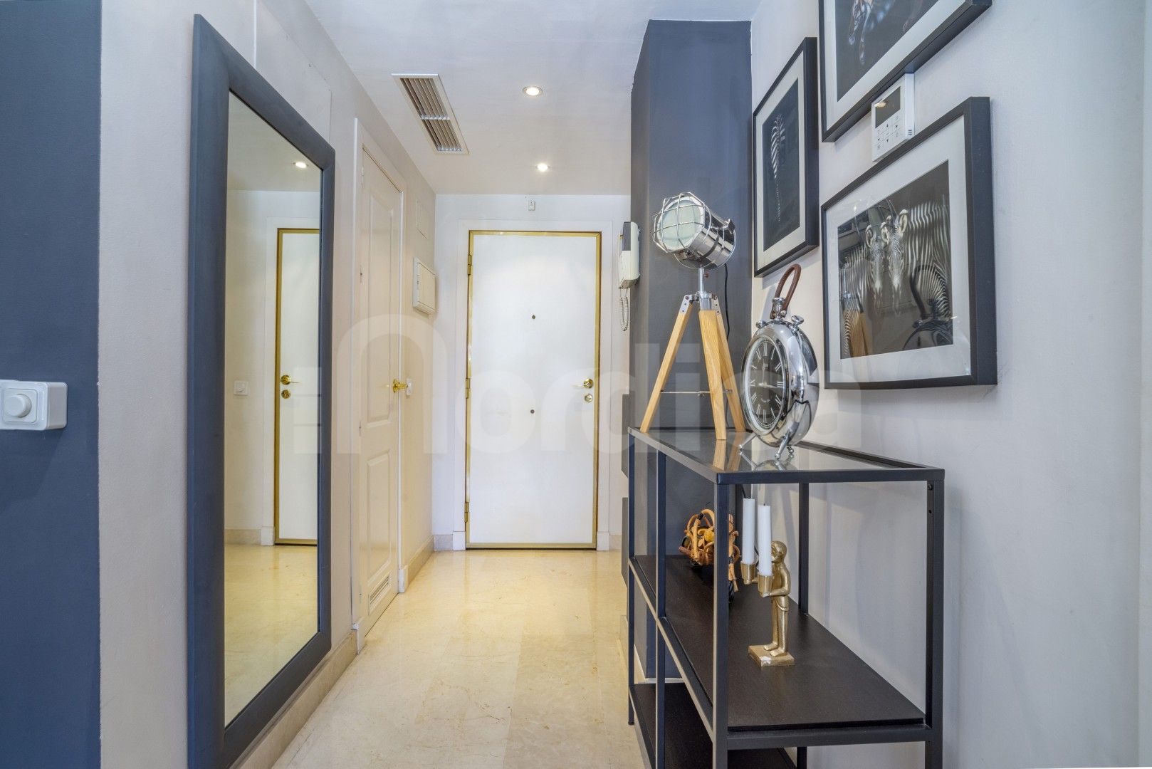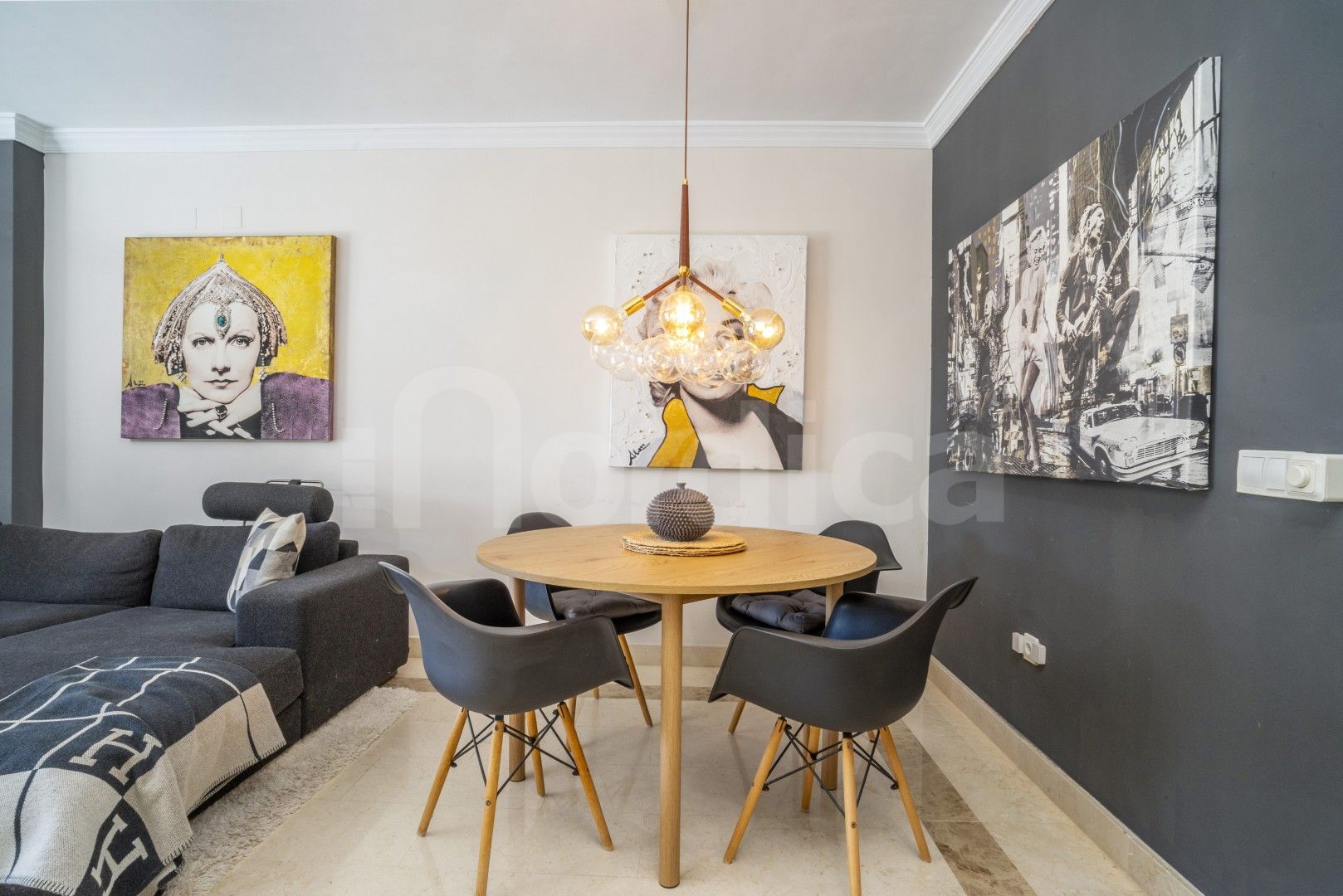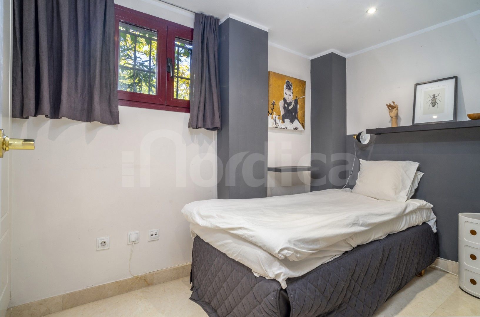 Denna attraktiva lägenhet med två sovrum på bottenvåningen till salu i Edificio Noray är idealiskt belägen i det mycket eftertraktade området San Pedro strand, bara en kort promenad från strandpromenaden, stranden och alla lokala bekvämligheter. Edificio Noray är en väletablerad och välskött urbanisation, känd för sin lugna bostadsmiljö, mogna gemensamma områden och utmärkta närhet till havet, vilket gör den idealisk både som permanentbostad och som semesterbostad eller investeringsobjekt.