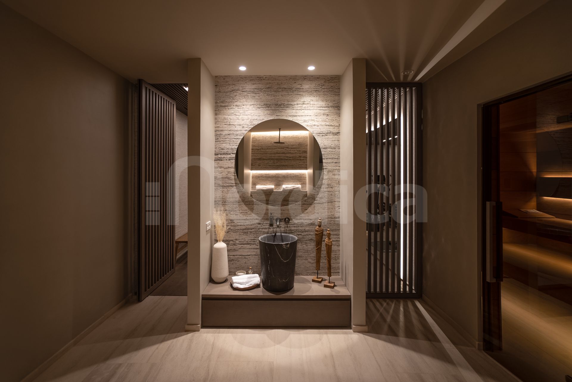 För att fullända upplevelsen erbjuder fastigheten ett lyxigt SPA med bastu och turkiskt bad, ett fullt utrustat gym, vinkällare för konst och ett förstklassigt garage för tre bilar. Fastigheten säljs fullt möblerad.