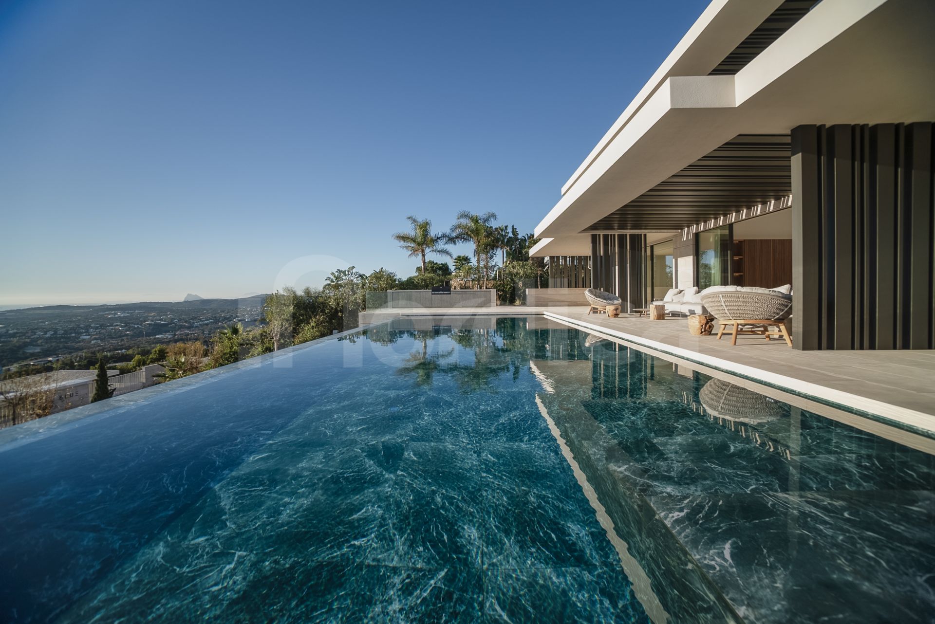 Villa Panoramah, designad och byggd av Ark Architects, är en fantastisk modern villa med panoramautsikt belägen på en privilegierad plats i La Reserva de Sotogrande med utsikt över Medelhavet. Med naturmaterial av högsta standard framträder modern sofistikation i varje hörn av villan. Denna imponerande lyxfastighet, omgiven av blått, erbjuder panoramautsikt över golfbanan och havet, dominerar kullen och tallskogen som gränsar till en av trädgårdarna. Alla områden har direkt tillgång till poolterrassen med infinitypoolen som svävar i himlen.