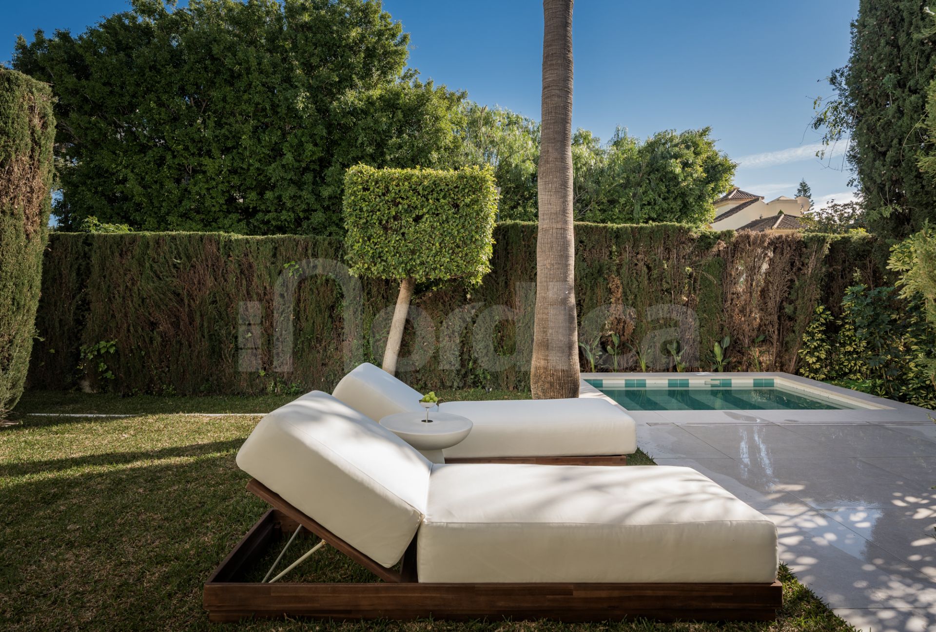 Diese neu renovierte Eck-Doppelhaushälfte befindet sich in der gesicherten Wohnanlage Altos de Puente Romano an der Goldenen Meile von Marbella und bietet Privatsphäre, Sicherheit und ein anspruchsvolles Küstenleben. Umgeben von gepflegten mediterranen Gärten genießt das nach Süden ausgerichtete Haus den ganzen Tag Sonne, einen privaten Tauchpool sowie Zugang zu wunderschön angelegten Gemeinschaftsgärten und einem großen Swimmingpool.