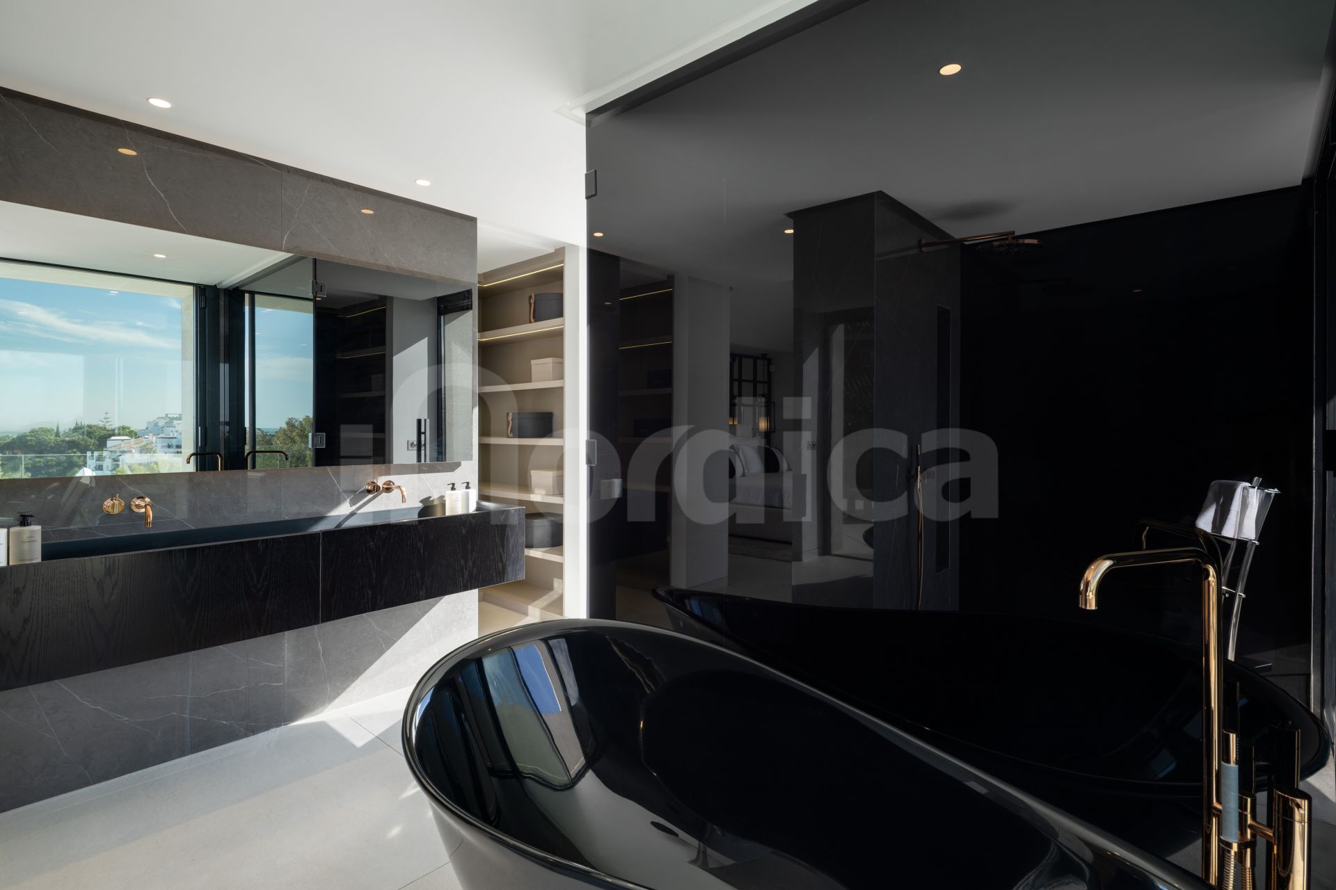 Ursprünglich entworfen vom renommierten Architekten Antonio Morillo von AMES Architects und 2020 vollständig von Palmeras renoviert, besticht die Residenz durch anspruchsvolle Architektur und makellose Handwerkskunst. Auf drei Ebenen verteilt, bietet sie eine Gesamtwohnfläche von 555 m², ergänzt durch 530 m² großzügige Terrassen, eingebettet in ein weitläufiges Grundstück von 1.941 m².