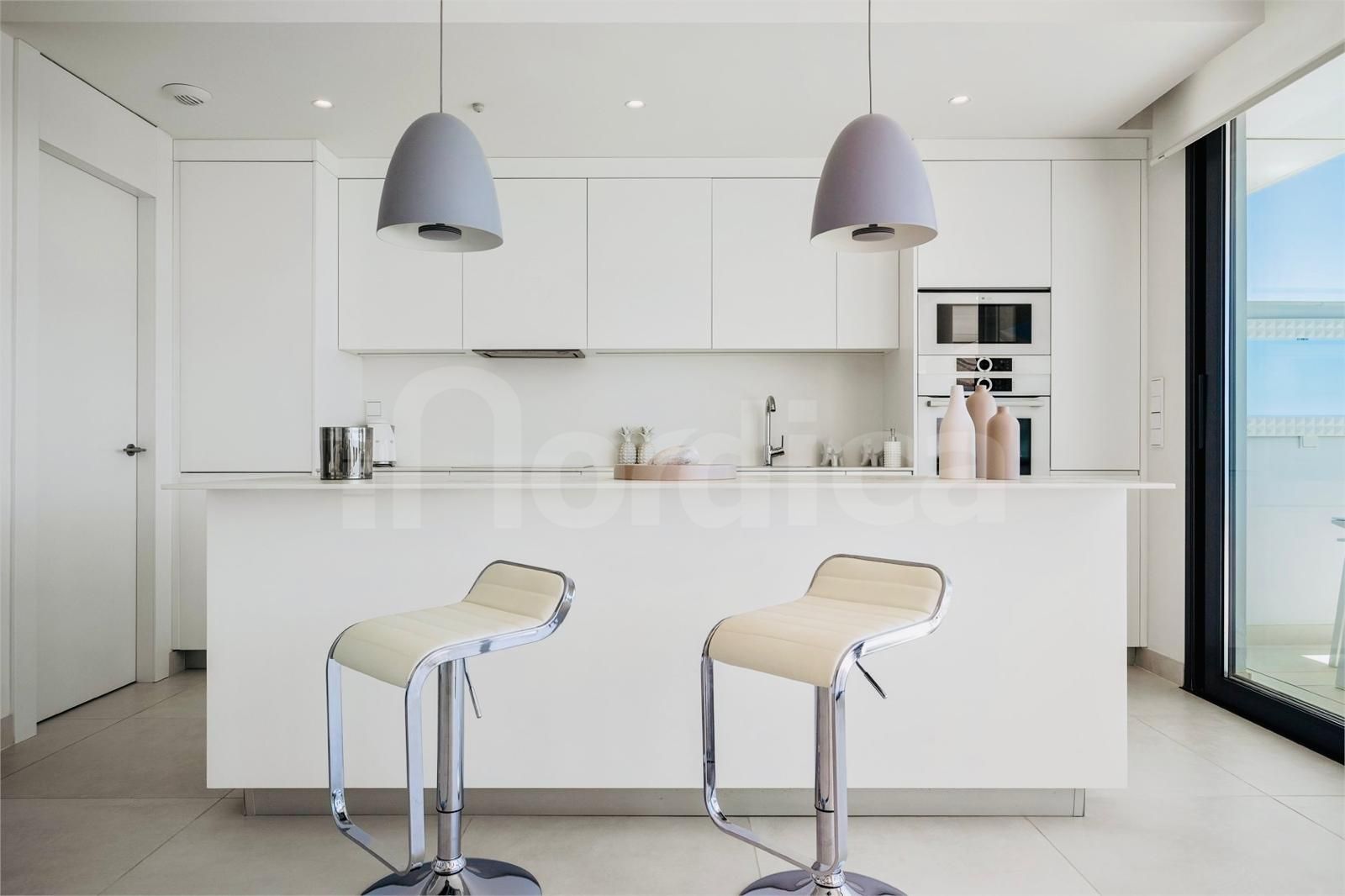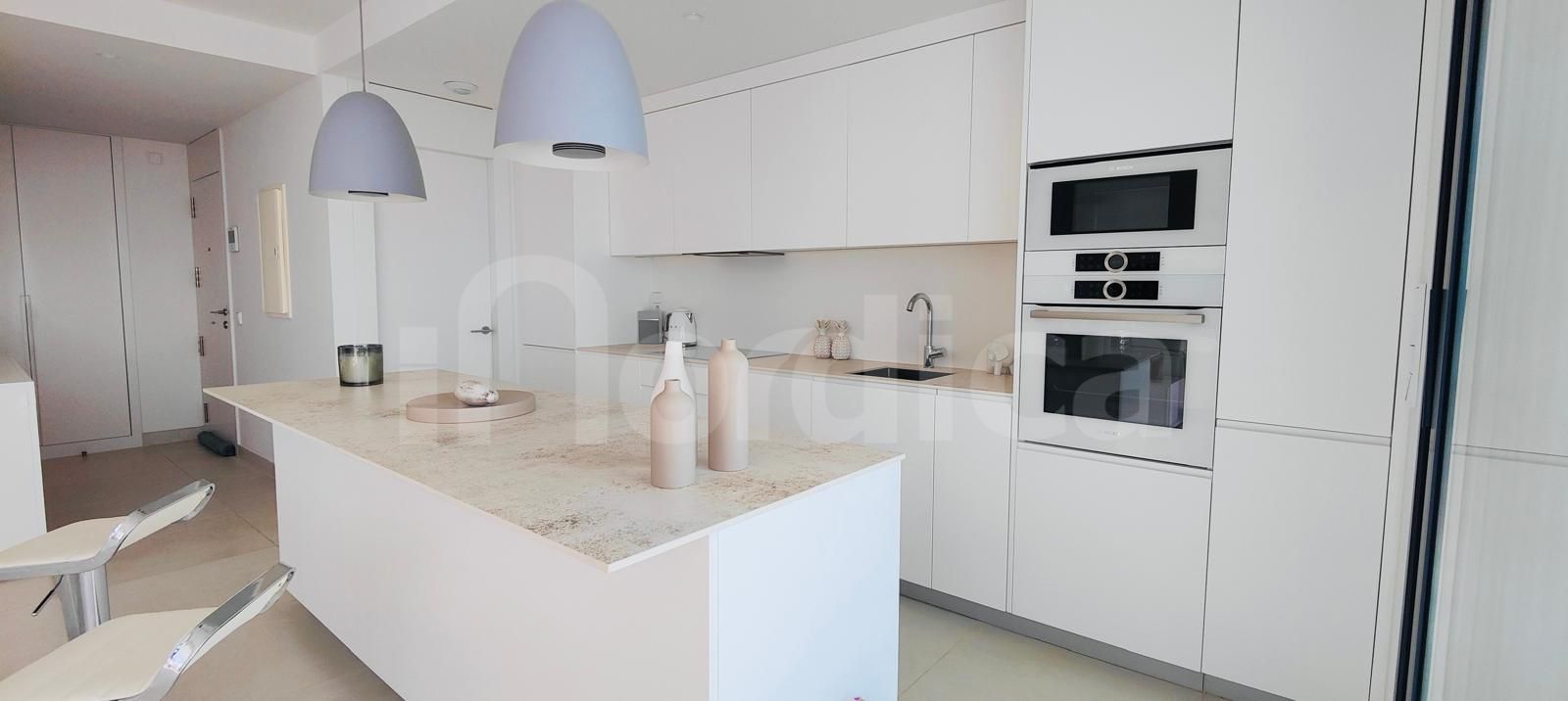 Diese stilvolle Wohnung bietet zwei großzügige Schlafzimmer und zwei Badezimmer, darunter ein luxuriöses en-suite Bad mit Fußbodenheizung für zusätzlichen Komfort. Das herausragende Merkmal ist die großzügige 51 m² große Terrasse – der ideale Ort, um das mediterrane Klima das ganze Jahr über zu genießen und zu entspannen.