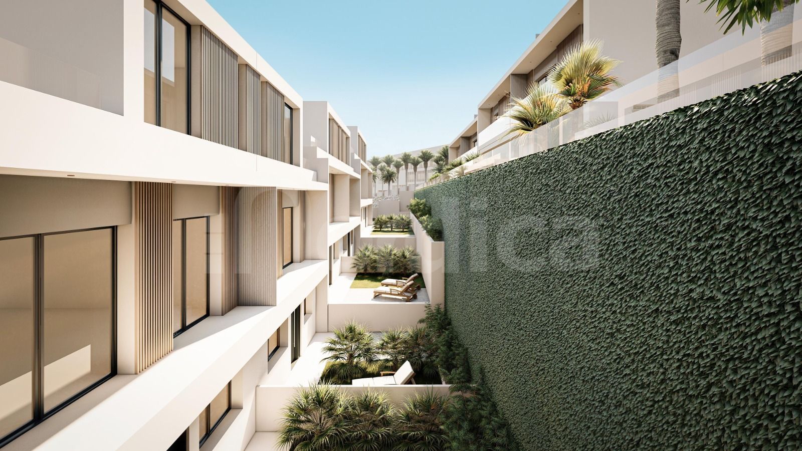 Die Eckeinheiten haben einen privaten Garten mit privatem Pool und die andere Einheit hat eine fabelhafte Solarium-Dachterrasse mit privatem Pool, ideal um den fantastischen Meerblick zu genießen.
