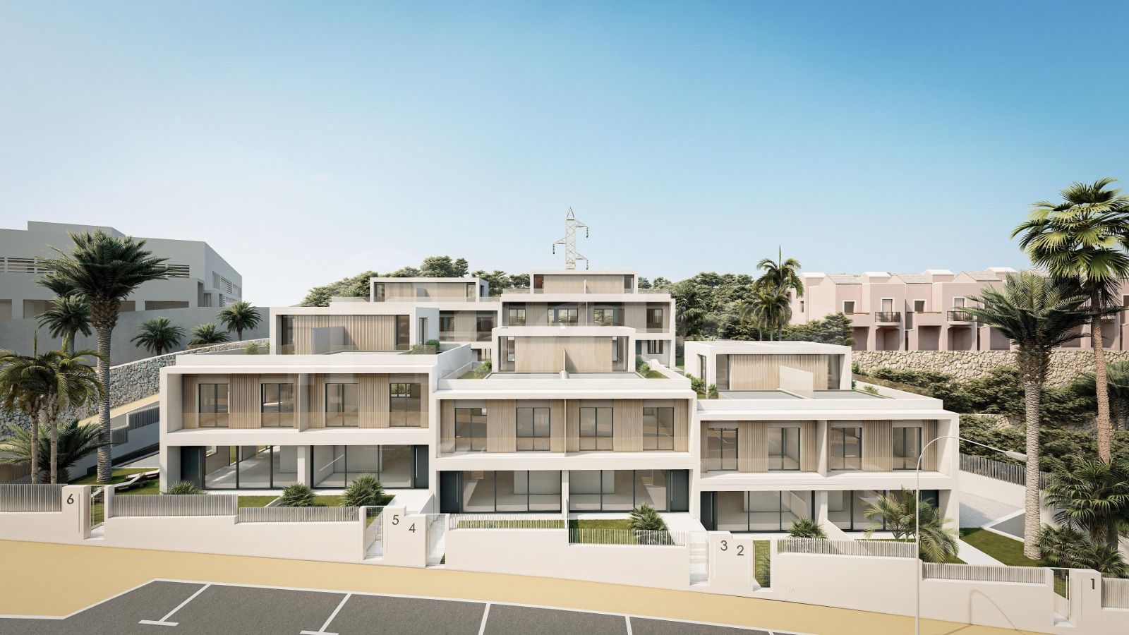 Alle Wohnungen haben eine Garage, einen Abstellraum, eine Veranda für das Auto, Klimaanlage warm und kalt und es wird auch einen Gemeinschaftspool geben. Der Bau hat begonnen.