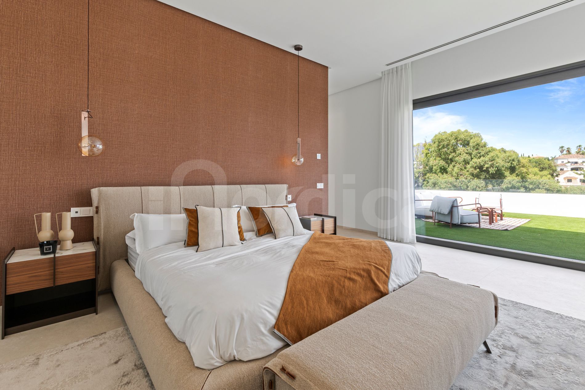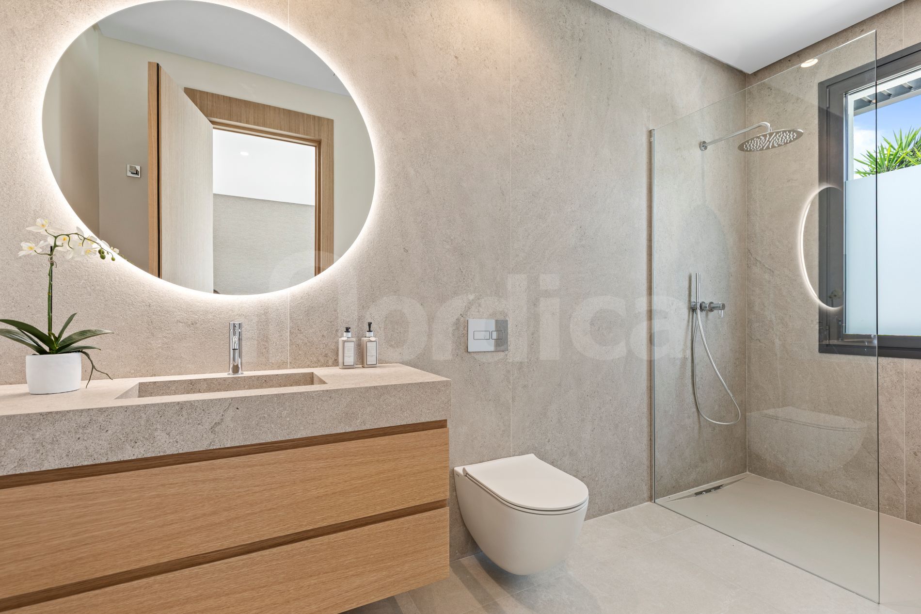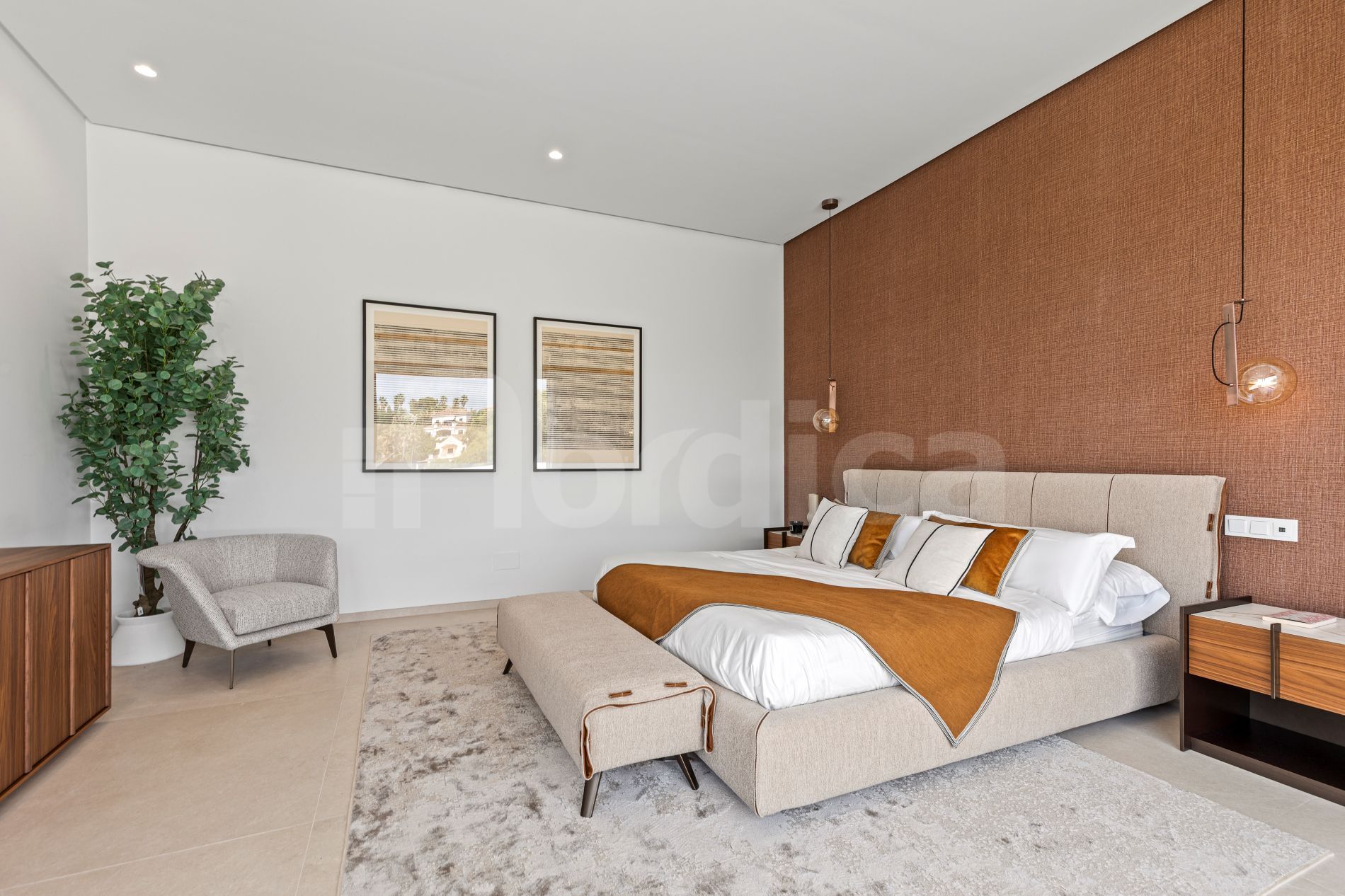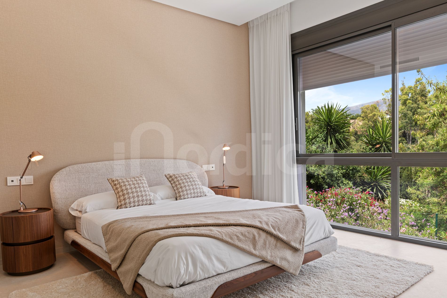 Diese neu errichtete, nach Süden ausgerichtete Villa befindet sich in der begehrten Gegend Fuentes del Espanto im Raum Benahavís und bietet eine perfekte Balance zwischen moderner Architektur und privilegierter Naturlage. Umgeben von viel Grün und einer ruhigen Umgebung liegt die Immobilie nur fünf Minuten von San Pedro de Alcántara und etwa zehn Minuten von Marbella und Puerto Banús entfernt. Sie genießen Privatsphäre und sind dennoch in unmittelbarer Nähe zu allen wichtigen Dienstleistungen, Stränden und Freizeitmöglichkeiten.