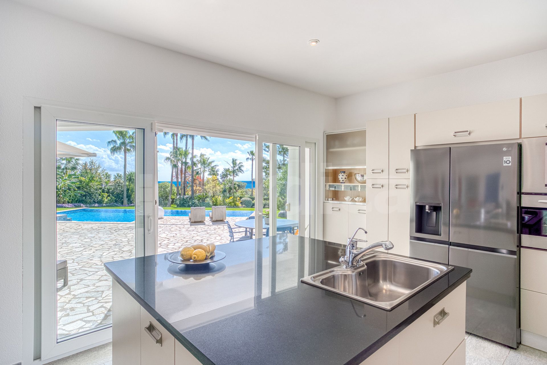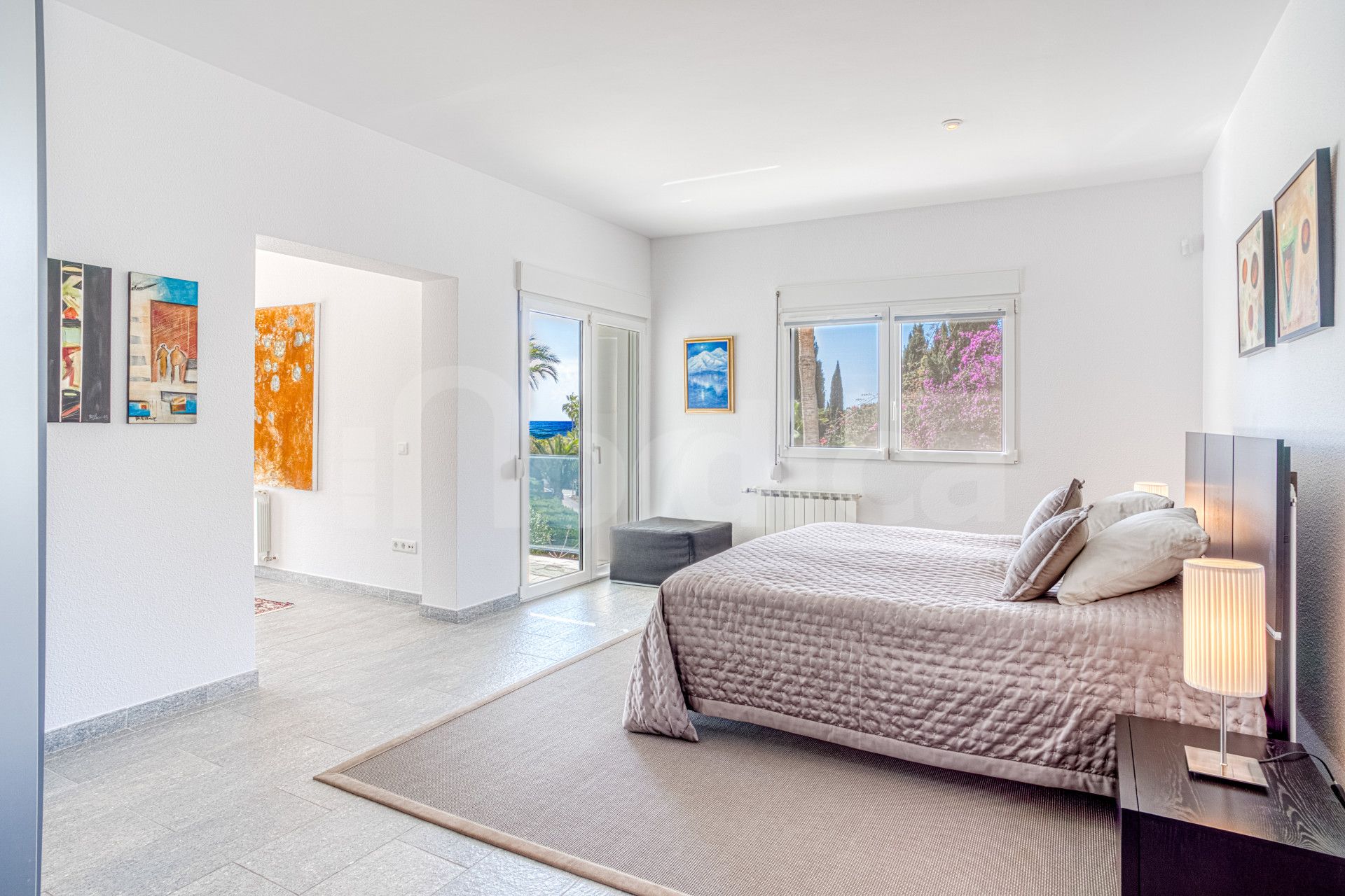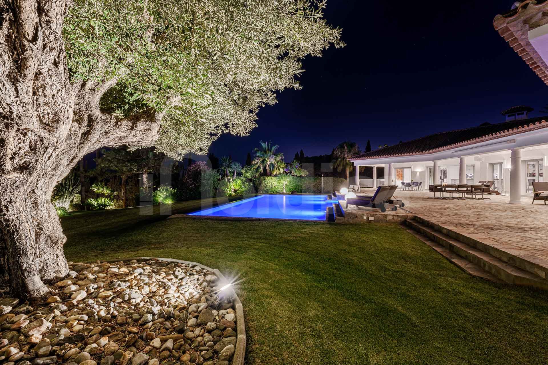Es gibt ein unabhängiges Studio-Apartment auf der unteren Ebene, das zusätzlichen Wohnraum bietet. Darüber hinaus gibt es einen großen Multifunktionsraum mit einem Gäste-WC, der flexibel in ein Spielzimmer, Fitnessstudio oder Büro umgewandelt werden kann, das auf Ihre Lebensstilbedürfnisse zugeschnitten ist. Treten Sie nach draußen, um atemberaubende Meer- und Bergblicke von einem spektakulären Landschaftsgarten zu erleben, der von einem majestätischen Olivenbaum und einem beeindruckenden, großen beheizten Pool geprägt ist.