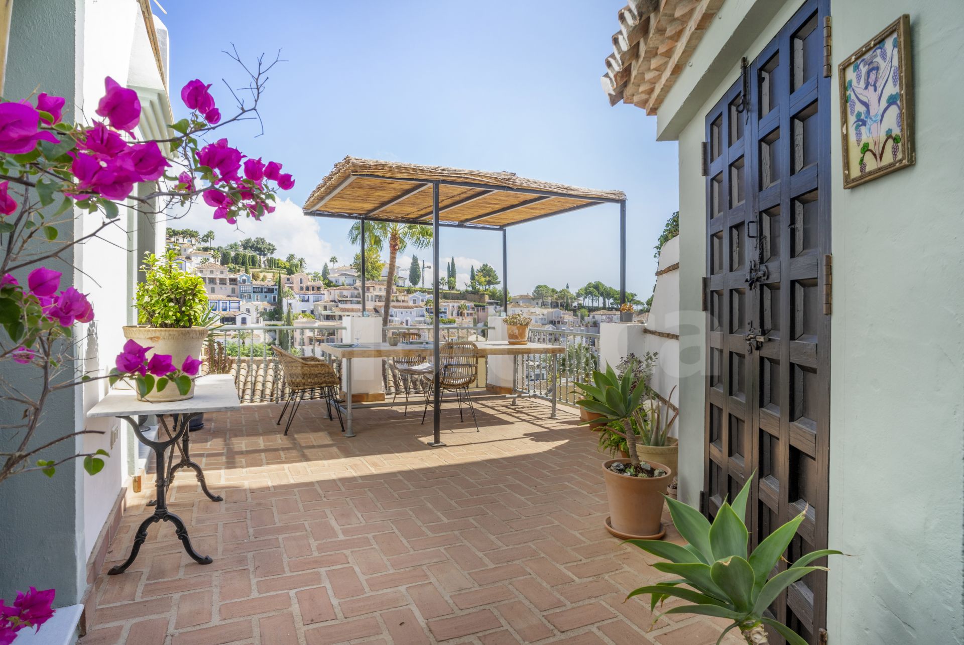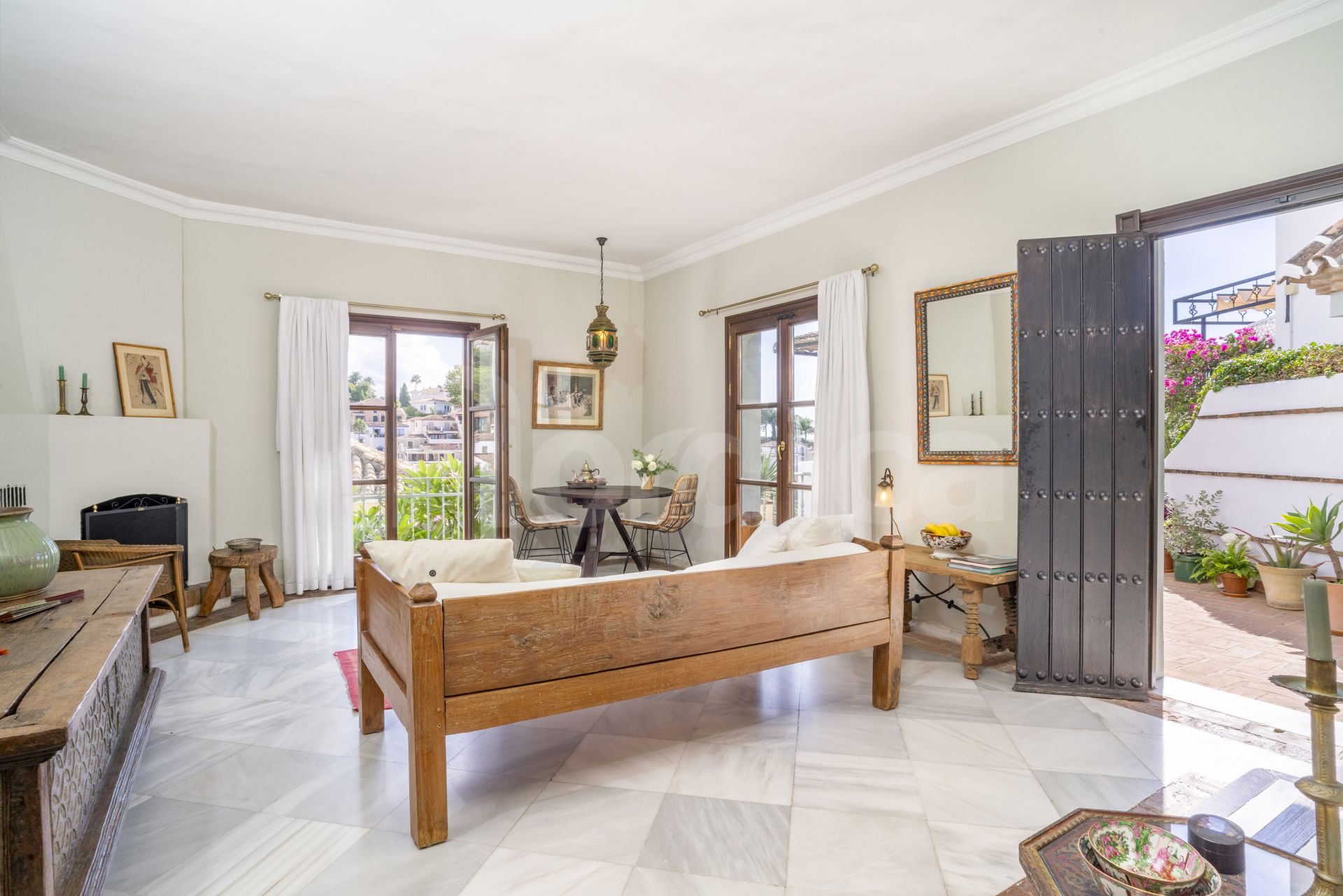 Dieses reizvoll unkonventionelle und gemütliche Stadthaus thront an der Spitze des malerischen Dorfes La Heredia und besticht durch Charme, Charakter und einen atemberaubenden Ausblick. Über drei Ebenen verteilt, bietet es einen ruhigen Rückzugsort ohne Straßenlärm – nur die beruhigende Atmosphäre einer der schönsten Urbanisationen auf den Hügeln oberhalb von Marbella.