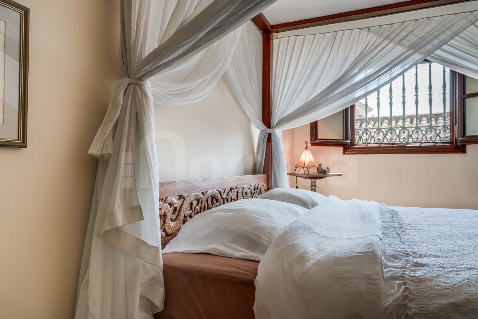 Im Obergeschoss bietet die Master-Suite einen romantischen Rückzugsort mit einem schönen Himmelbett, einem charaktervollen Badezimmer mit Badewanne und einer privaten Terrasse, die zu den besten Aussichtspunkten in La Heredia zählt – ideal für den Morgenkaffee oder ein Glas Wein bei Sonnenuntergang.