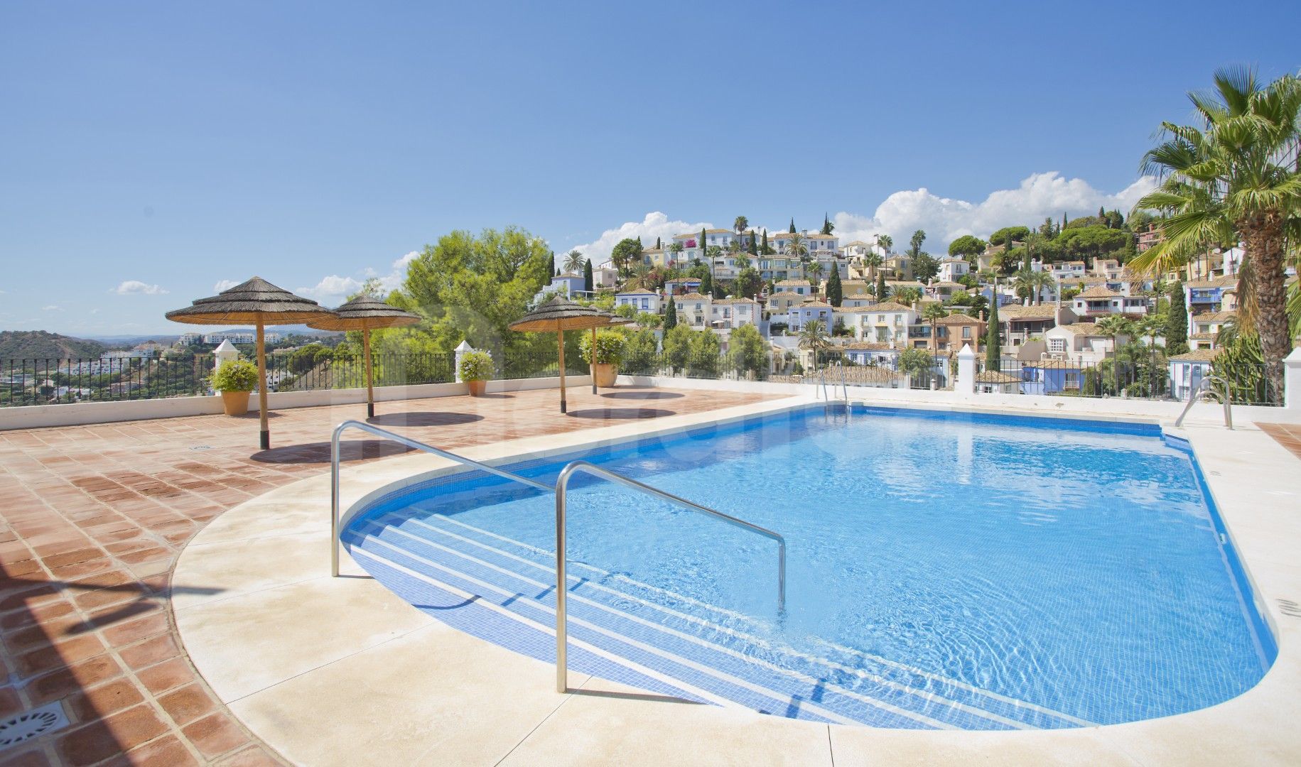 La Heredia zählt zu den begehrtesten, gesicherten Wohnanlagen auf den Hügeln von Marbella, oberhalb von San Pedro de Alcántara und nur eine kurze Fahrt von Marbella und Puerto Banús entfernt. Bekannt für seine lebendige, andalusische Architektur, Kopfsteinpflasterstraßen und das charmante Dorfambiente, bietet La Heredia 24-Stunden-Sicherheitsdienst, eine lokale Bäckerei, Metzgerei, Bars und Restaurants – alles fußläufig erreichbar. Die Gemeinschaft profitiert zudem von zwei Gemeinschaftspools (einer davon beheizt), wunderschön angelegten Gärten und einem atemberaubenden Blick auf das Mittelmeer, Gibraltar und die nordafrikanische Küste. Ihr einzigartiger Charme und das ausgeprägte Gemeinschaftsgefühl machen La Heredia zur ersten Wahl für anspruchsvolle Käufer, die Authentizität, Sicherheit und Ruhe im Raum Marbella suchen.