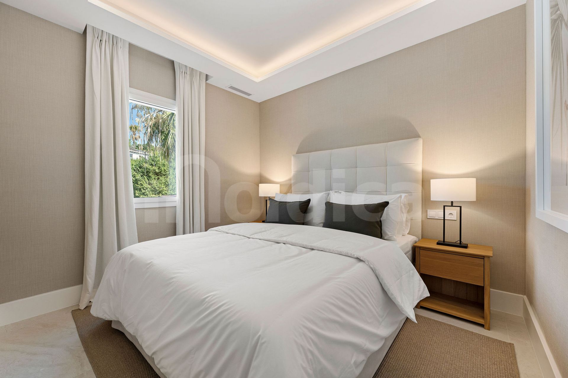 Im ersten Stock befindet sich eine beeindruckende Master-Suite mit großzügigem begehbarem Kleiderschrank, luxuriösem Bad mit begehbarer Dusche und Badewanne sowie eine große private Terrasse mit atemberaubendem Meerblick. Auf dieser Etage gibt es außerdem ein Gästezimmer mit eigenem Bad sowie ein weiteres Gästezimmer, das von einem separaten Bad bedient wird.