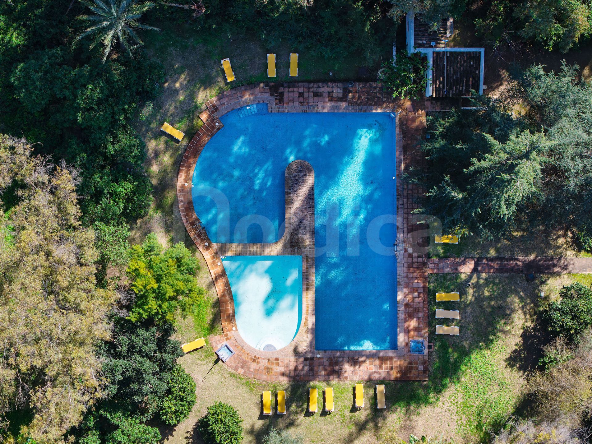 - Blick aufs Schwimmbad