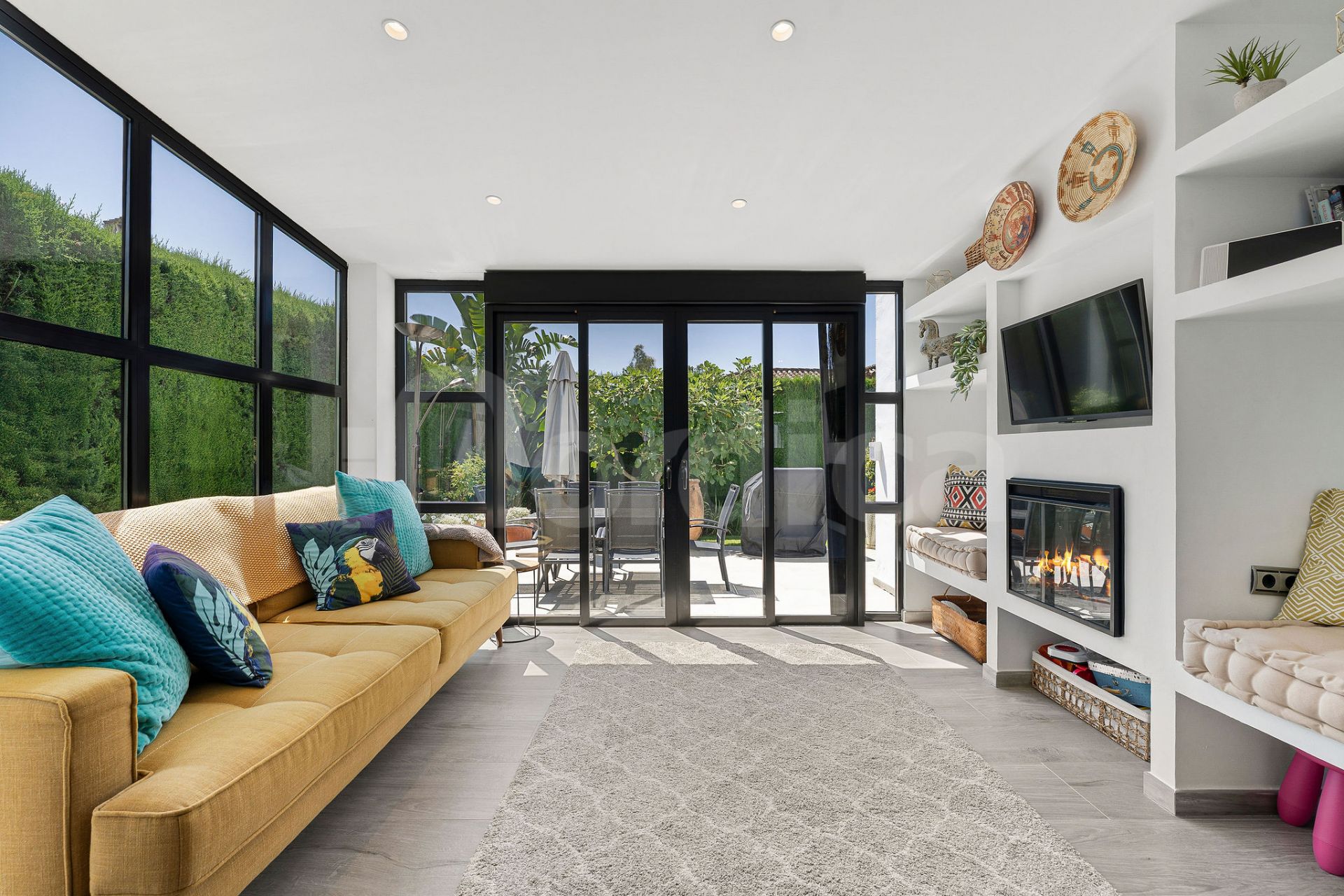 Eines der charmantesten Merkmale der Villa ist ein wunderschöner, lichtdurchfluteter Raum neben der Küche – voller Fenster und Charakter, ausgestattet mit einem Kamin und direktem Zugang zum Garten. Dieser vielseitige Raum kann als gemütliches Lesezimmer, TV-Lounge, Spielzimmer für Kinder oder sogar als zusätzliches Schlafzimmer genutzt werden.