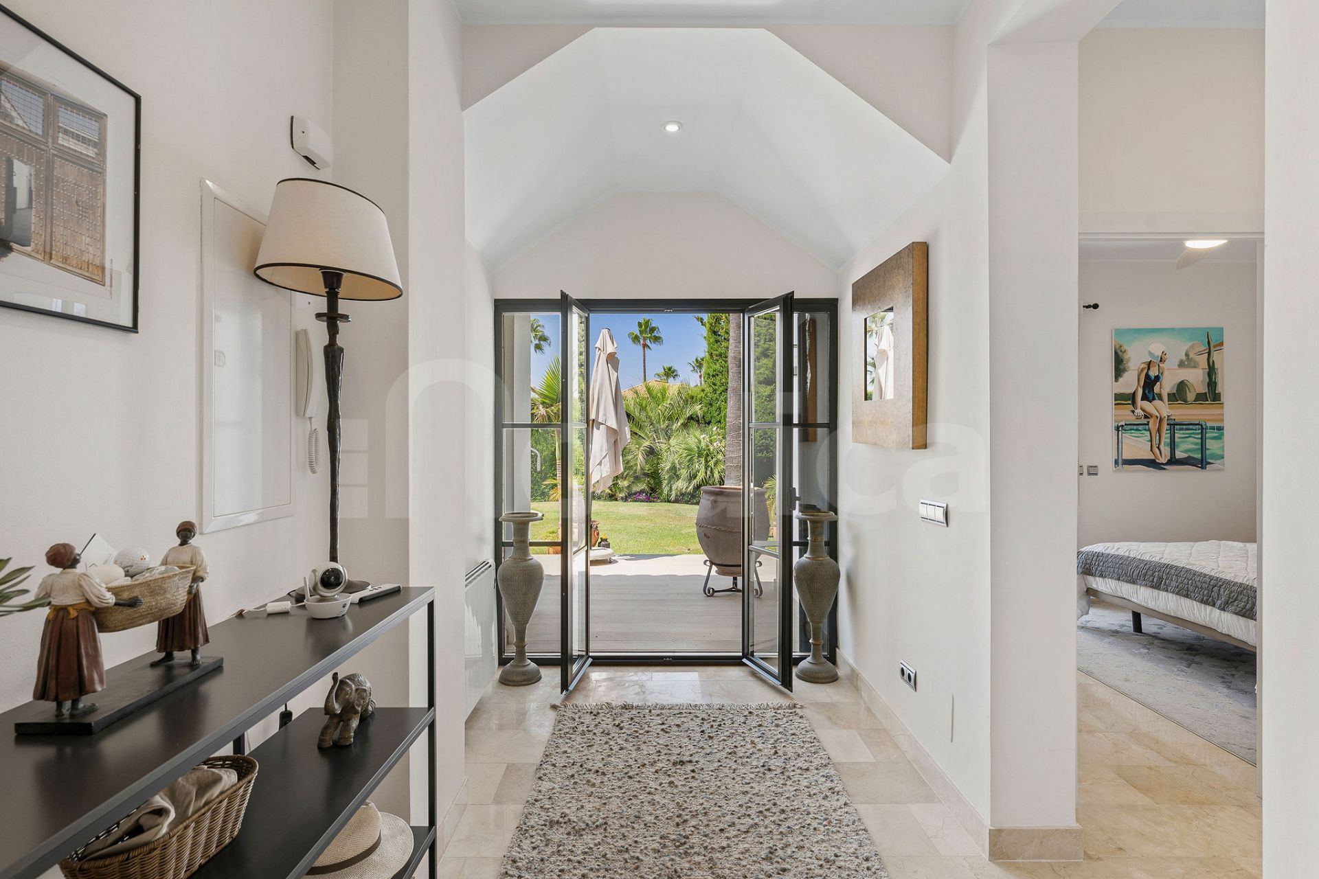 Diese charmante Villa befindet sich in einer ruhigen Sackgasse innerhalb der exklusiven, gesicherten Wohnanlage des Marbella Country Club, einer der begehrtesten Wohngegenden von Nueva Andalucía. Das Anwesen liegt auf einem ebenen, privaten und nach Süden ausgerichteten Grundstück und bietet eine perfekte Kombination aus Komfort, Eleganz und Funktionalität – ideal sowohl für das ganzjährige Wohnen als auch für den Urlaub.