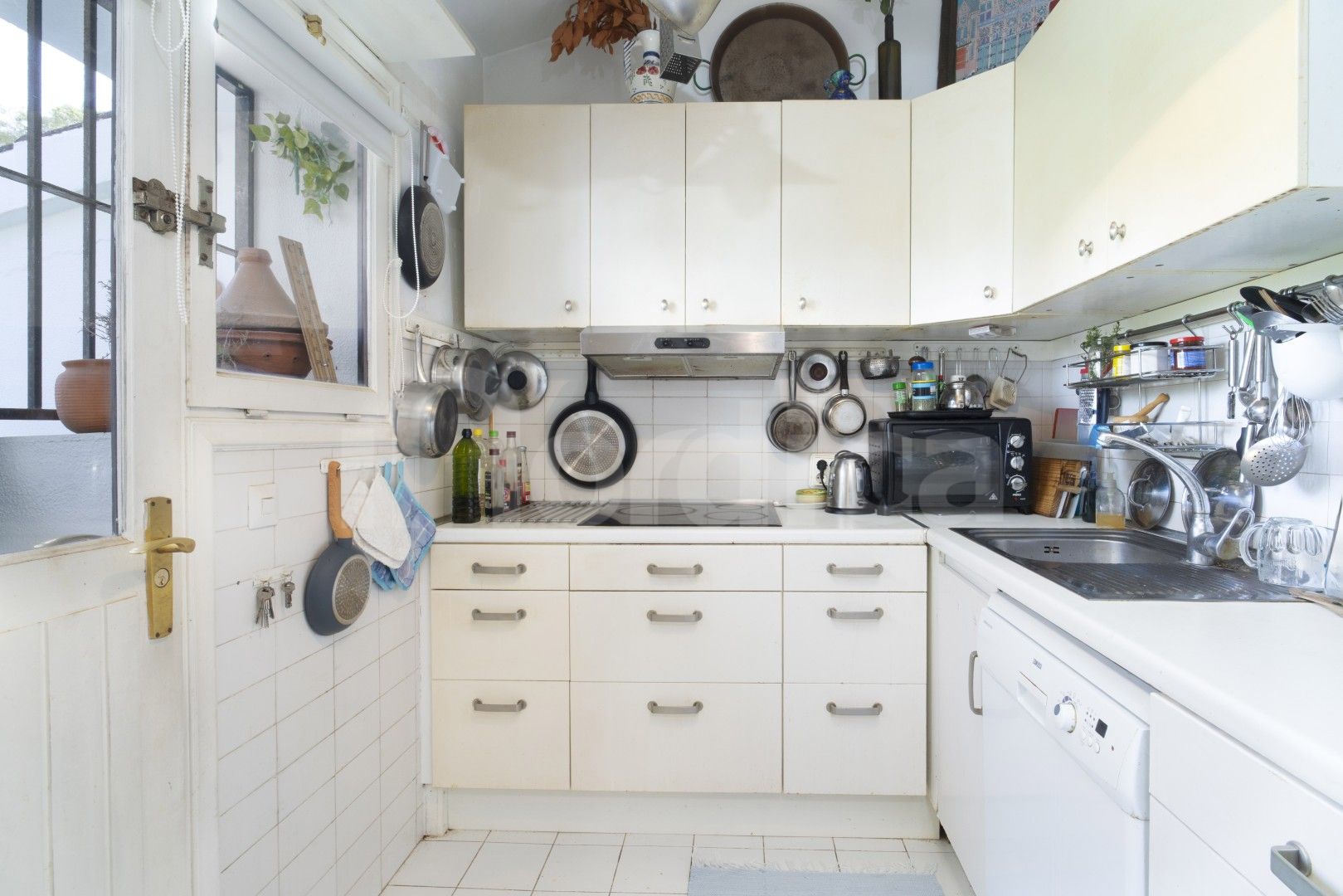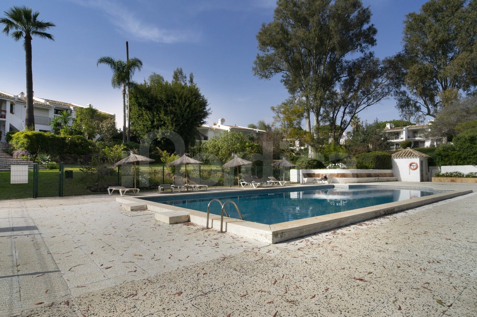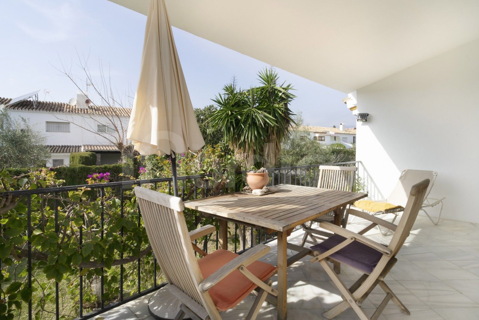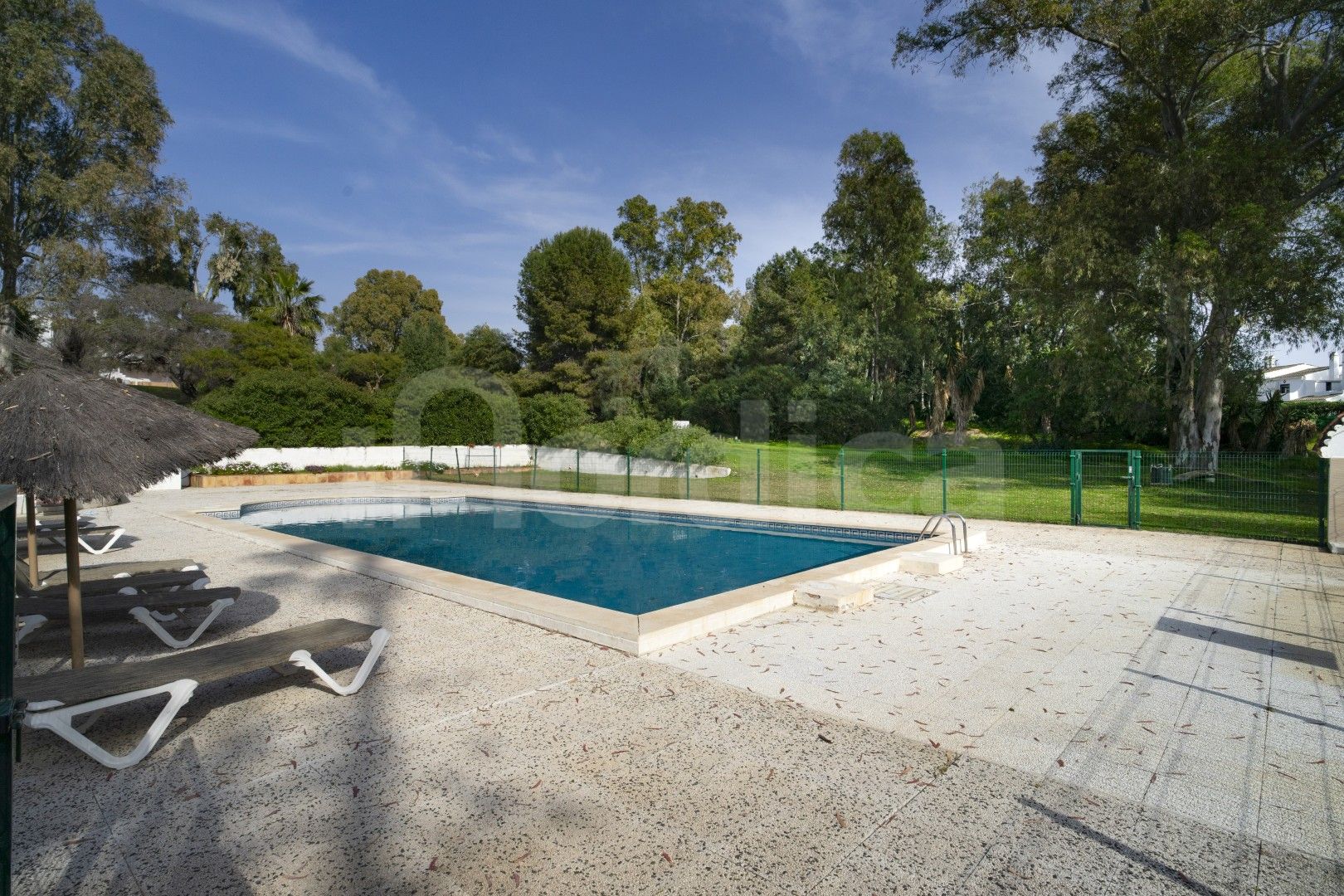 Die Wohnung befindet sich in einer gepflegten Urbanisation mit Gemeinschaftsgarten und Swimmingpool und zeichnet sich durch ihre hellen Innenräume und attraktiven Ausblicke aus. Die voll ausgestattete Küche ist halboffen und über eine praktische Durchreiche mit dem Wohnbereich verbunden, was einen einladenden und funktionalen Raum für den Alltag und zum Unterhalten schafft. Von der Küche aus gelangt man auf eine private Terrasse mit angenehmem Blick auf die Gemeinschaftsgärten und den Pool.