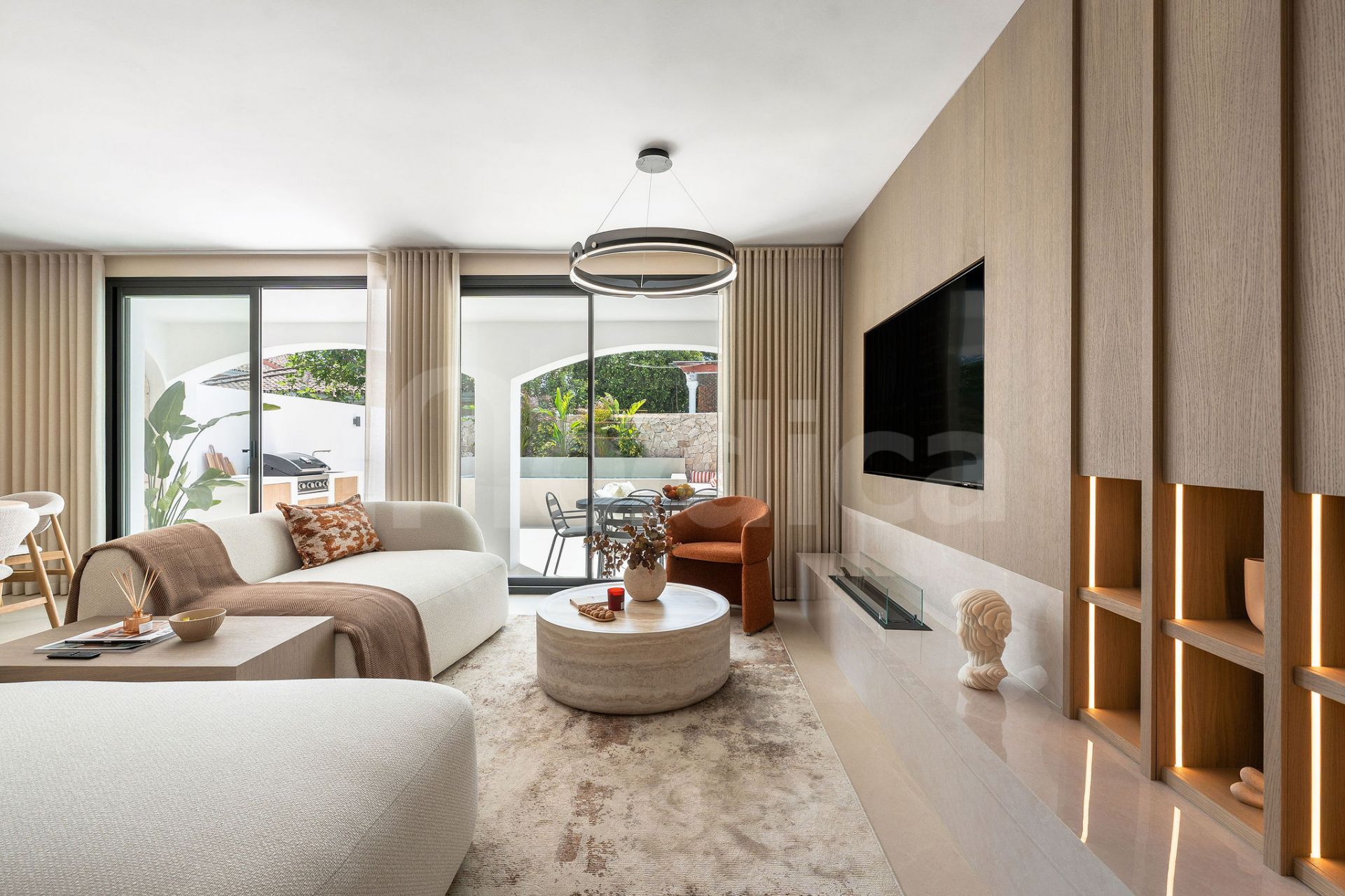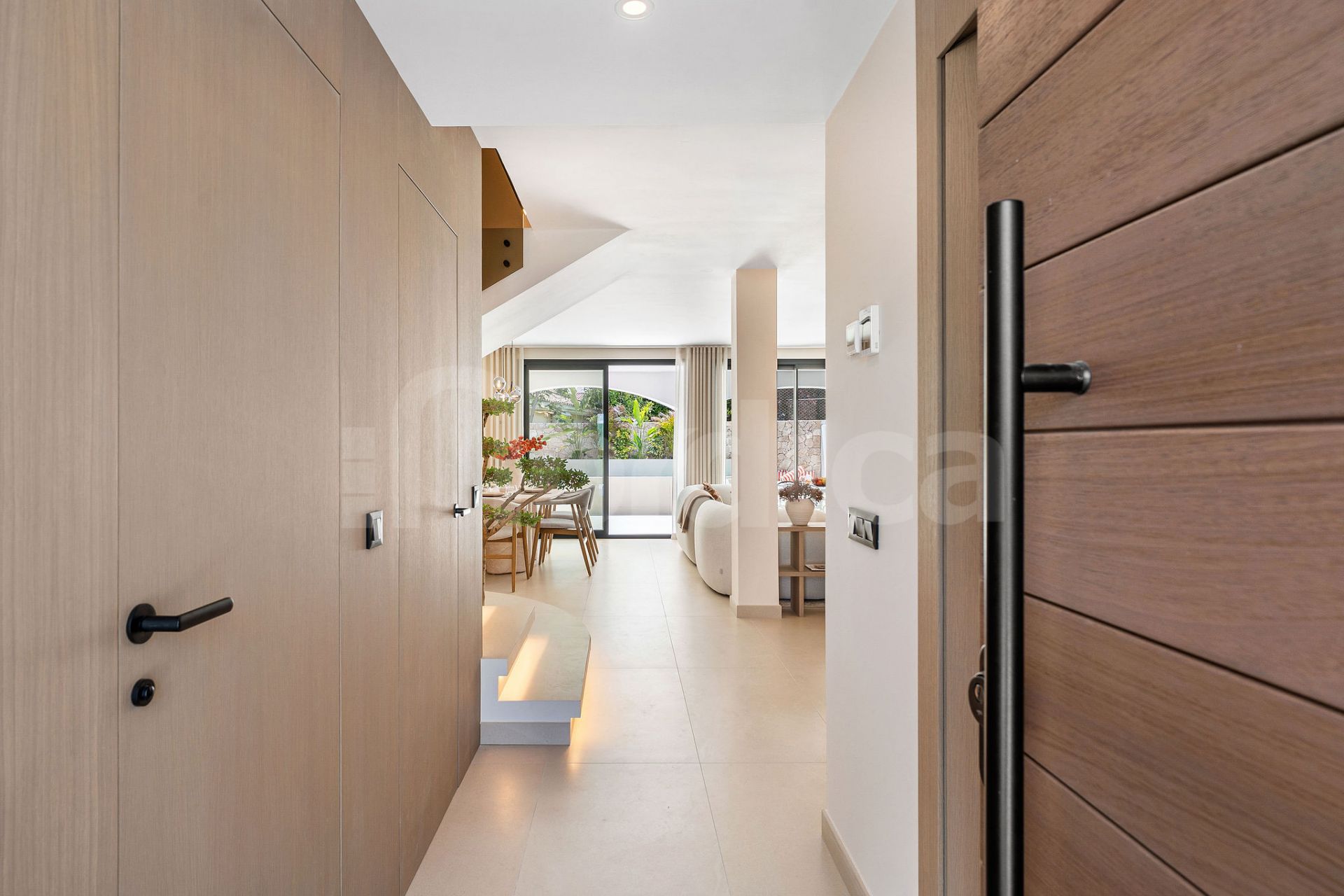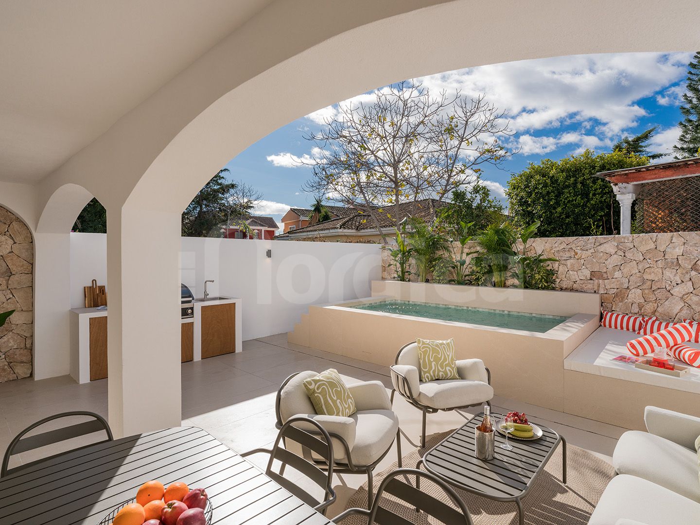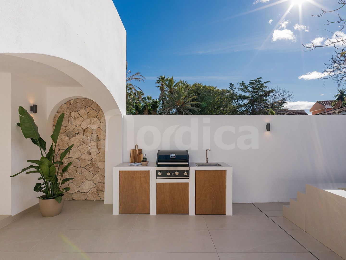 Das vollständig renovierte Stadthaus liegt auf einem privilegierten Eckgrundstück und profitiert von außergewöhnlicher Privatsphäre und viel natürlichem Licht. Das Haus besticht durch ein offenes Raumkonzept, das mit hochwertigen Materialien und sorgfältig ausgewählten Möbeln gestaltet wurde und moderne Eleganz mit Komfort verbindet. Ausgestattet mit Klimaanlage (warm/kalt) und Fußbodenheizung im gesamten Haus ist ganzjähriger Wohnkomfort garantiert.
