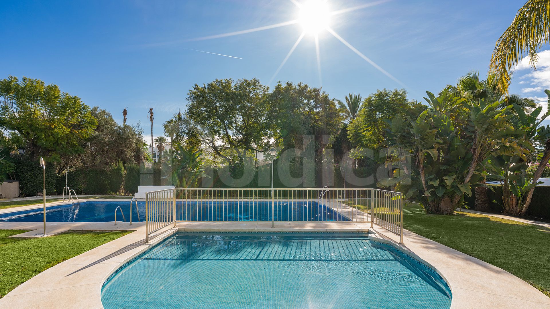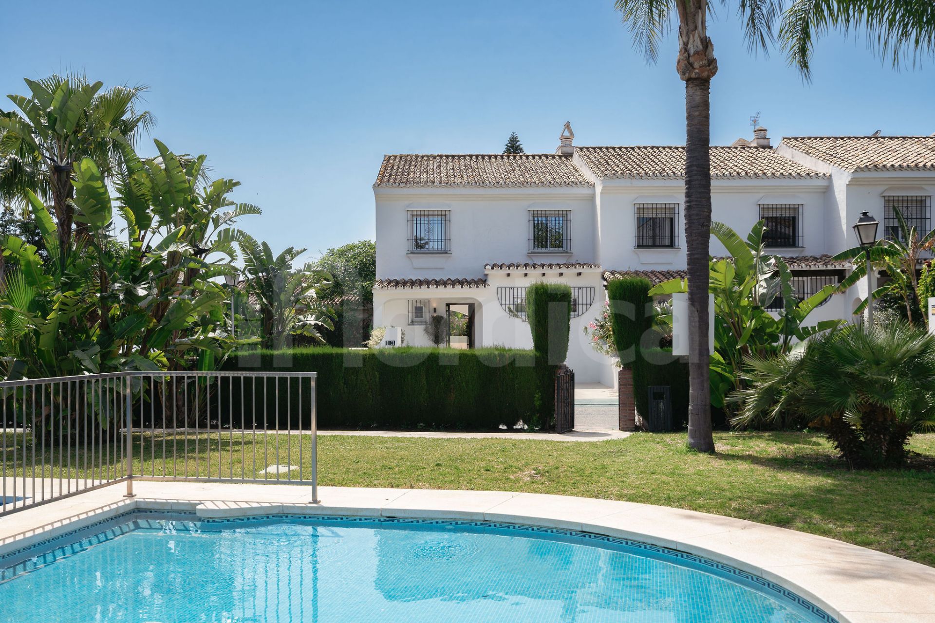 Entdecken Sie ein elegantes Stadthaus in einer geschlossenen Wohnanlage im begehrten Strandbereich von San Pedro in Marbella. Diese renommierte Wohnanlage befindet sich nur wenige Gehminuten von Cafés, Supermärkten, internationalen Schulen und lokalen Annehmlichkeiten entfernt und ist somit die ideale Wahl sowohl für den dauerhaften Wohnsitz als auch als luxuriöses Feriendomizil. Die exklusive Anlage bietet wunderschön angelegte Gärten, einen großen Gemeinschaftspool, einen Padelplatz und private Parkplätze, was eine ruhige und sichere Umgebung schafft.