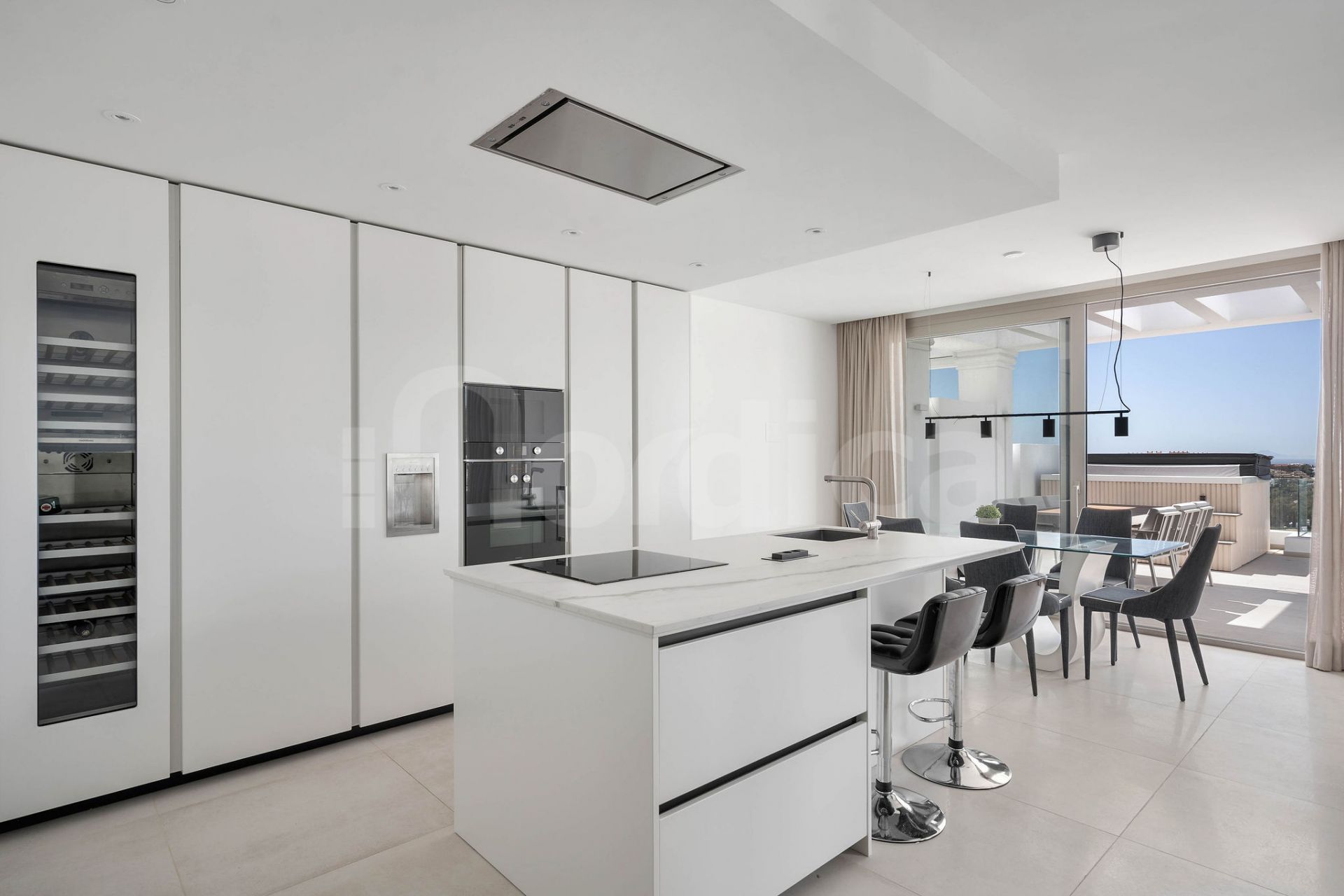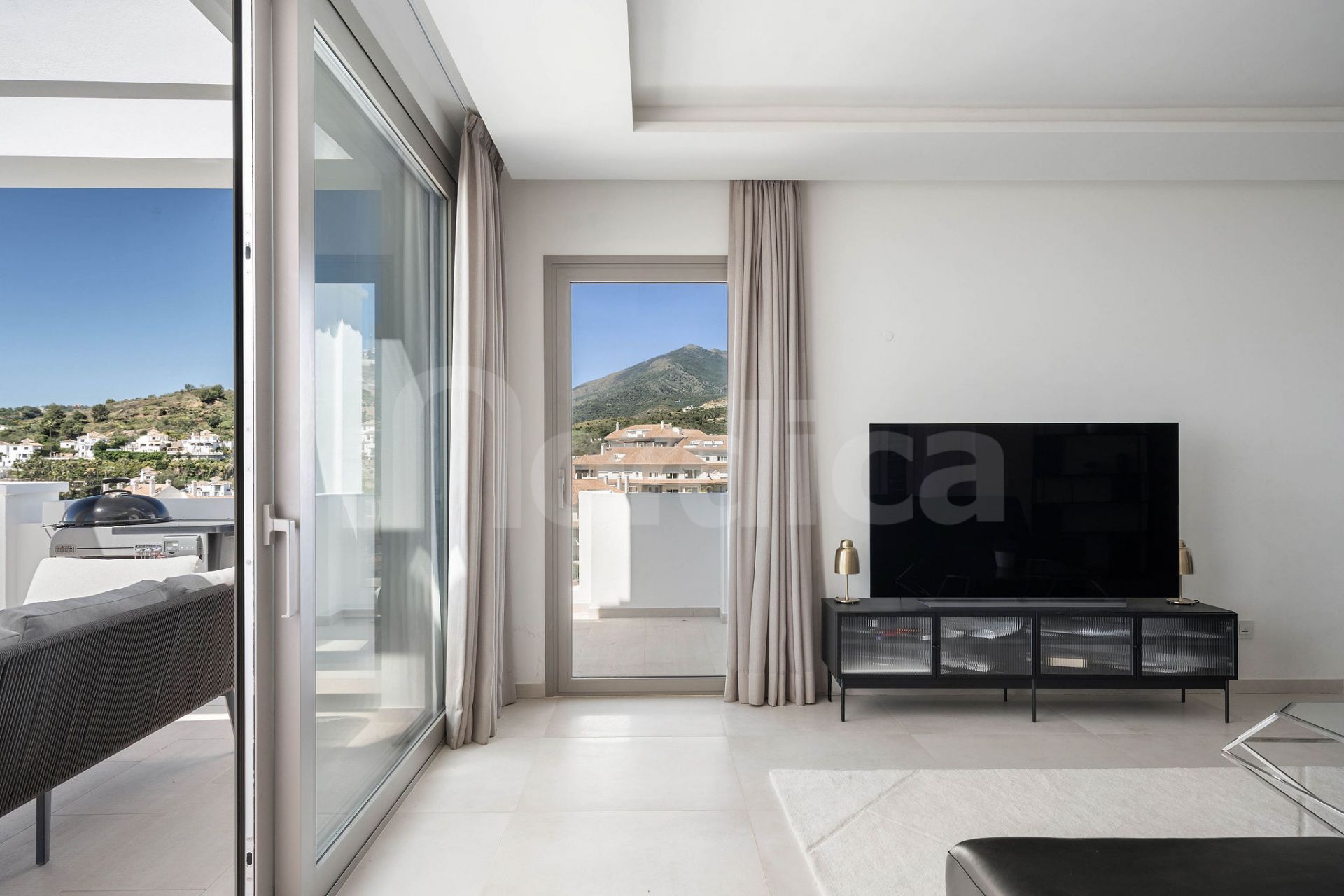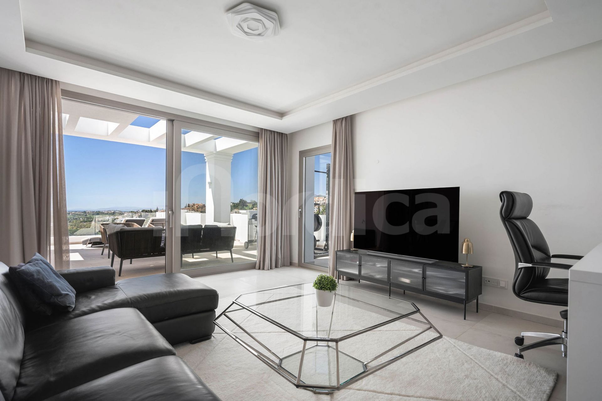 This exceptional apartment perfectly blends elegance, comfort, and contemporary design. The spacious open-plan living and dining area flows seamlessly onto an expansive south-west facing terrace, creating an ideal setting for both entertaining and unwinding. From here, enjoy breathtaking panoramic sea views stretching to Gibraltar, enhanced by a private drop jacuzzi for ultimate relaxation.