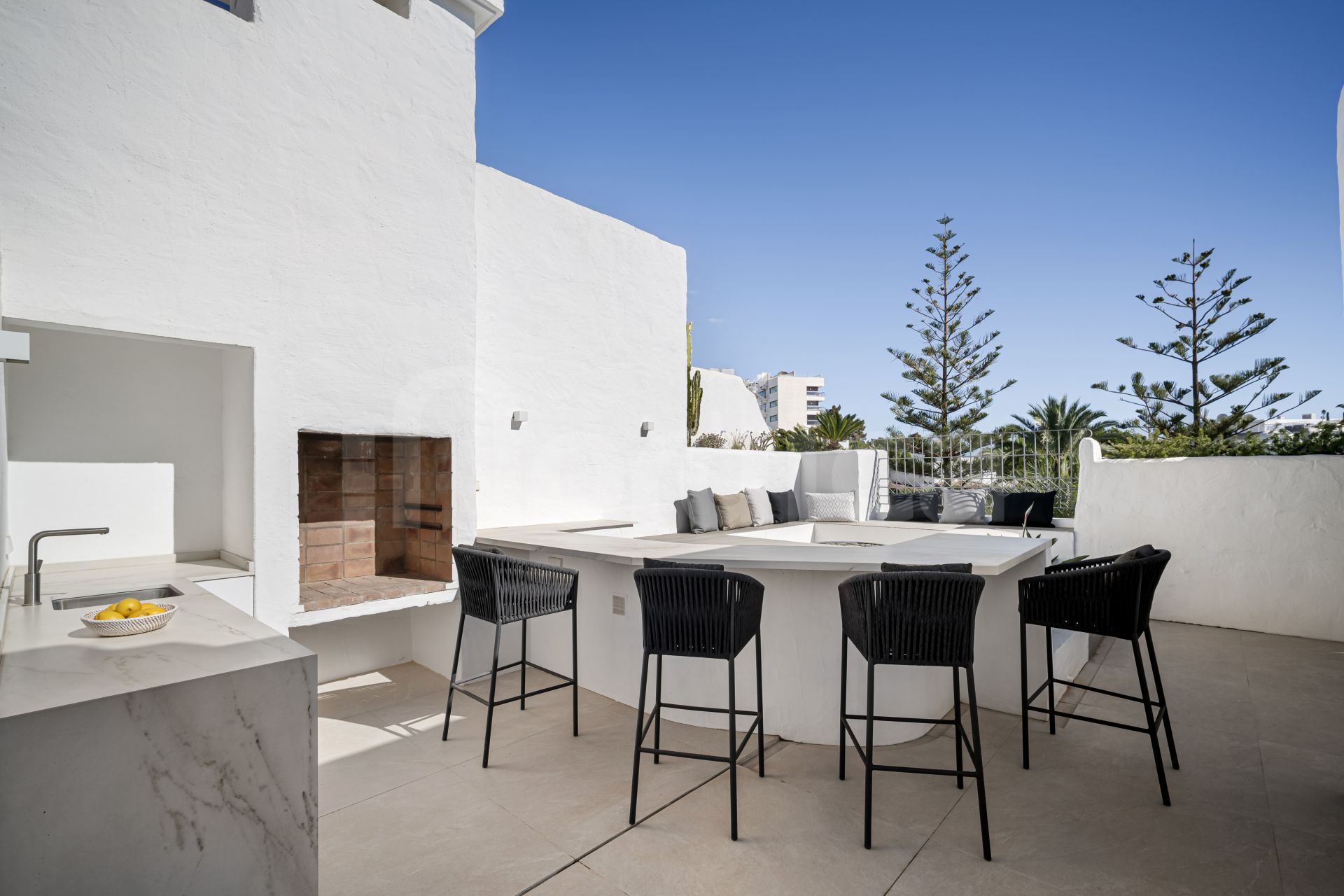 Recently renovated to a high standard and sold fully furnished, the penthouse offers a contemporary design with premium finishes throughout. Alhambra del Mar provides concierge service, nighttime security, lush gardens, and direct beach access, all within minutes of Marbella’s most exclusive destinations.