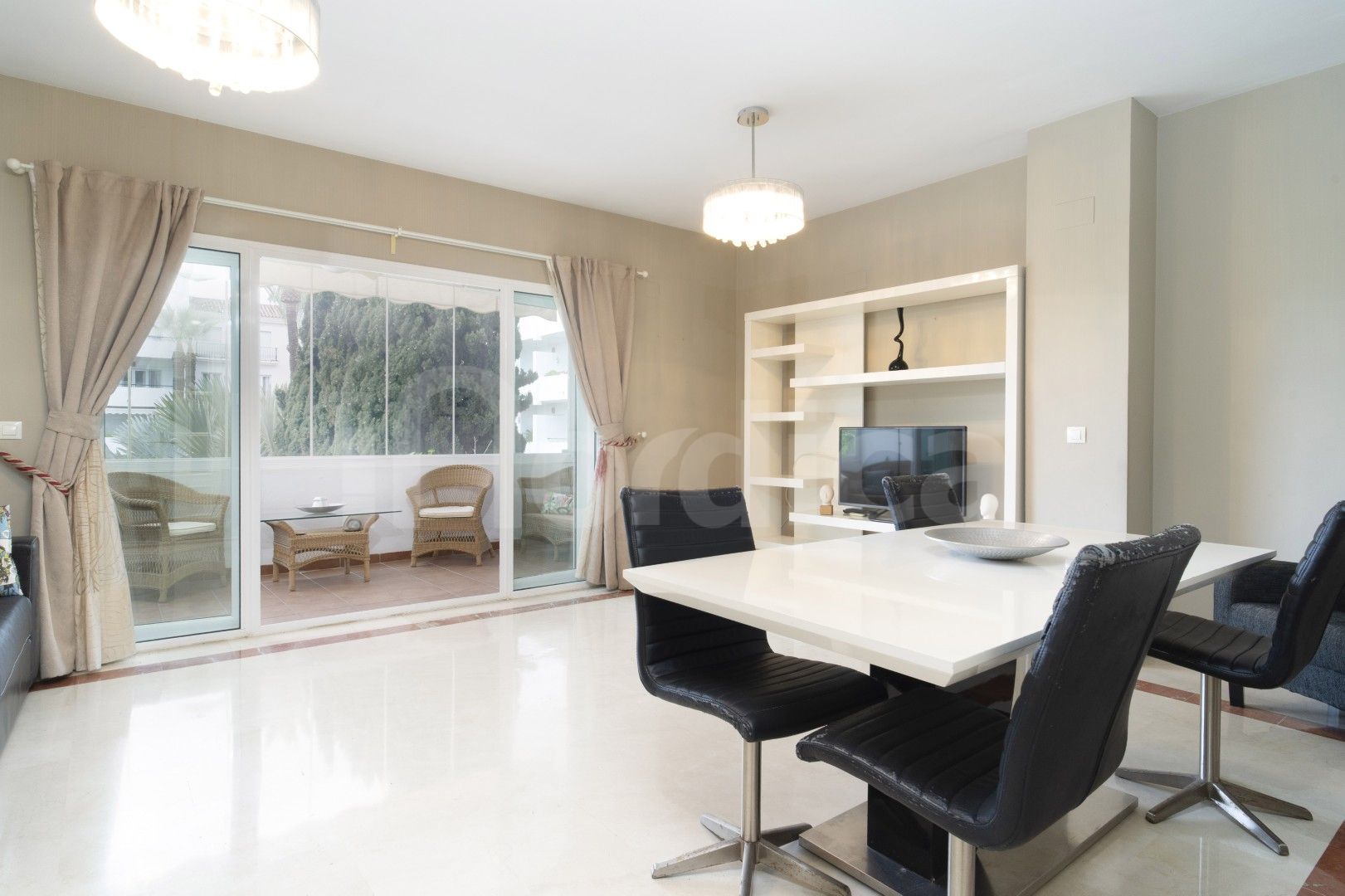 Set within the well-established urbanisation of Mirador del Rodeo, this elegant apartment enjoys a prime location in the heart of Nueva Andalucía, one of the most desirable residential areas of Marbella. Known for its excellent connectivity and proximity to Puerto Banús, the urbanisation offers a perfect balance between tranquillity and vibrant coastal living, all within a short walk to the beach, shops, and restaurants.