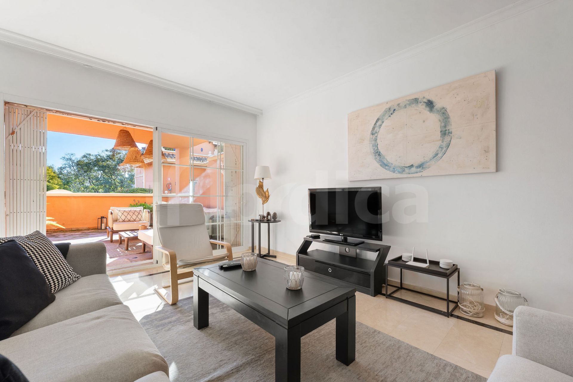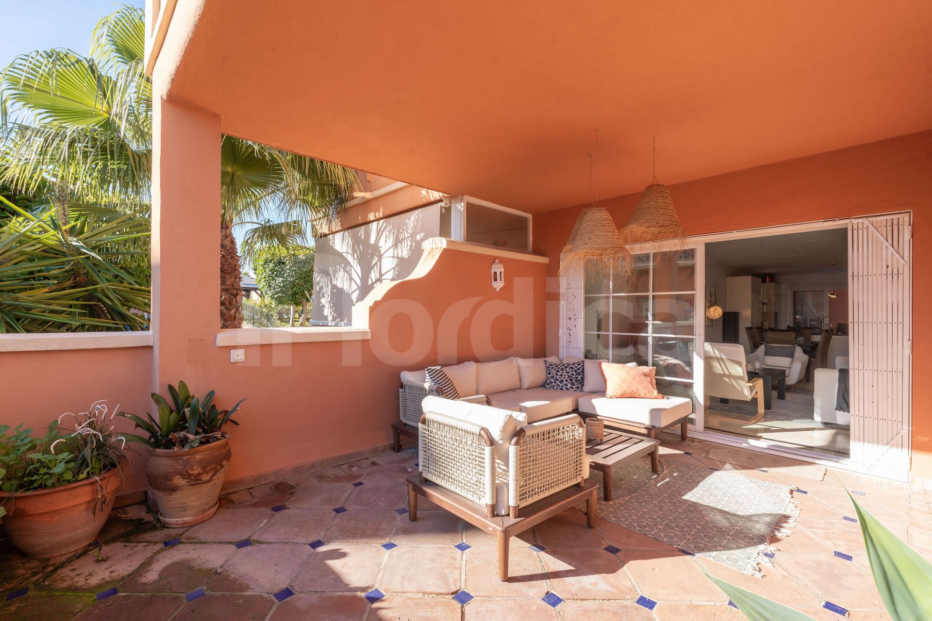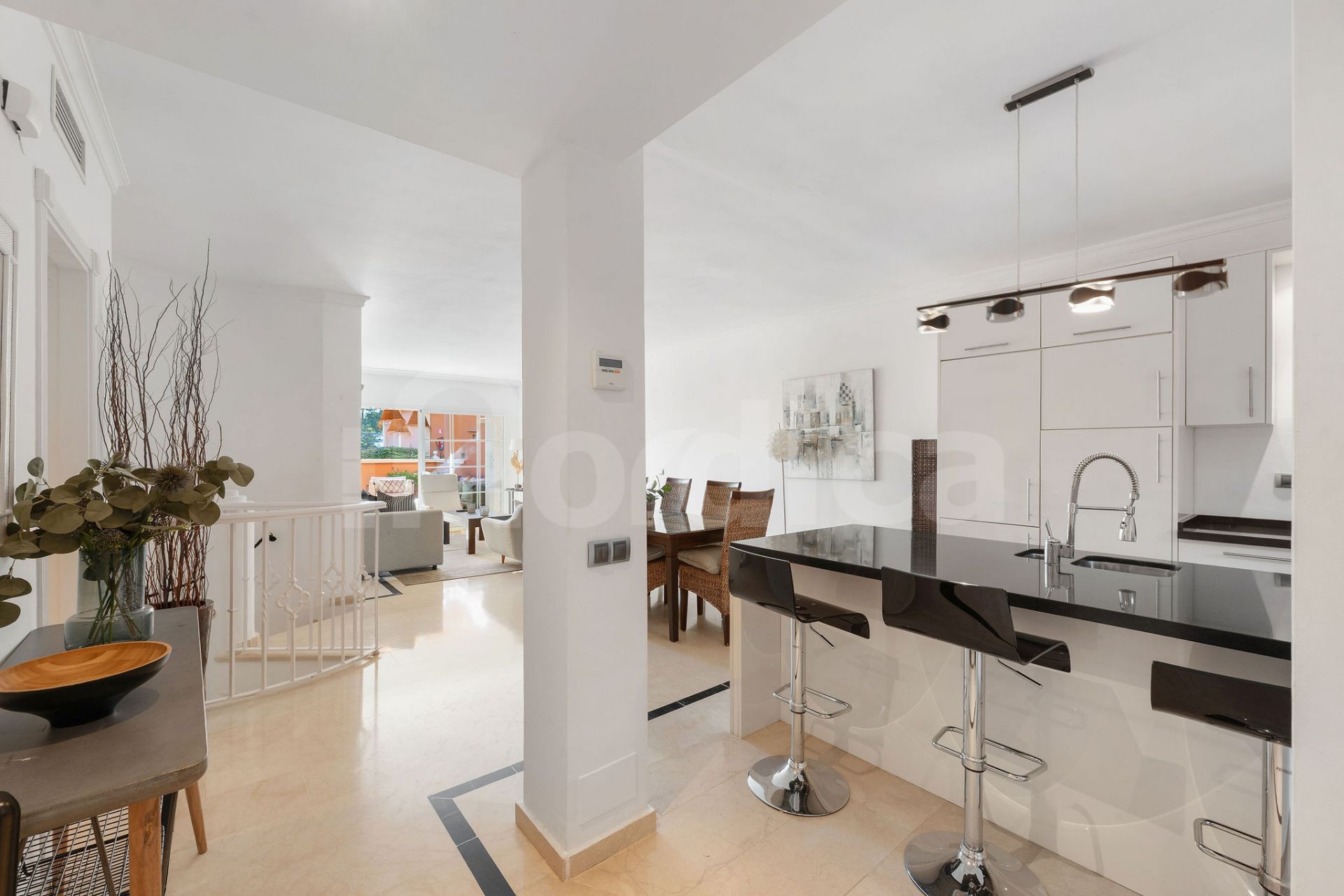 This exceptional 4 bedroom ground floor duplex apartment for sale is located in the highly desirable urbanisation of Andalucia Alta, at the entrance of Nueva Andalucia, one of the most sought-after residential areas in the Marbella area. The property forms part of a well-established and beautifully maintained community, featuring mature landscaped gardens, a children’s playground and an attractive communal swimming pool area. Andalucia Alta is particularly appealing to buyers due to its peaceful setting combined with a prime, walkable location close to all amenities, making it an excellent option for both permanent living and investment purposes.