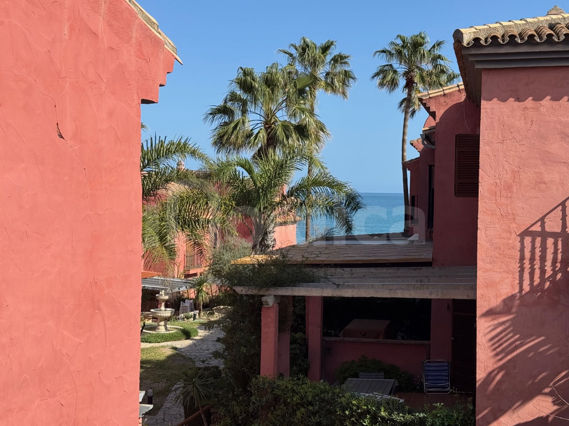This charming three-bedroom townhouse is ideally situated in the frontline beach community of Bahía Azul, just west of Estepona. South-facing, the property enjoys a pleasant garden outlook along with partial sea views from the upper floor.