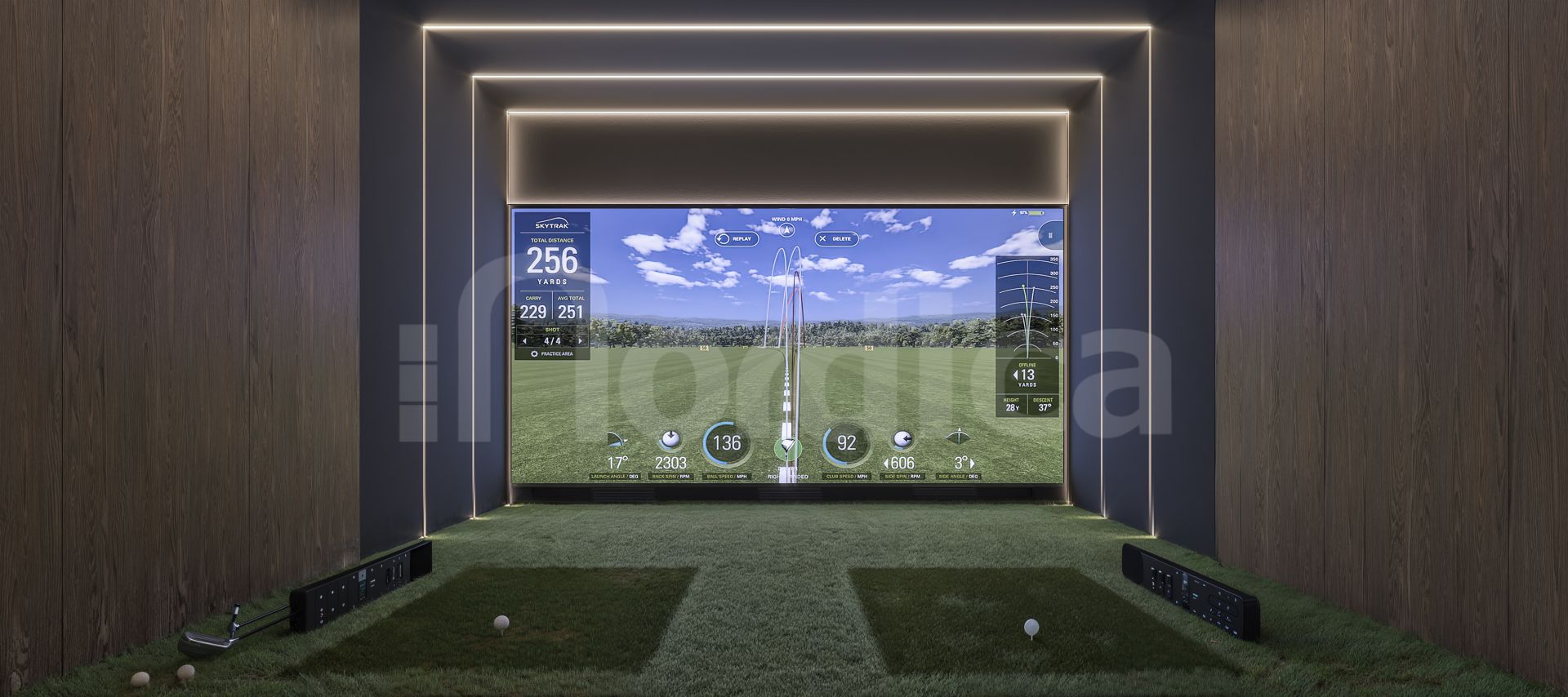 The development’s communal spaces focus on well-being and leisure, featuring an outdoor swimming pool with sea views, landscaped gardens, a fully equipped gym, a heated indoor pool and dedicated wellness areas. A private golf simulator adds a distinctive lifestyle feature for year-round use.
