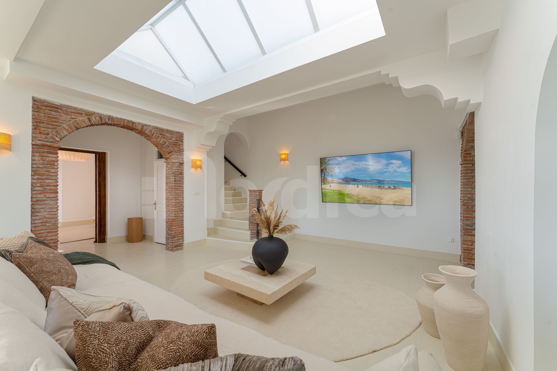 This outstanding property for sale in El Madroñal sits within the prestigious gated community of El Madroñal 2 in Benahavís, Málaga. The six-bedroom residence, complete with five ensuite bathrooms, combines classic Andalusian character with contemporary comfort. Originally built in 1988 and impeccably maintained, it offers 531 m² of living space on a generous elevated plot of 4,795 m².