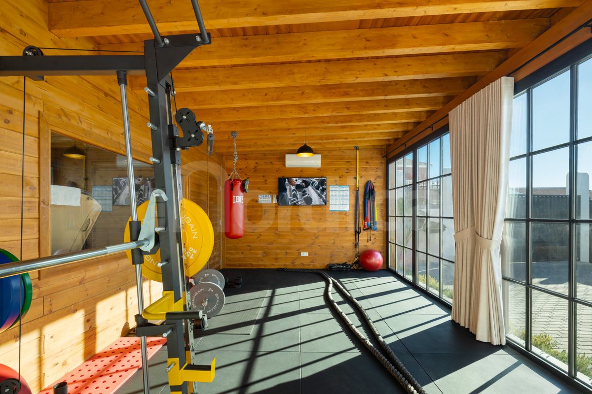 Other notable features include an air-conditioned gym, built-in wardrobes, a laundry room, storage areas, a solarium, double-glazed windows, an alarm system, Wi-Fi, and a private garage.