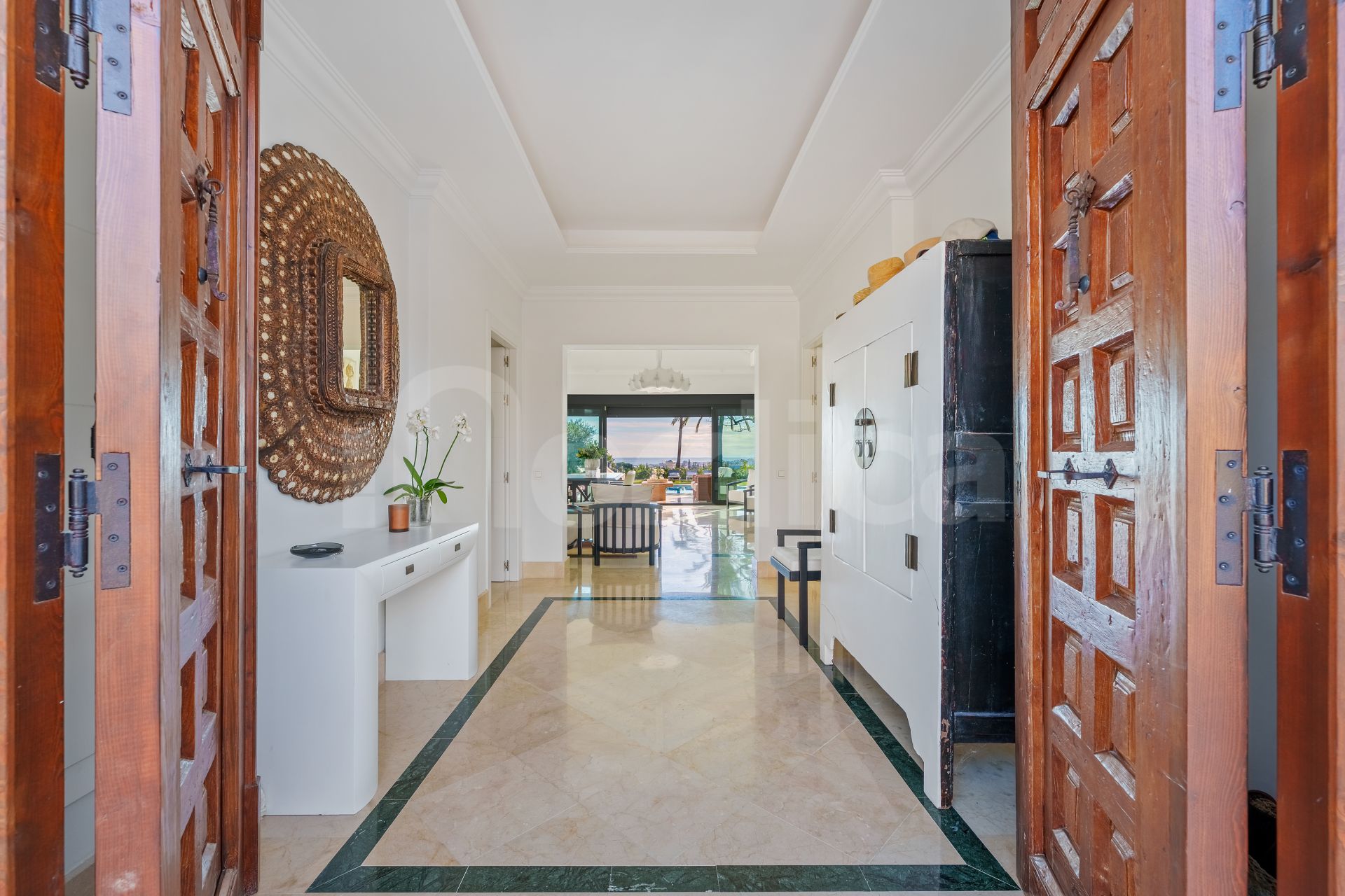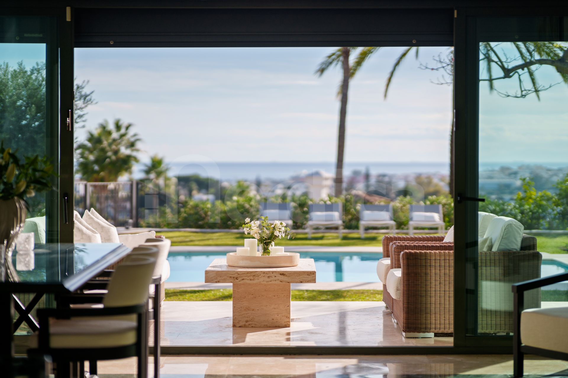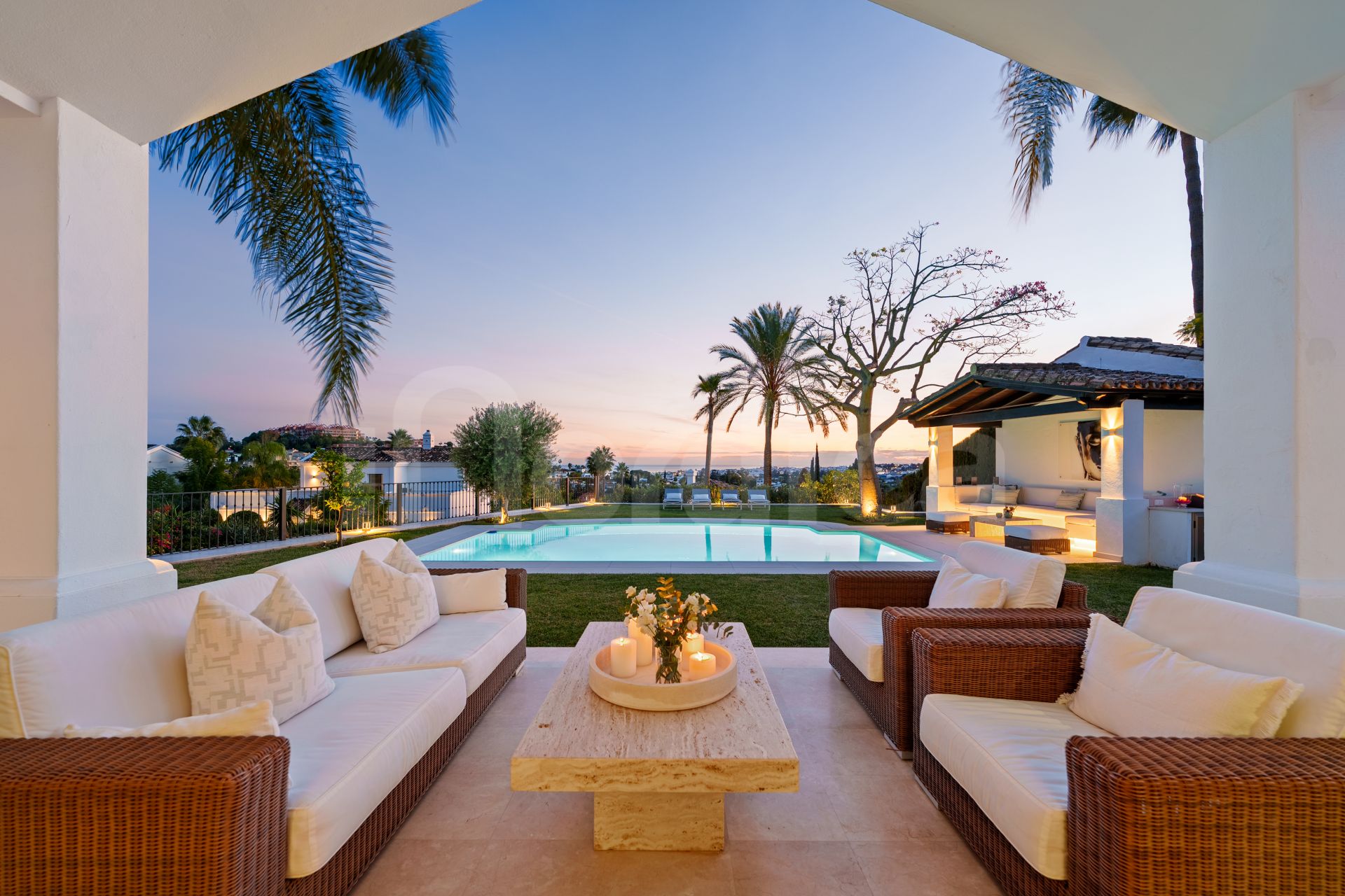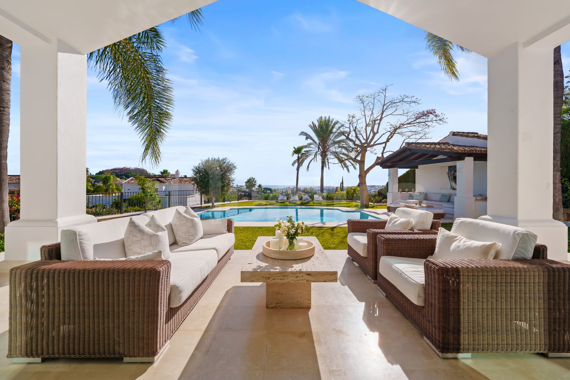 This villa is set within the prestigious residential enclave of Haza del Conde in Nueva Andalucía. Positioned on an elevated plot within a secure and discreet community, the property enjoys open views across the surrounding landscape and the Mediterranean. The setting offers a strong sense of privacy while remaining closely connected to Marbella’s established residential infrastructure.