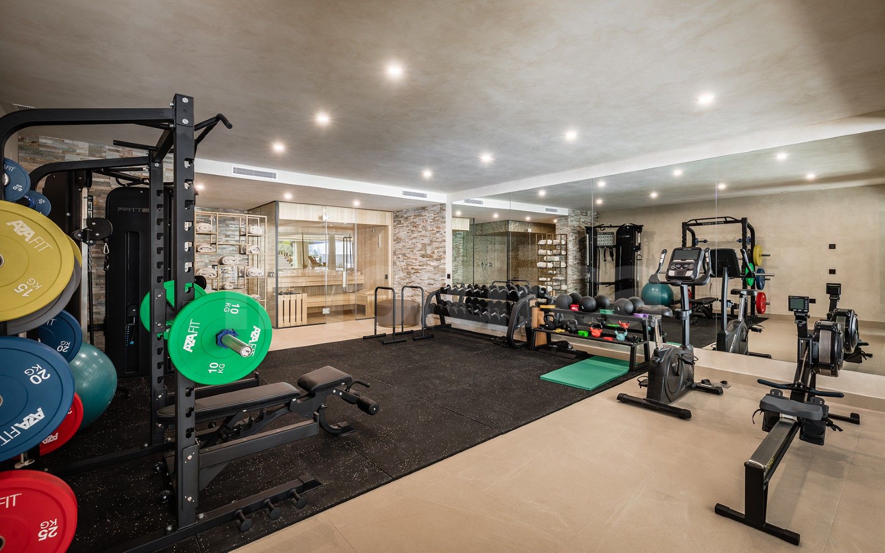 The property also includes a private wellness area with sauna and steam room, a games room, and a private elevator that connects the different levels of the home for maximum convenience. The rooftop solarium offers an inviting setting for relaxation, featuring an outdoor lounge area, BBQ, and shower, all complemented by beautiful open views.