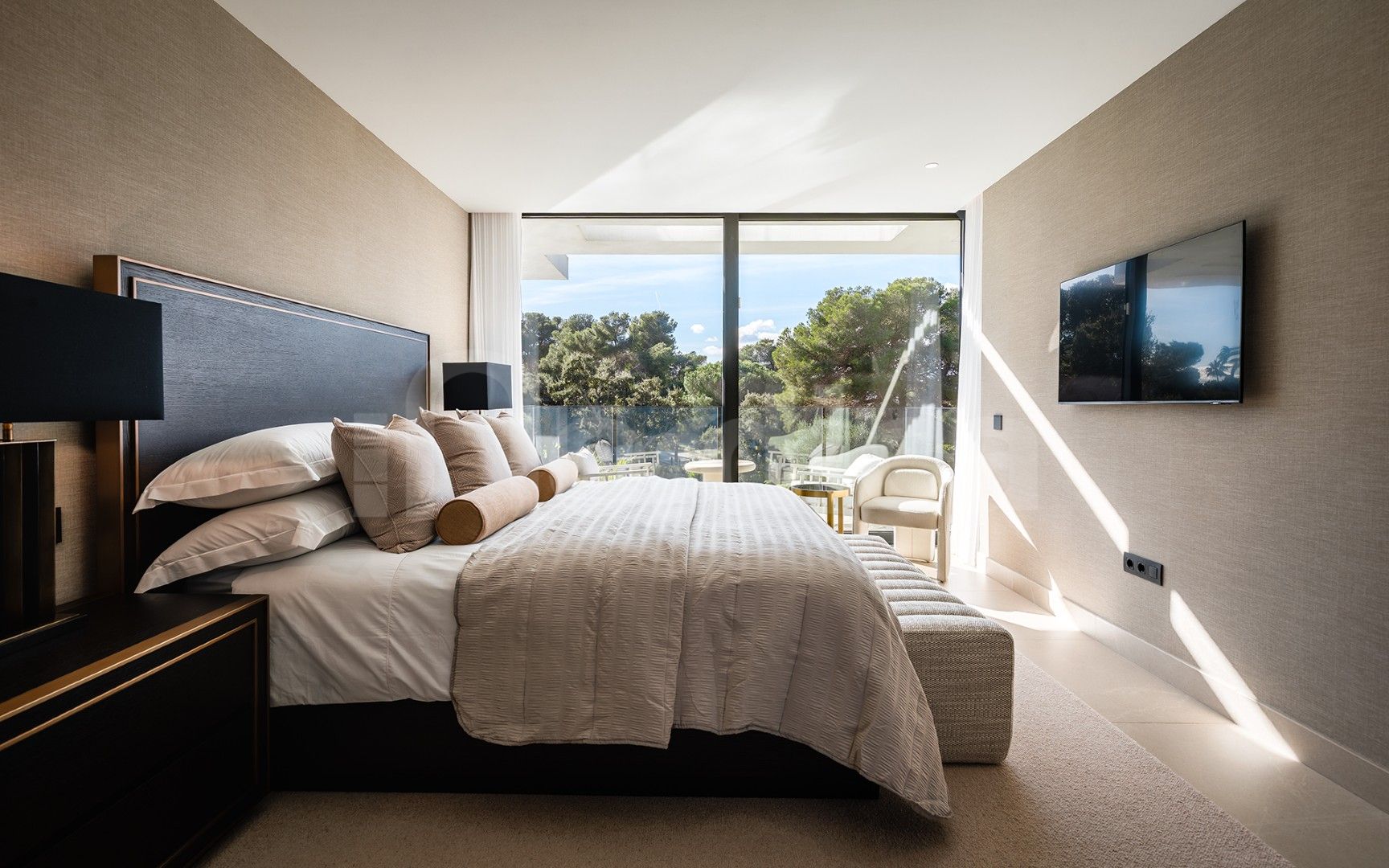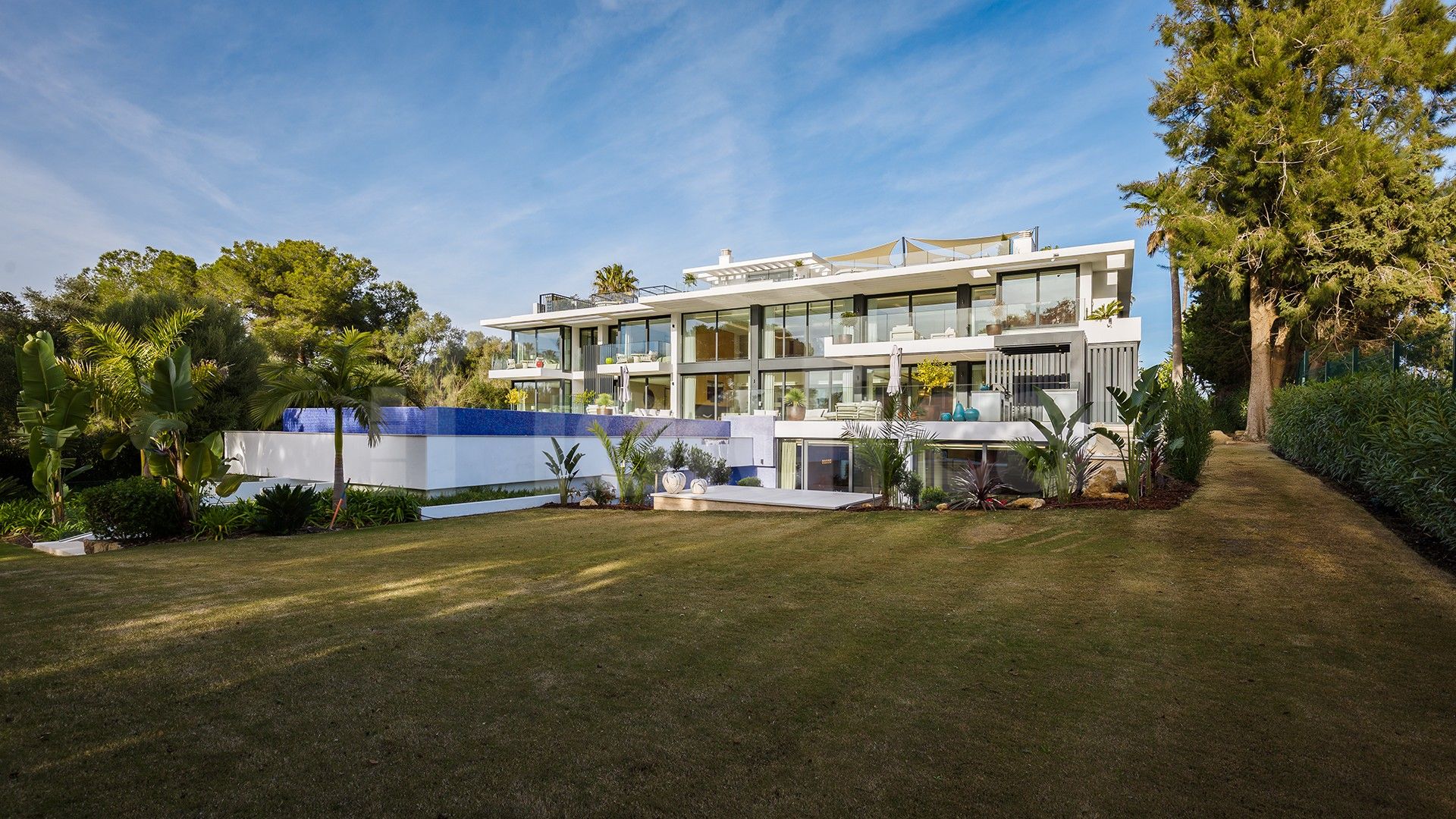 This exceptional contemporary villa is located in the highly sought-after Kings and Queens area of Sotogrande, one of the most prestigious residential enclaves in the Sotogrande area. Known for its wide, tree-lined streets and its close proximity to the beach, marina, and world-class golf courses, this distinguished neighborhood offers an unparalleled lifestyle of privacy, elegance, and convenience.