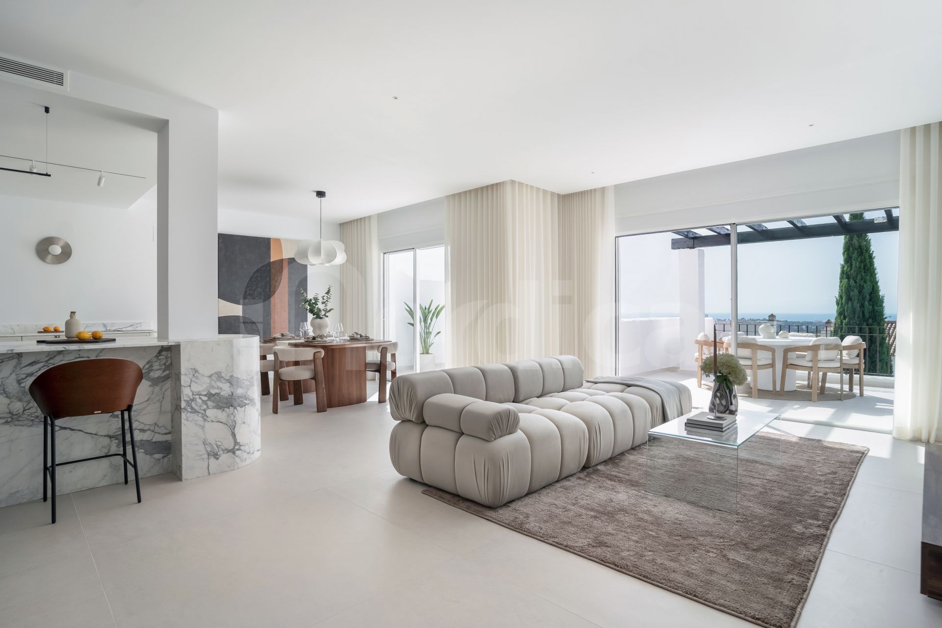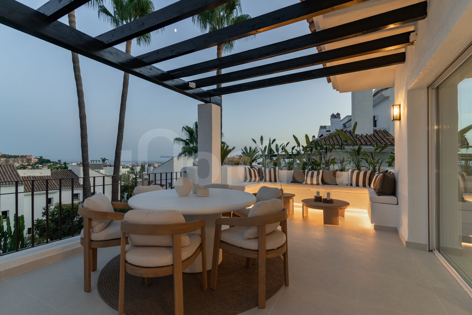 Fully renovated and stylish, this 3-bedroom, 3-bathroom corner penthouse blends sleek Scandinavian design with sweeping sea views. Spread across two levels, this bright and airy home is made for laid-back coastal living.