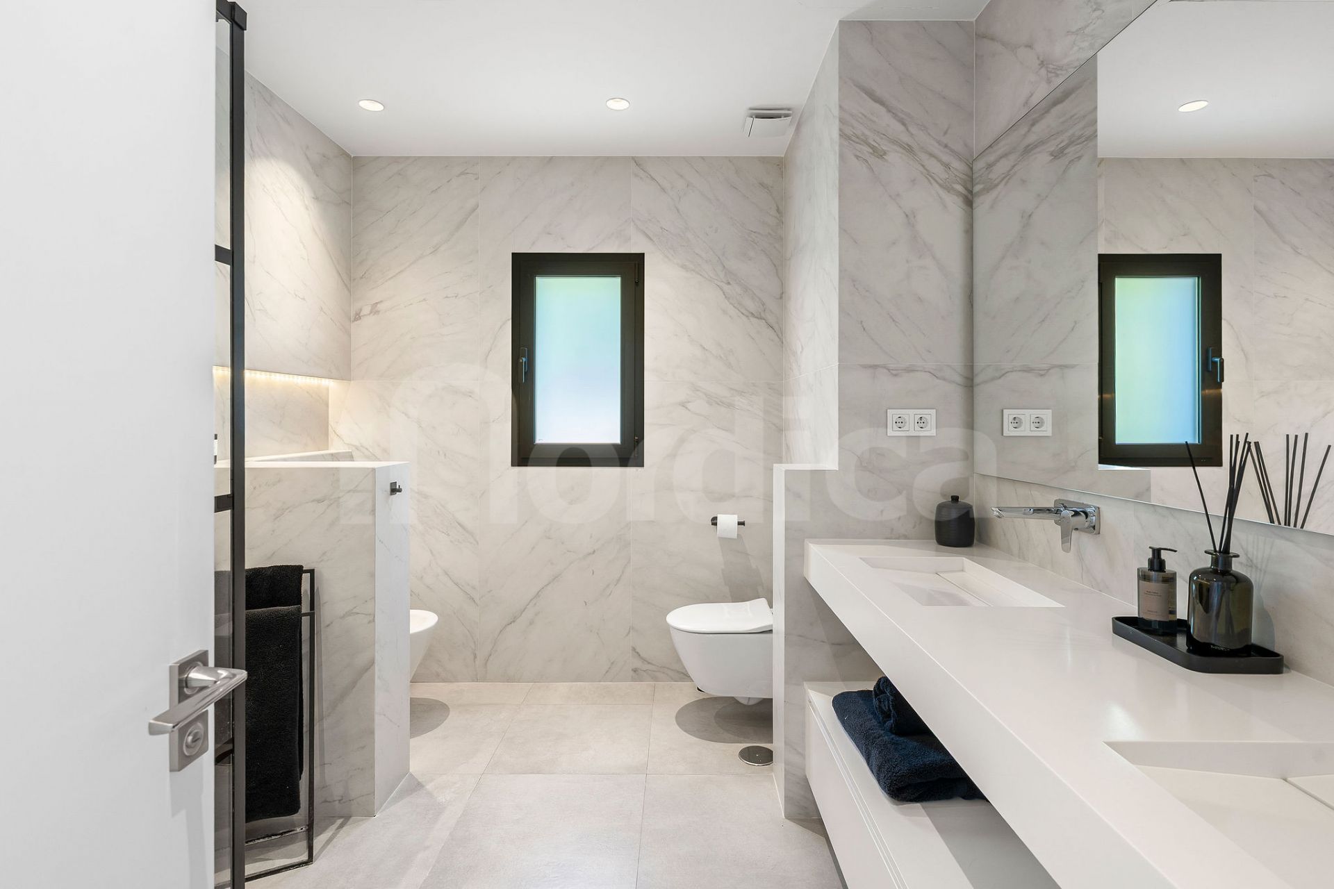 Situated in the highly sought-after area of La Quinta in Benahavis, this beautifully contemporary 5-bedroom property is perfectly suited for family living. With an unbeatable south-facing orientation, this residence enjoys abundant natural light throughout the day.