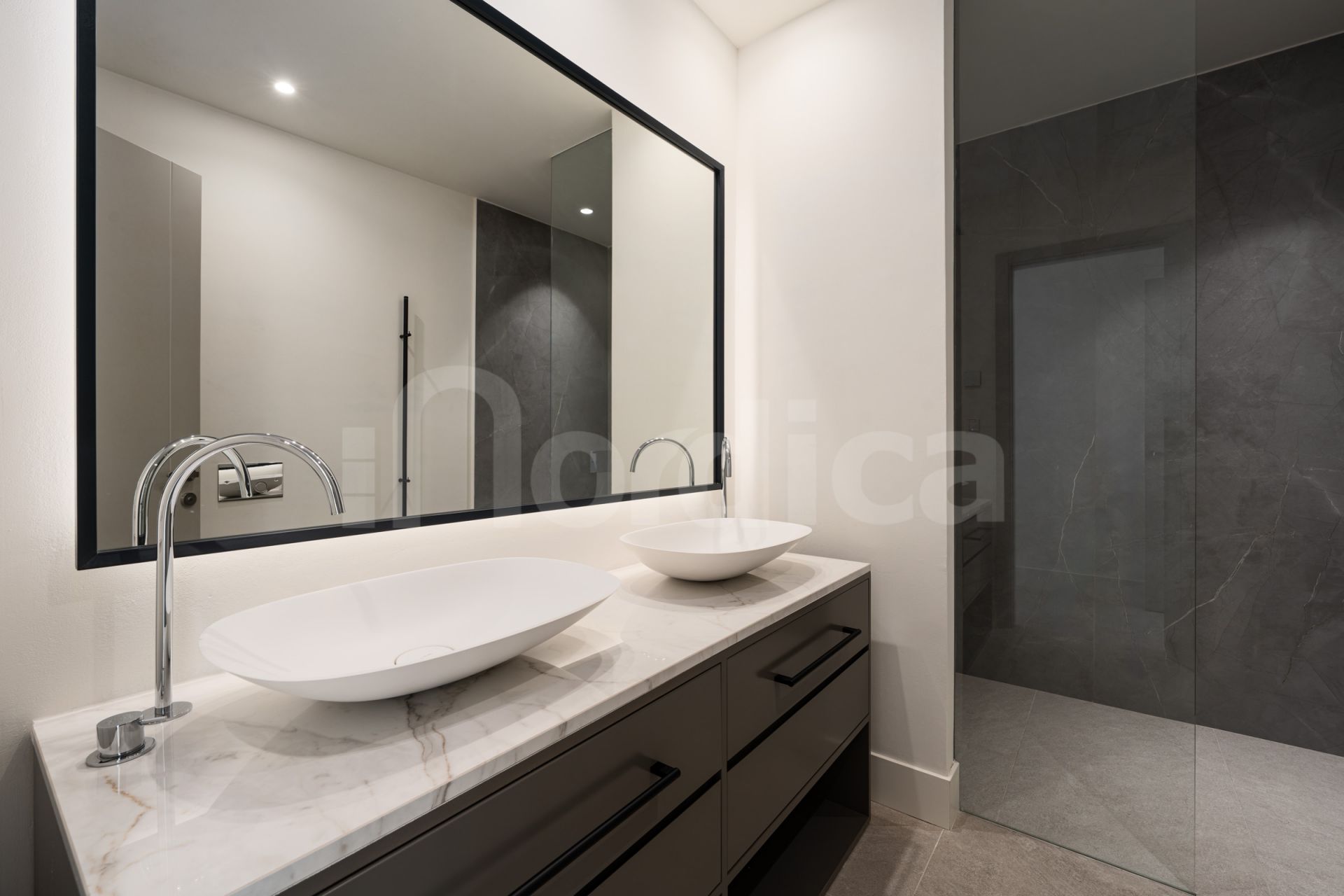 The upper level is dedicated to an expansive master suite which offers direct access to a generous terrace with panoramic sea views. An additional en-suite bedroom on this floor mirrors the same high standard of design.